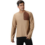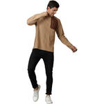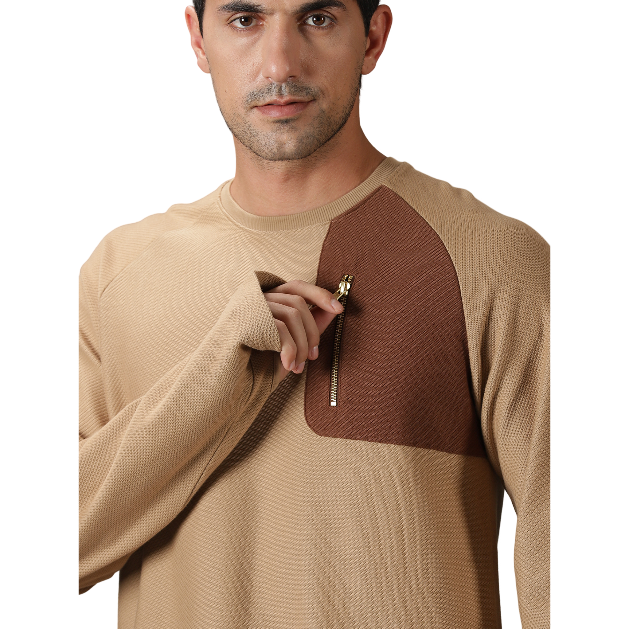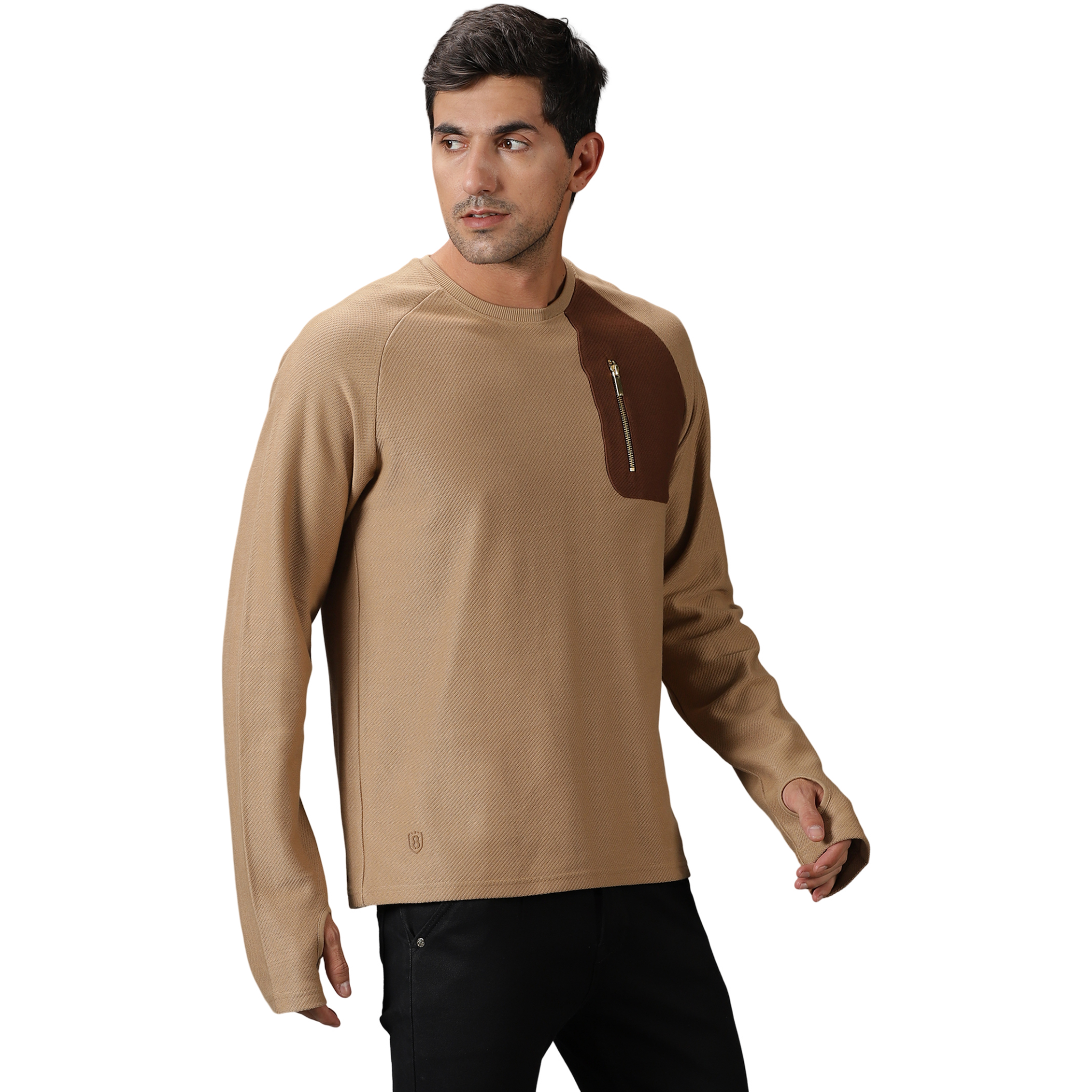 Men’s sweat shirt with round neck, patch pocket, thumb hole full sleeves and straight hem line.