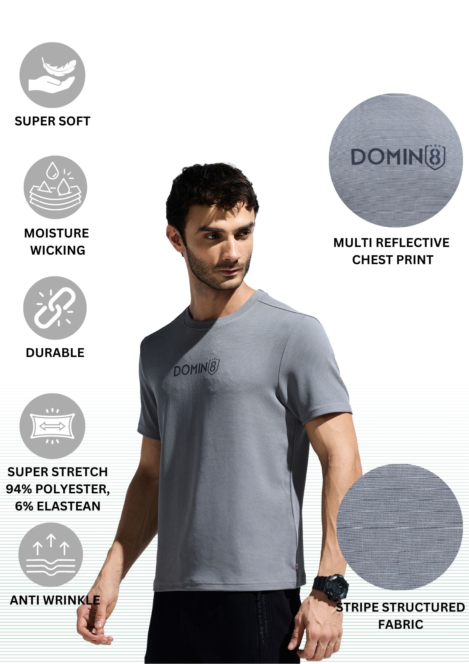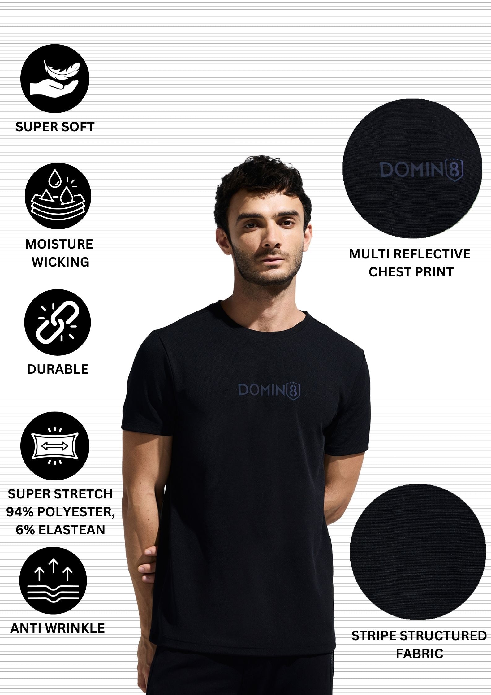 Step up your casual fashion game with this Men’s Round neck polyester Cord T-Shirt with Chest Logo, designed for a perfect mix of comfort and style. This is a regular fit attire in round neck and half sleeve, engineered from  94% Polyester, 6% Spandex .Available in variant colours.