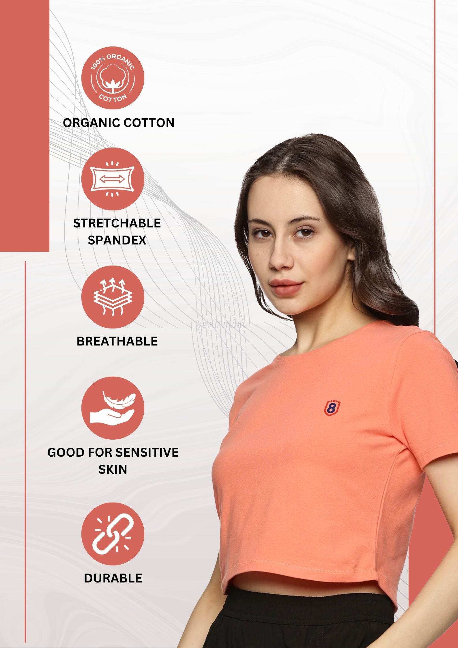 Women’s cotton-spandex short-sleeve crop top in beige – lightweight, breathable, and stylish.