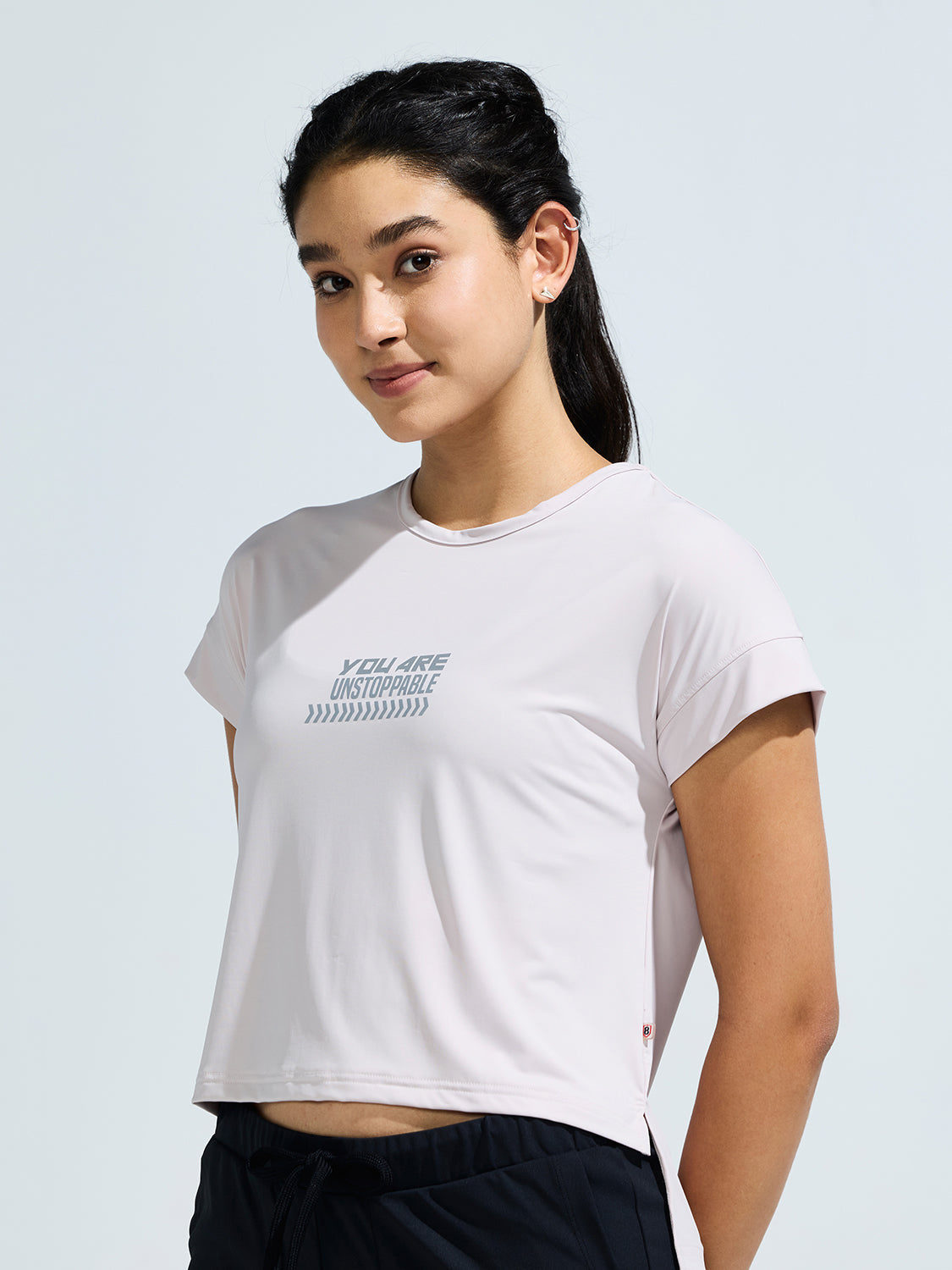 Elevate your everyday attire with our Women's stylish boxy fit High Low Top featuring a Chest Graphic Print, a harmonious blend of sophistication and ease. This is carefully Crafted from a luxurious mix of 95% nylon and 5% spandex. Embrace a look that authentically represents your individuality, poise, and distinctive taste with the Women's stylish boxy fit High Low Top with Chest Graphic Print.