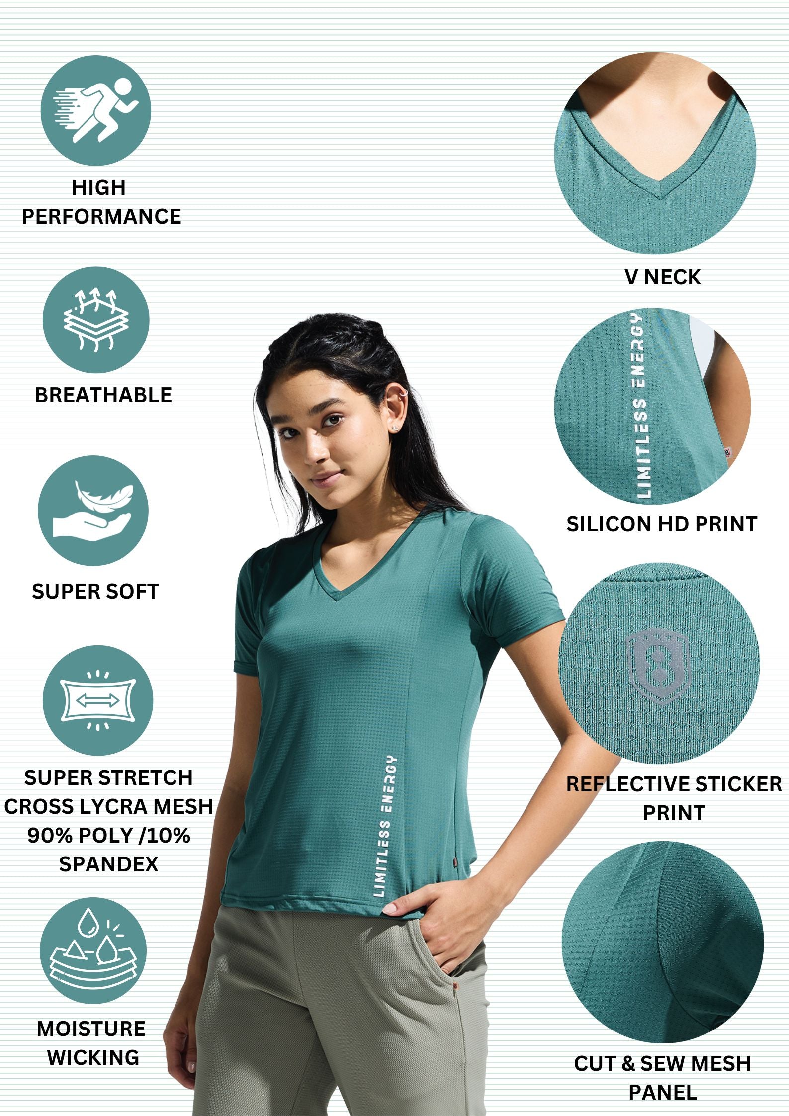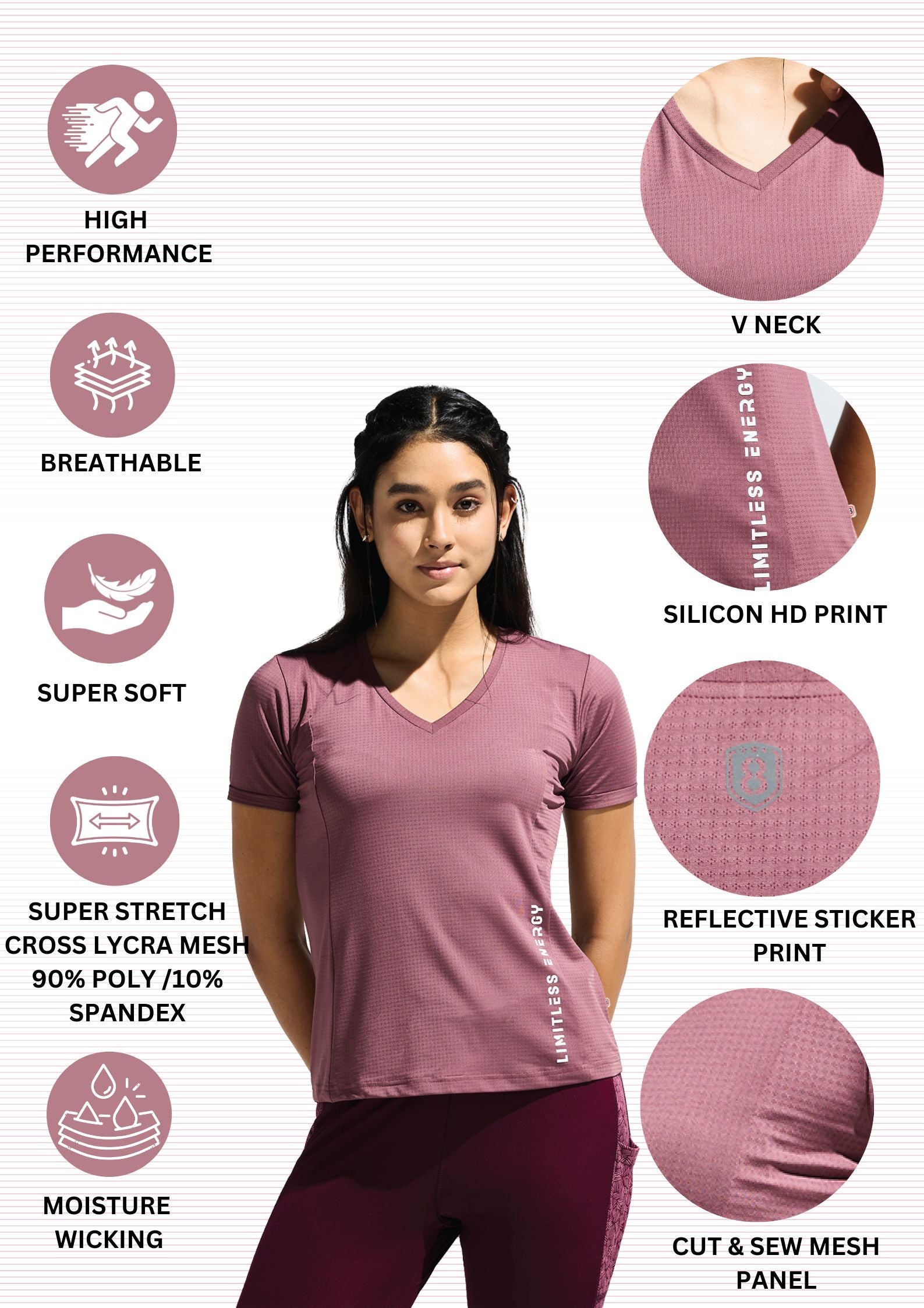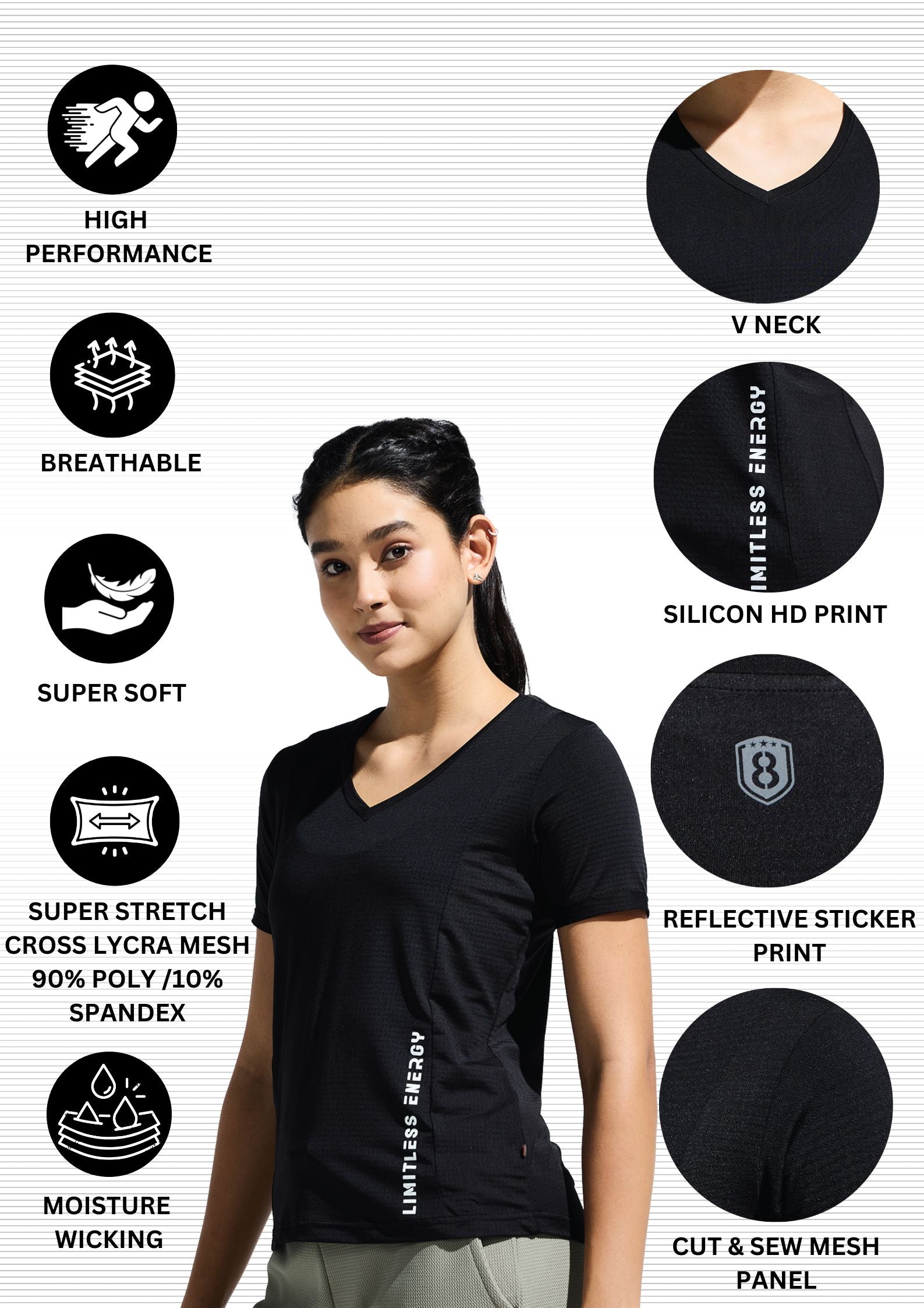 Give your wardrobe a premium class with evergreen style bestowed by our Women's V Neck Cut super stretchable Cut & Sew mesh Tops. Carefully engineered from 90% Polyester and 10% Spandex Cross Lycra Mesh, this is available in variant colours and size .