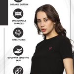 Black cotton spandex short-sleeve crop top – soft, stretchable, and perfect for casual or active wear.