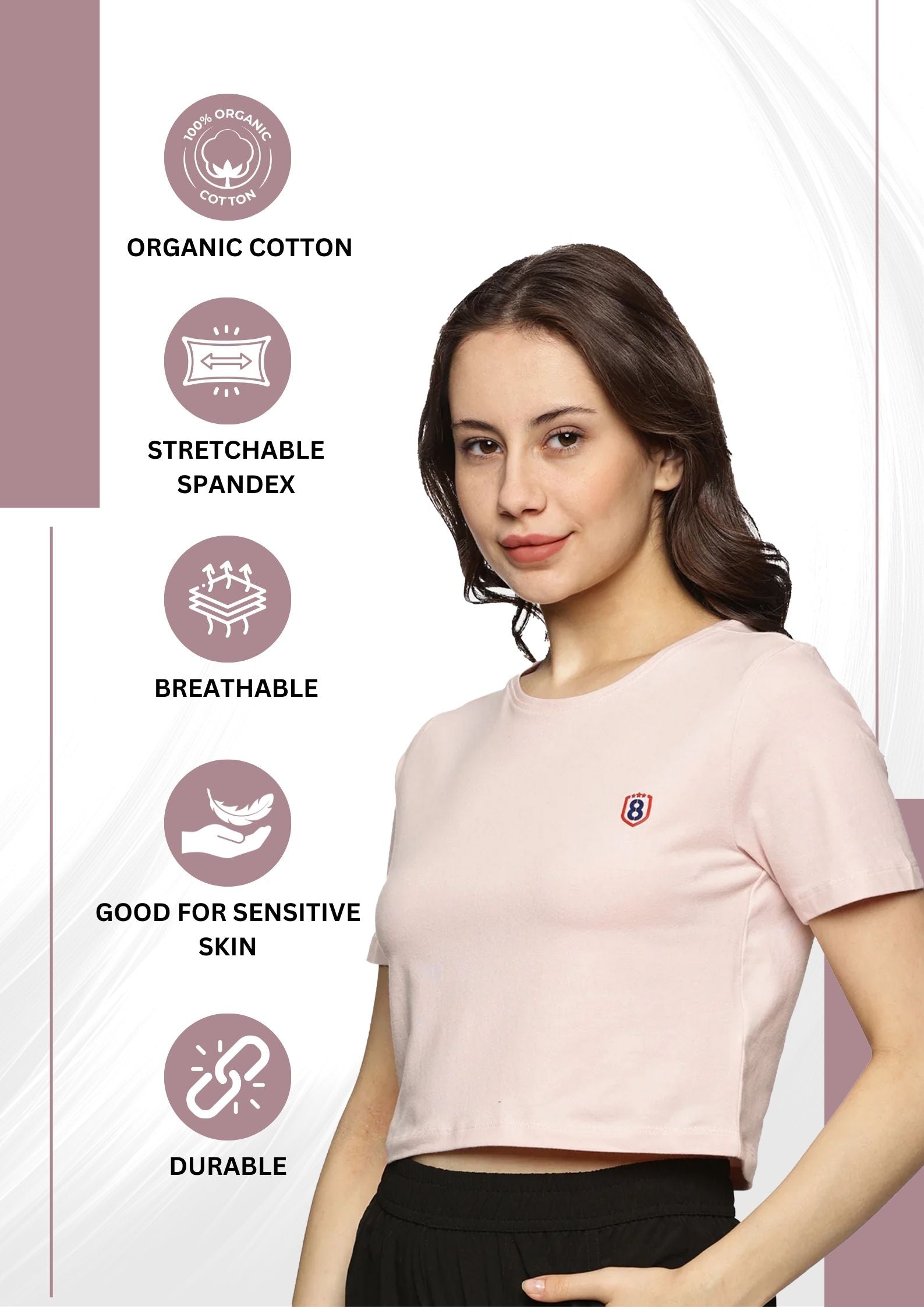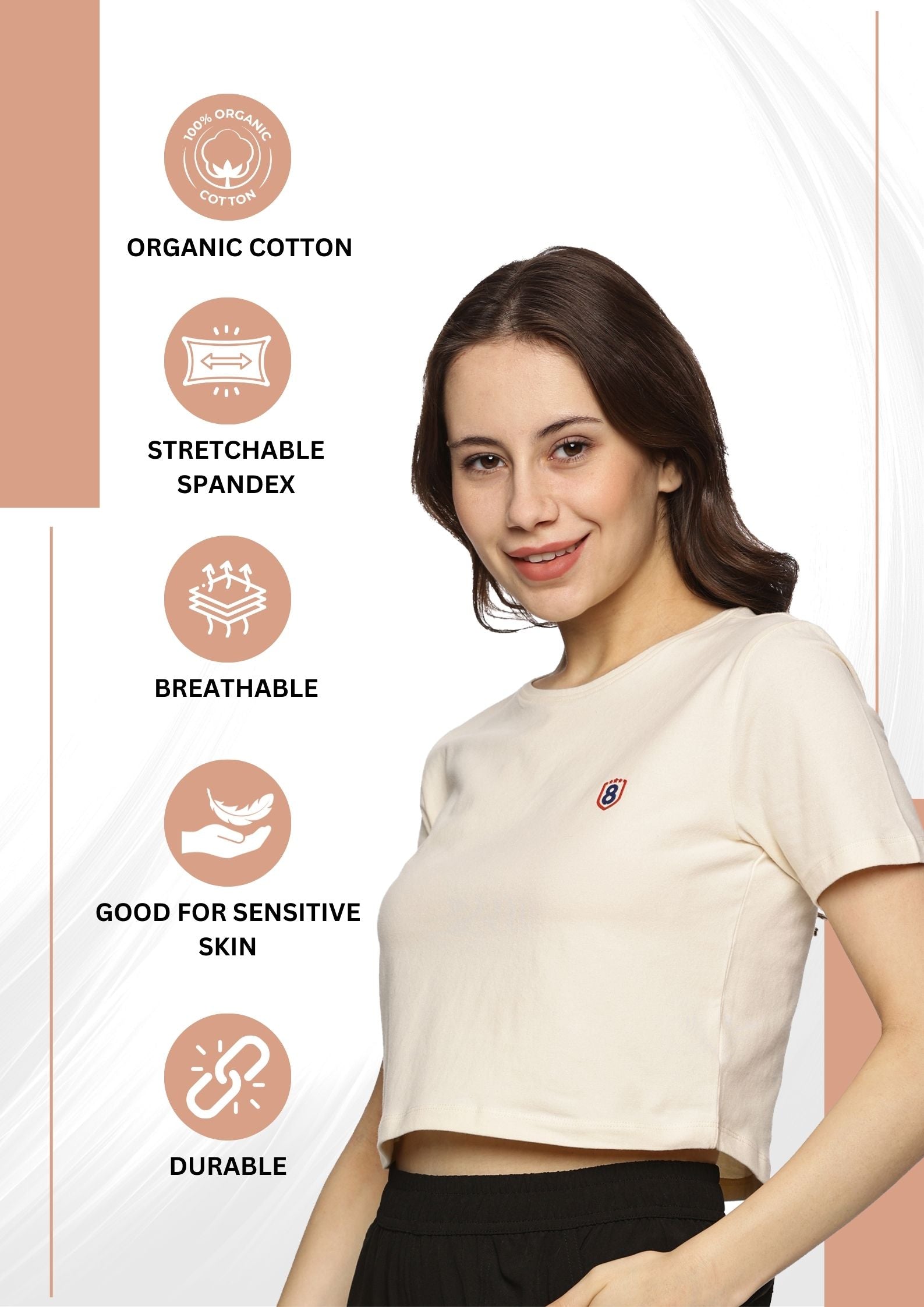 Women’s cotton-spandex short-sleeve crop top in beige – lightweight, breathable, and stylish.