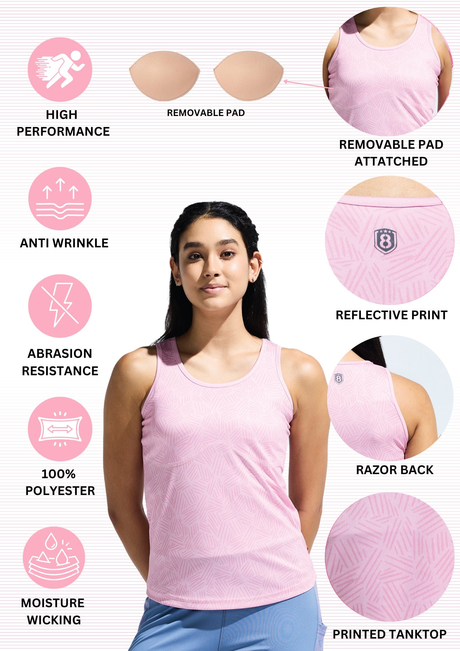 Elevate your fashion game with our Women's Wrinkle-Resistant Racerback Printed Tank Top, designed with a removable pad for all-day comfort—a perfect blend of style and functionality. Made from 100% polyester, this tank offers a featherlight feel and excellent breathability, making it ideal for warm days or active pursuits.