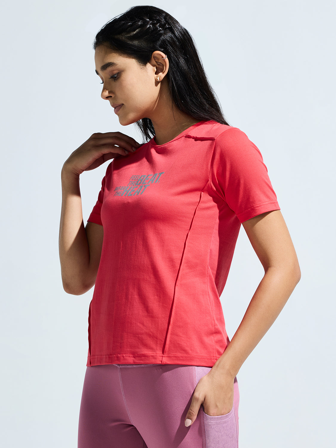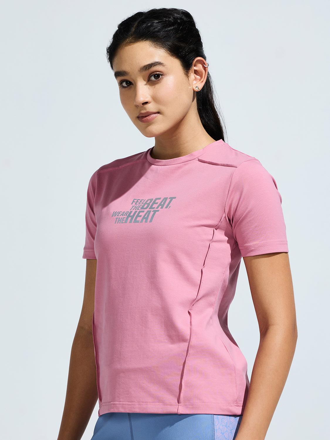Update your wardrobe staples with our Women's Round Neck Basic T Shirts featuring reflective print. Crafted from 200 GSM fabric, these tees provide a comfortable fit and relaxed wear. Perfect for everyday wear, these basic tees are available in various colors. The round neck basic t-shirt illuminates its ethereal beauty with the reflecting print on it.t.