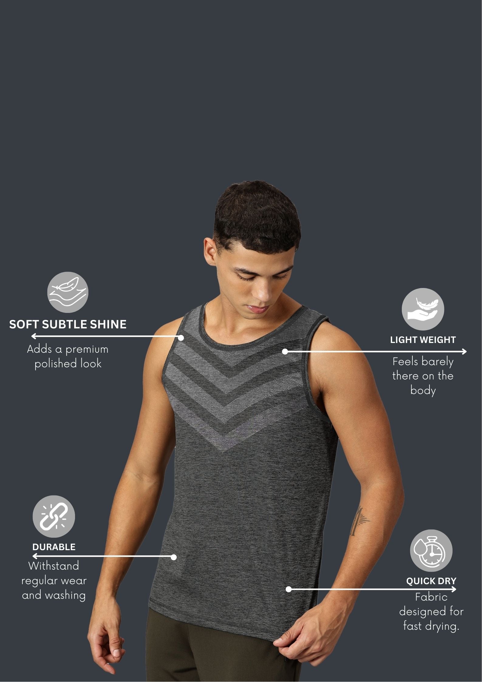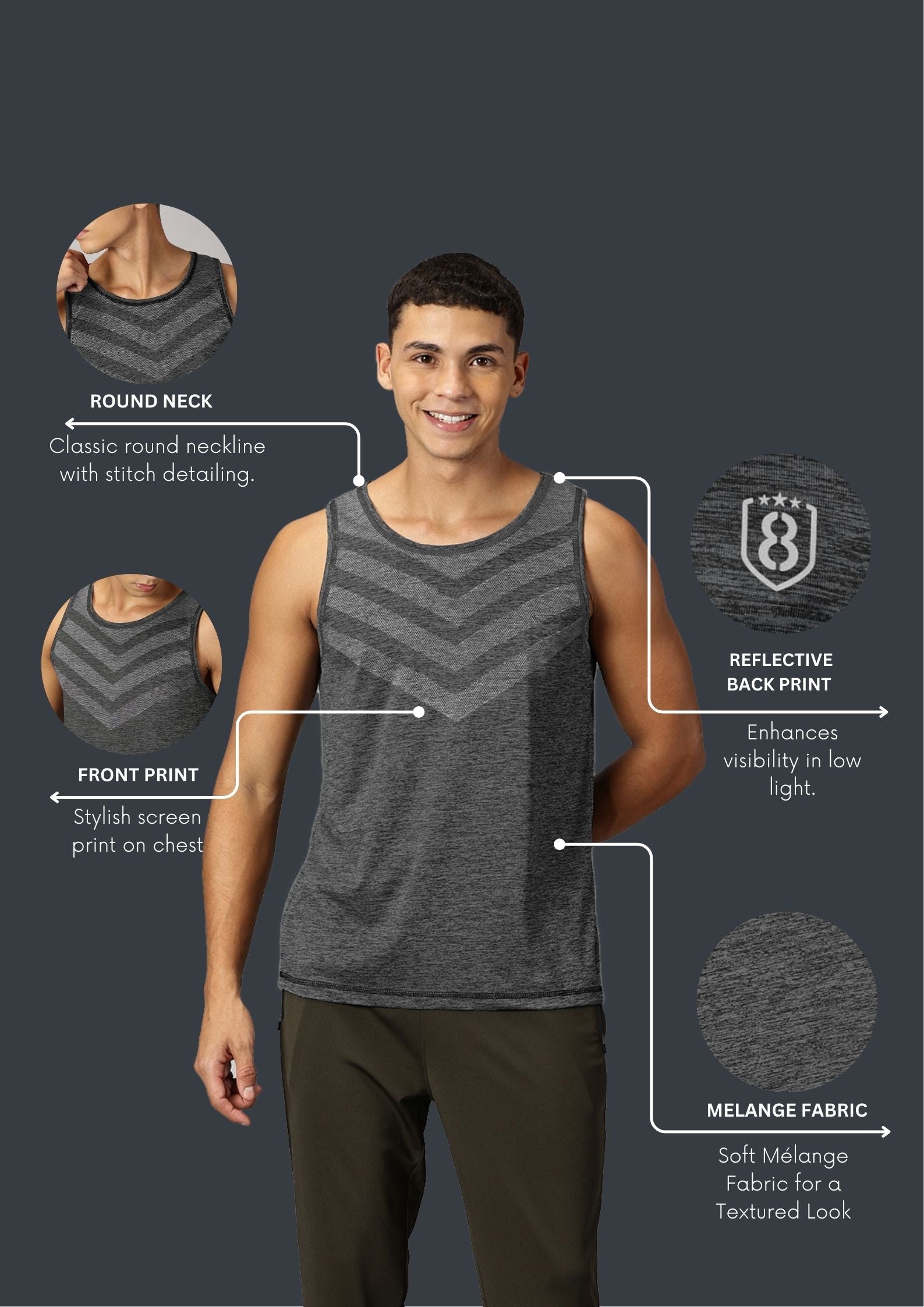Men Slim Fit Sleeveless Tank Top with Arrow Print at Chest