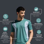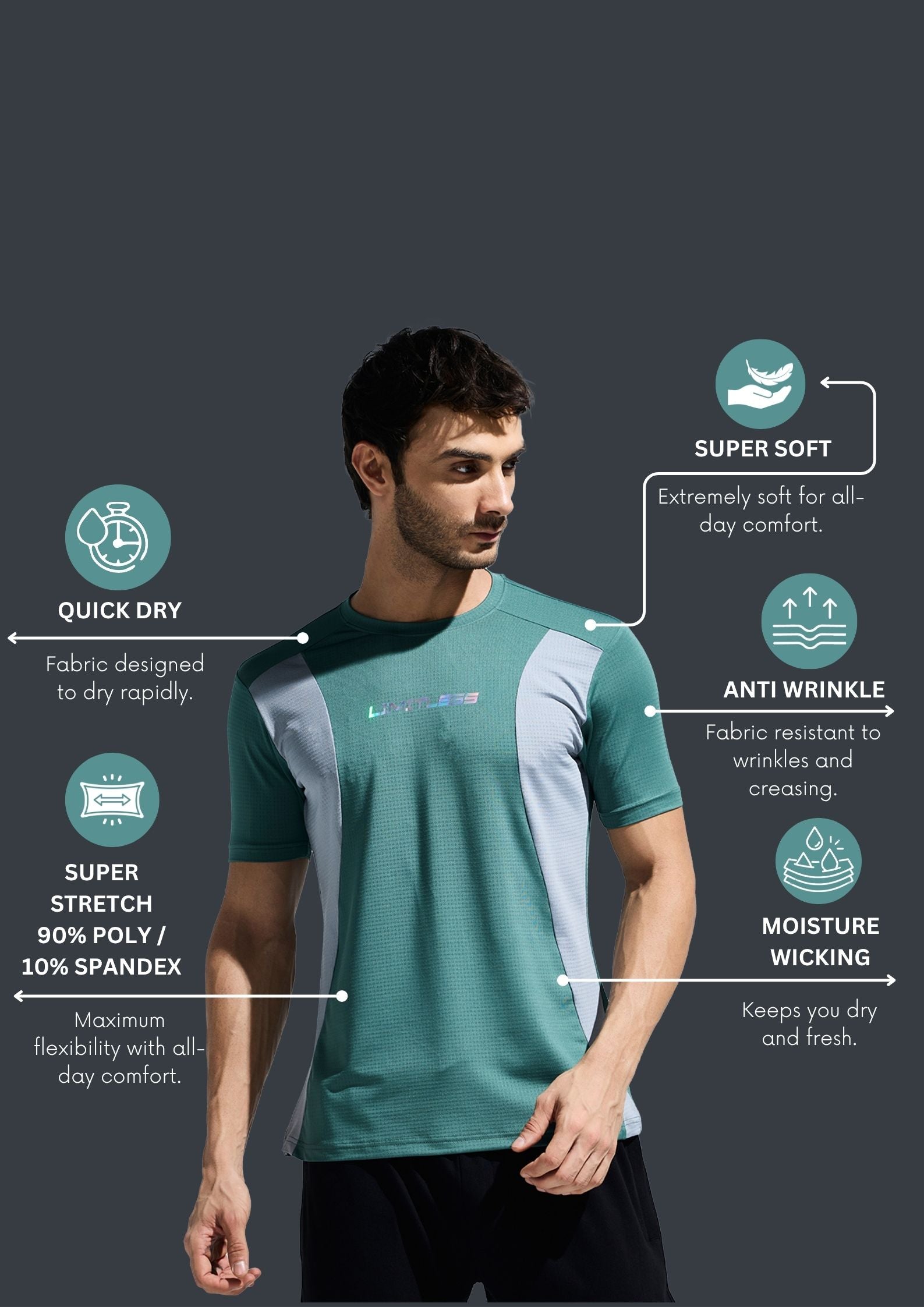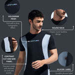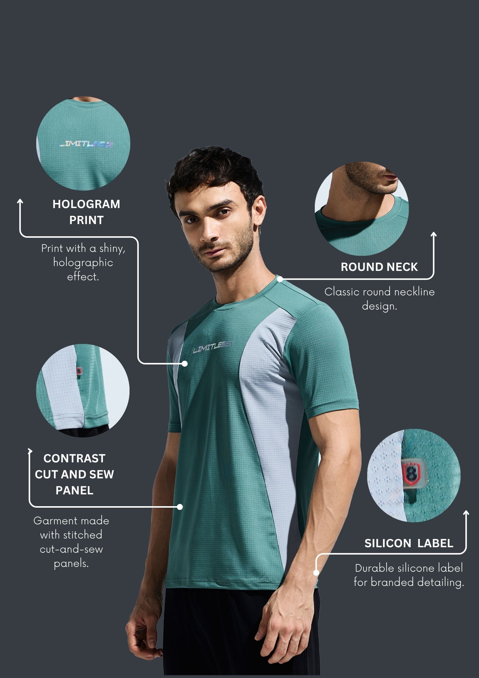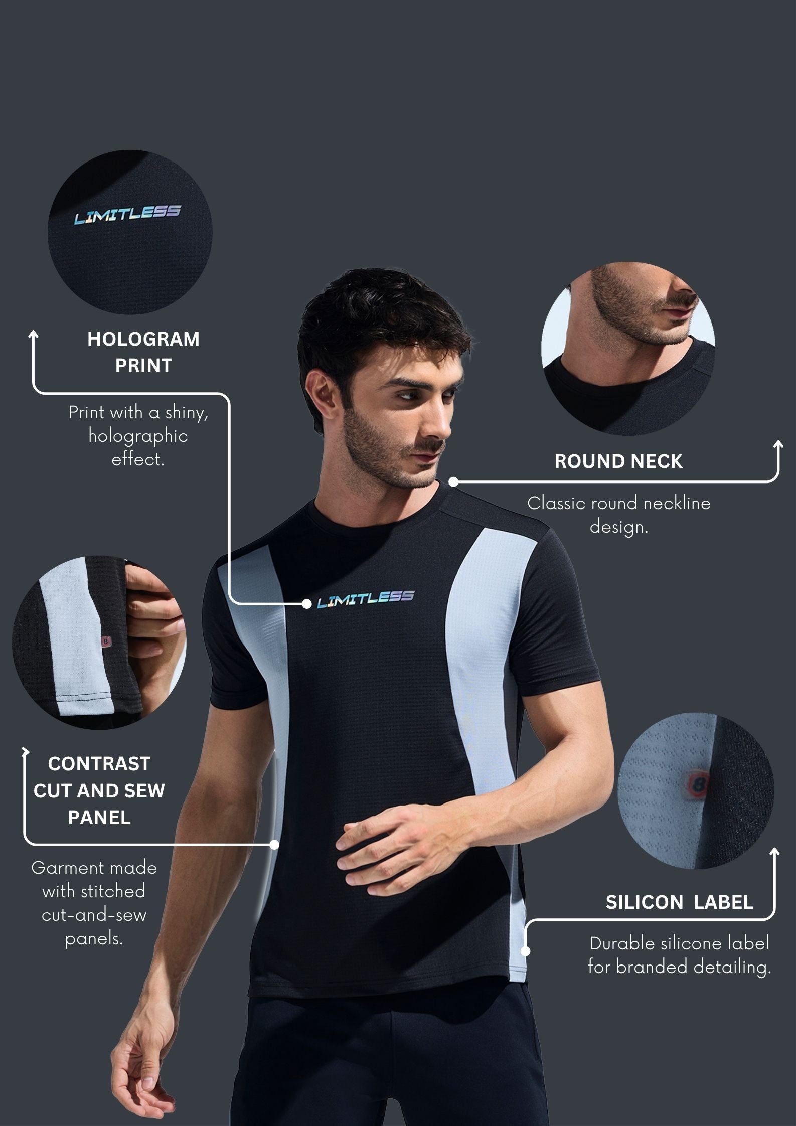 Key Features :  Men's Cut And Sew Side Mesh Panel Tee, Super Soft And Super Stretchy, Side Mesh Panel Gives An Extra Room For Cooling, Color Blocking Pattern And Hologram Printing Sticker Technique.