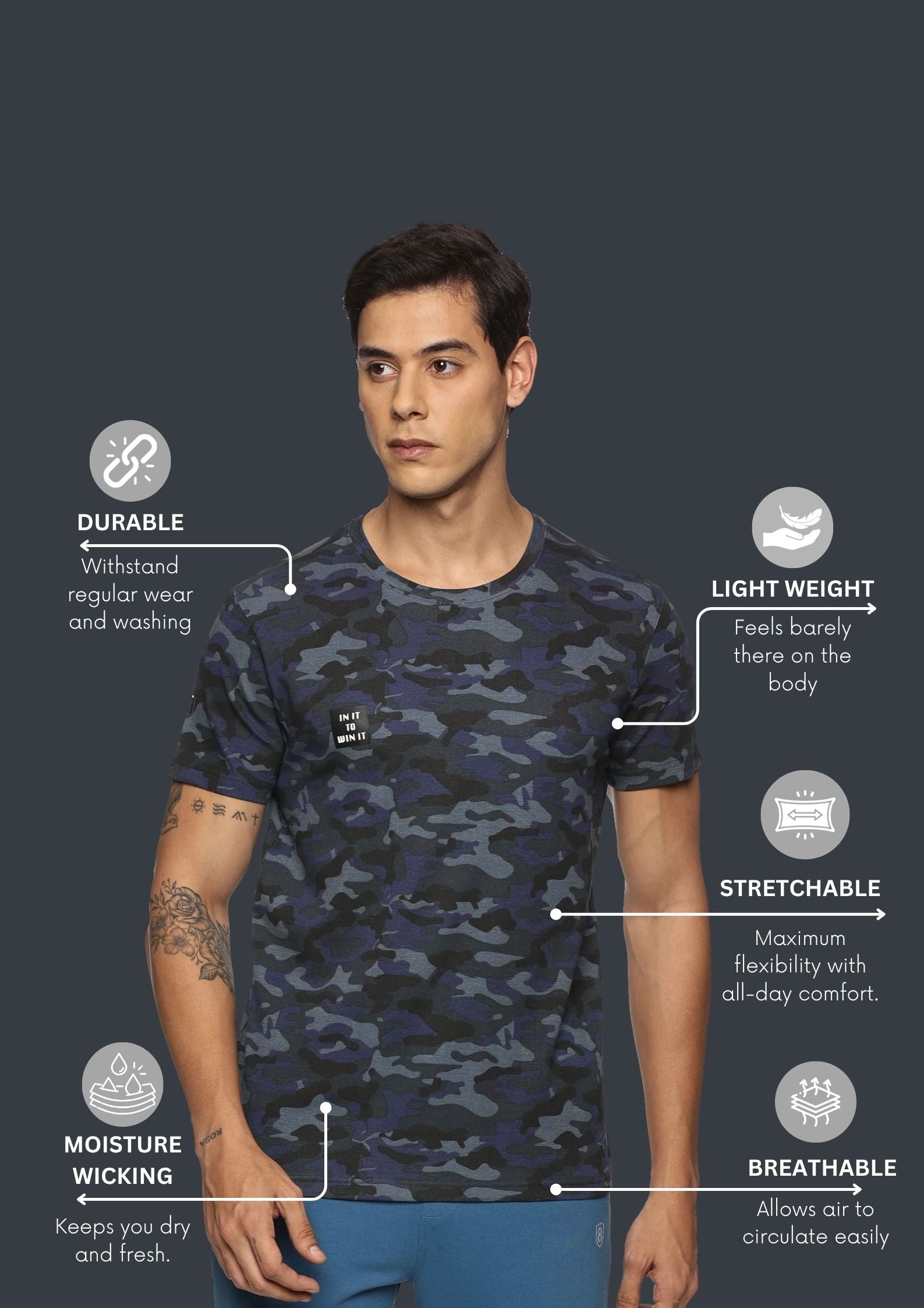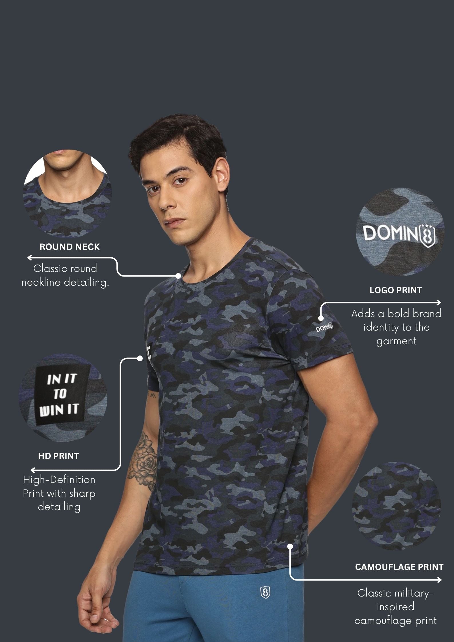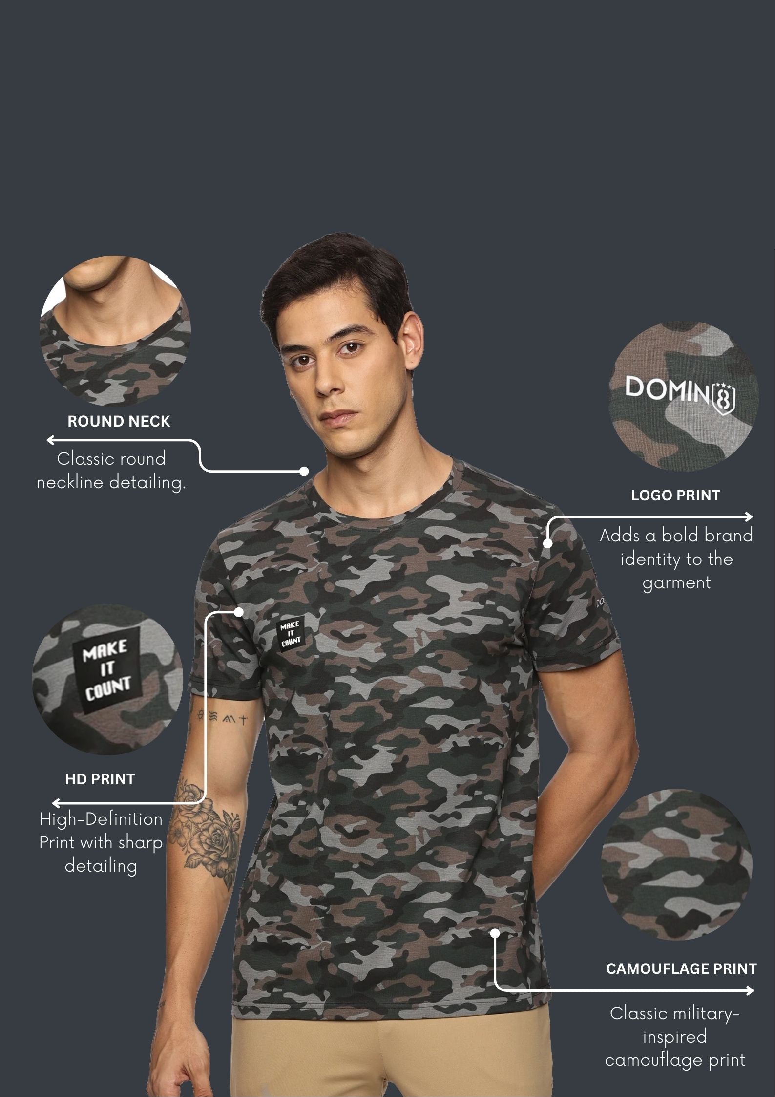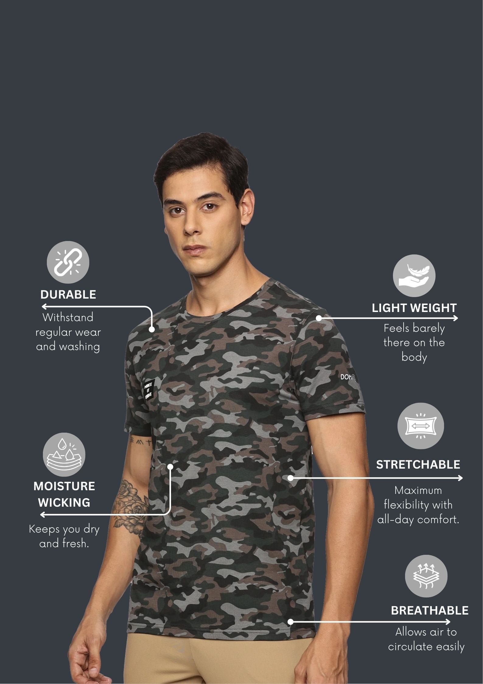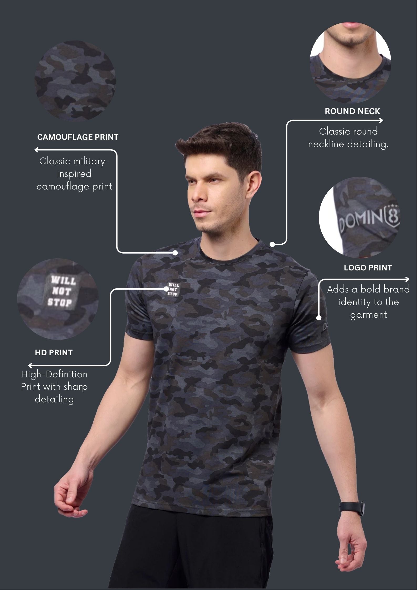 • Pattern: Camouflage with chest print