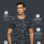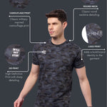 Men Cotton Regular Fit Round Neck Camouflage Black Sports T-Shirt