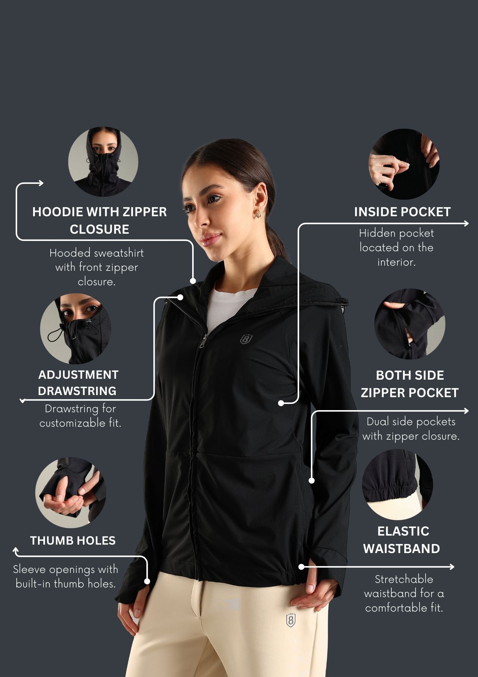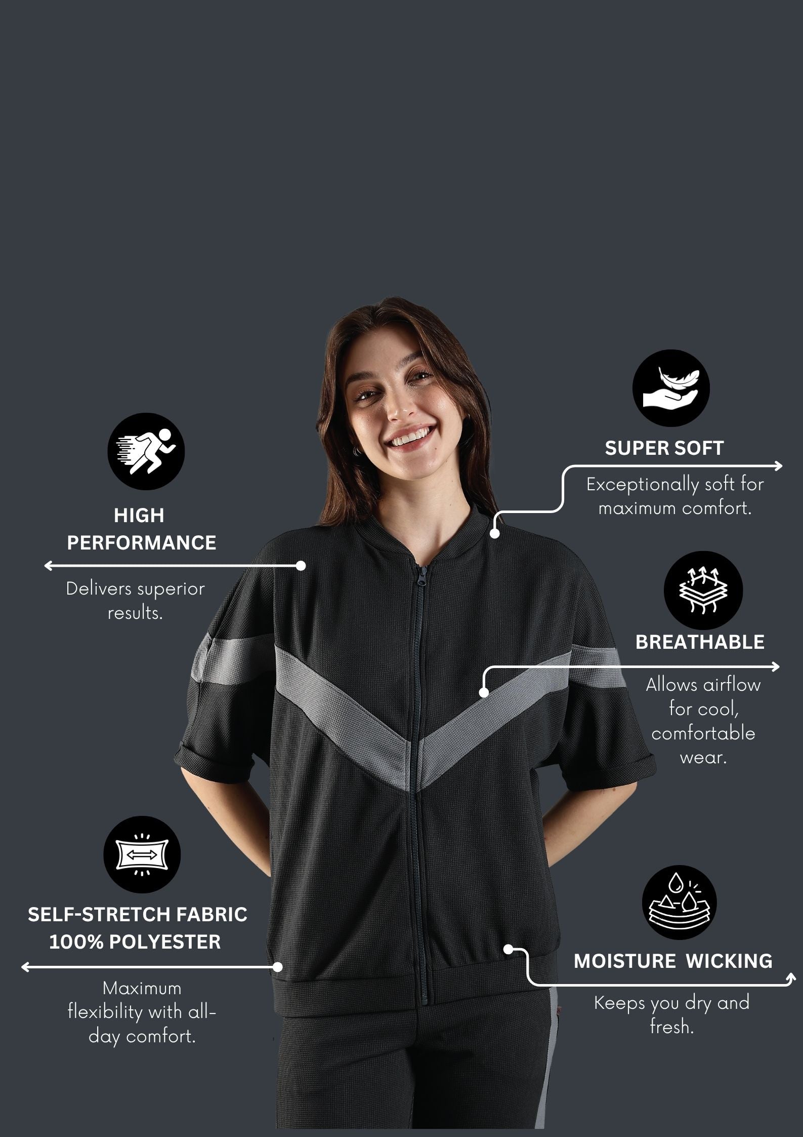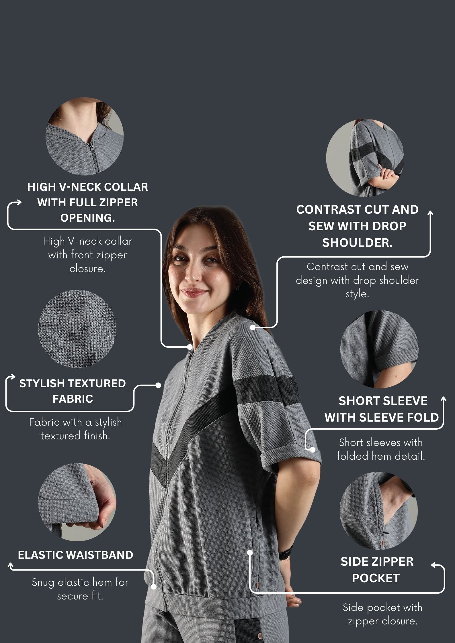 Women’s Half Sleeve V-Neck Textured Zipper Jacket