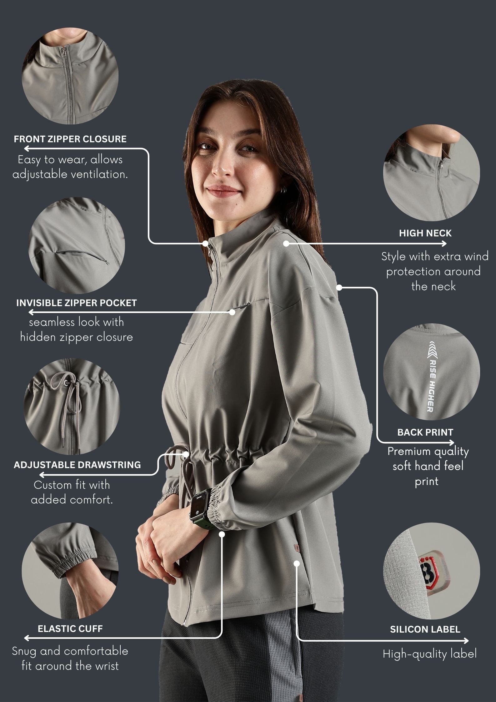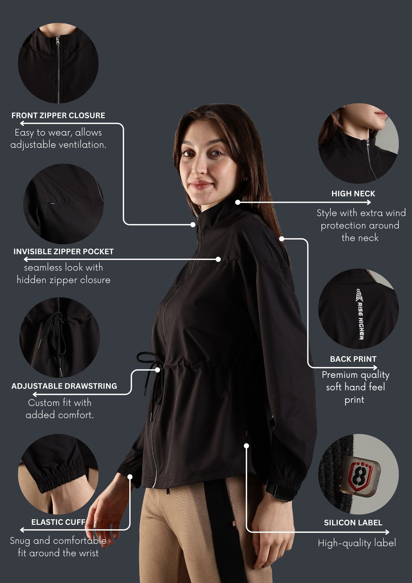 Women's Snap Button Crop Jacket with Elastic Drawstring