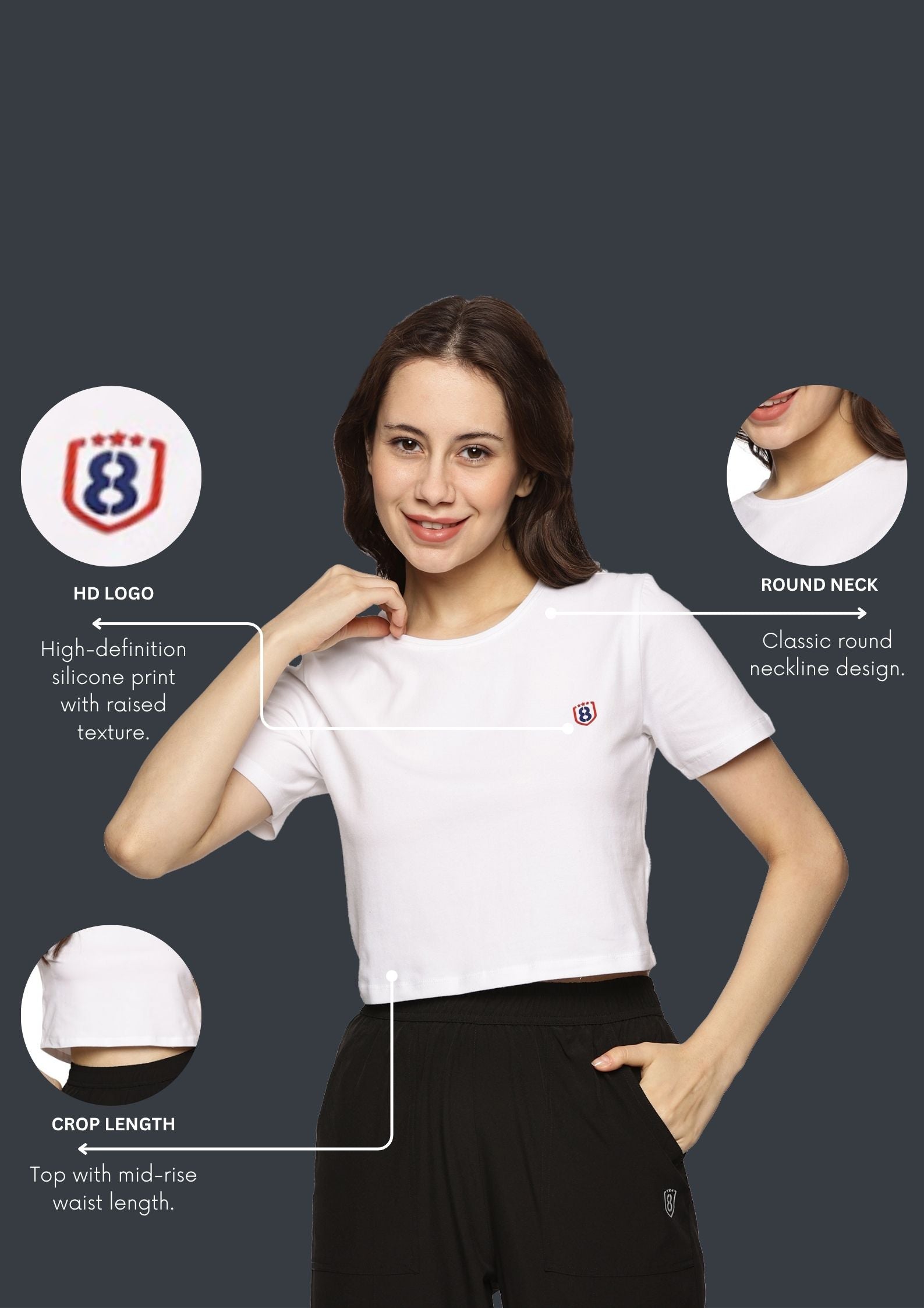 White round neck crop top for women – snug fit and modern style