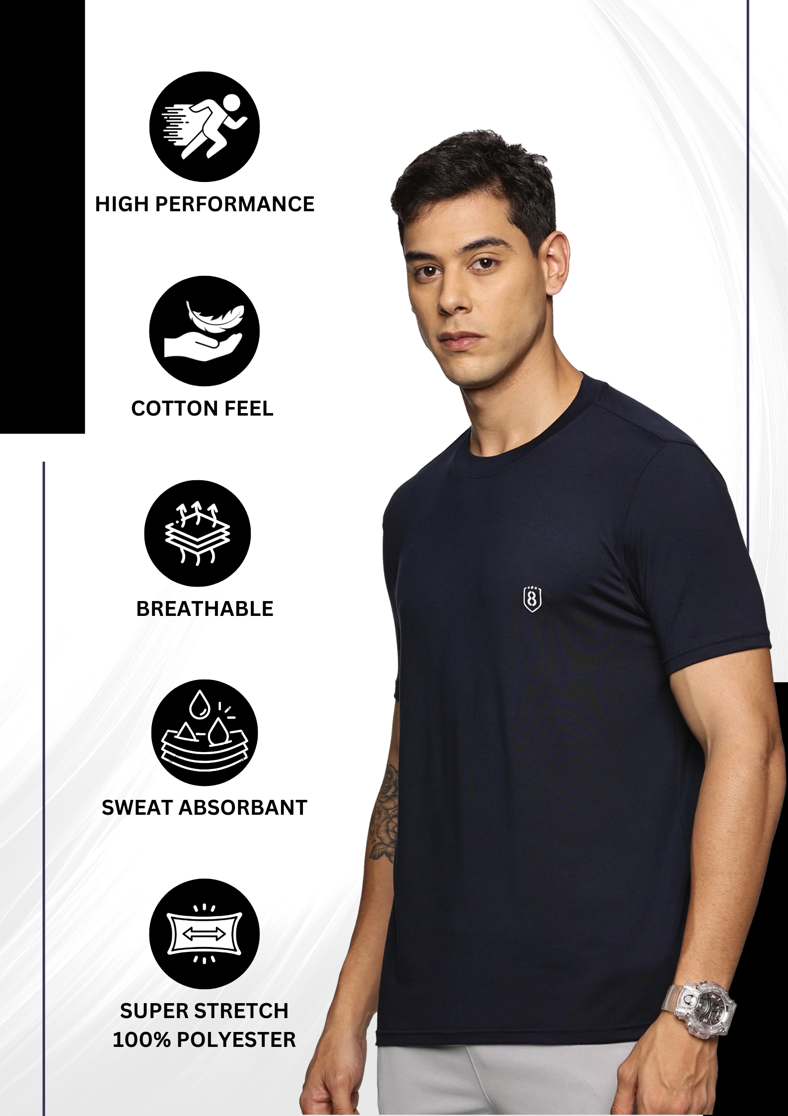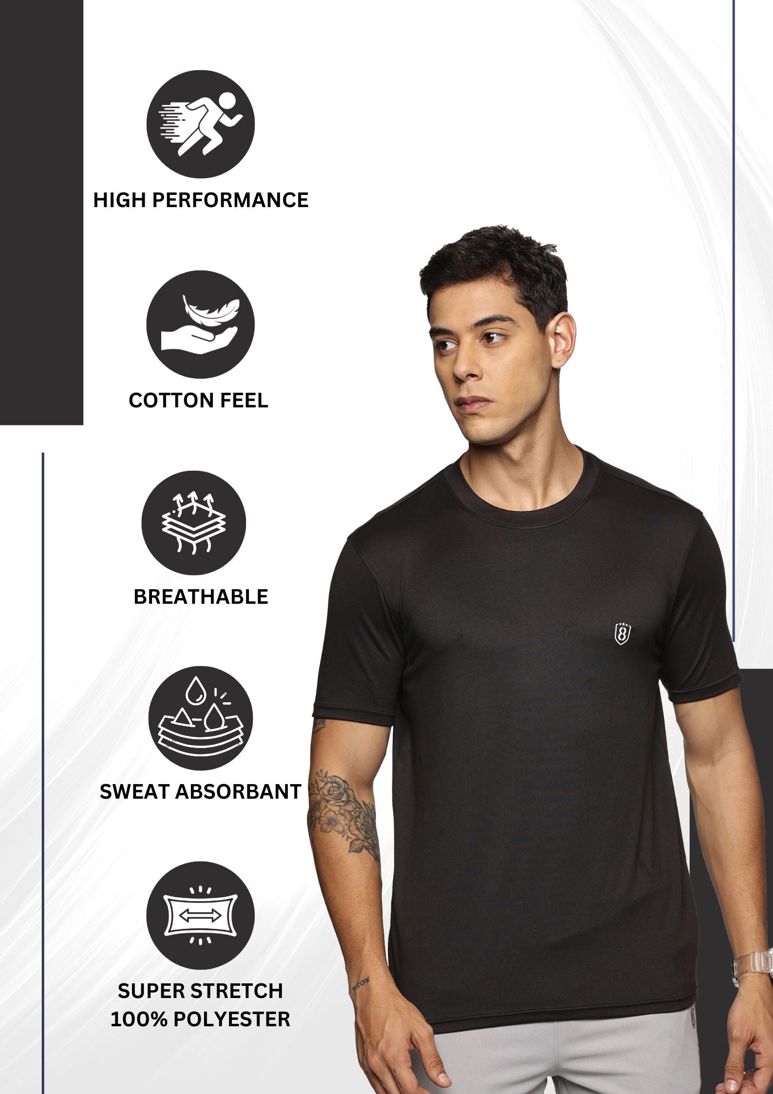 Men Cotton feel Super Stretchy Slim fit Polyester T Shirt
