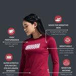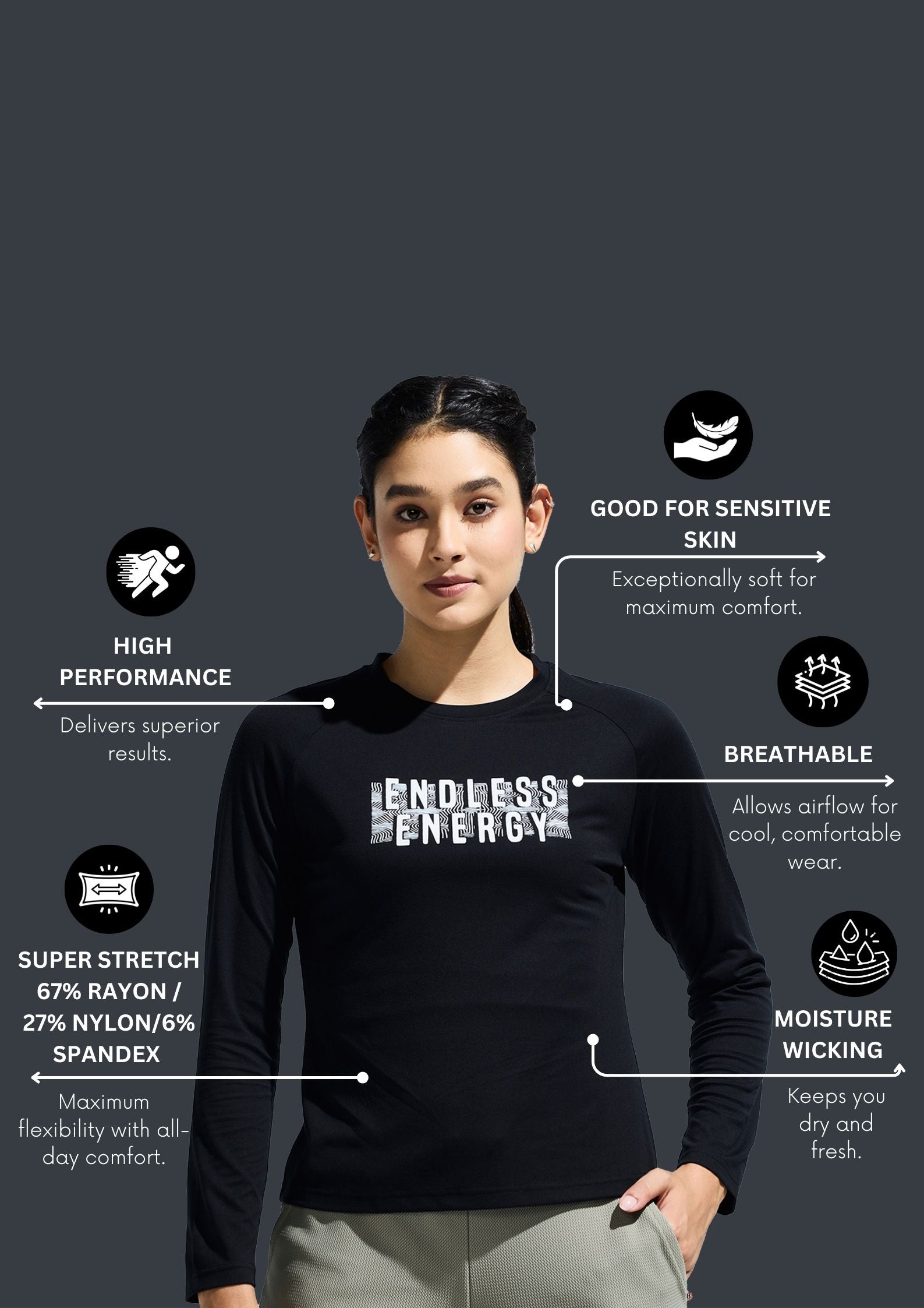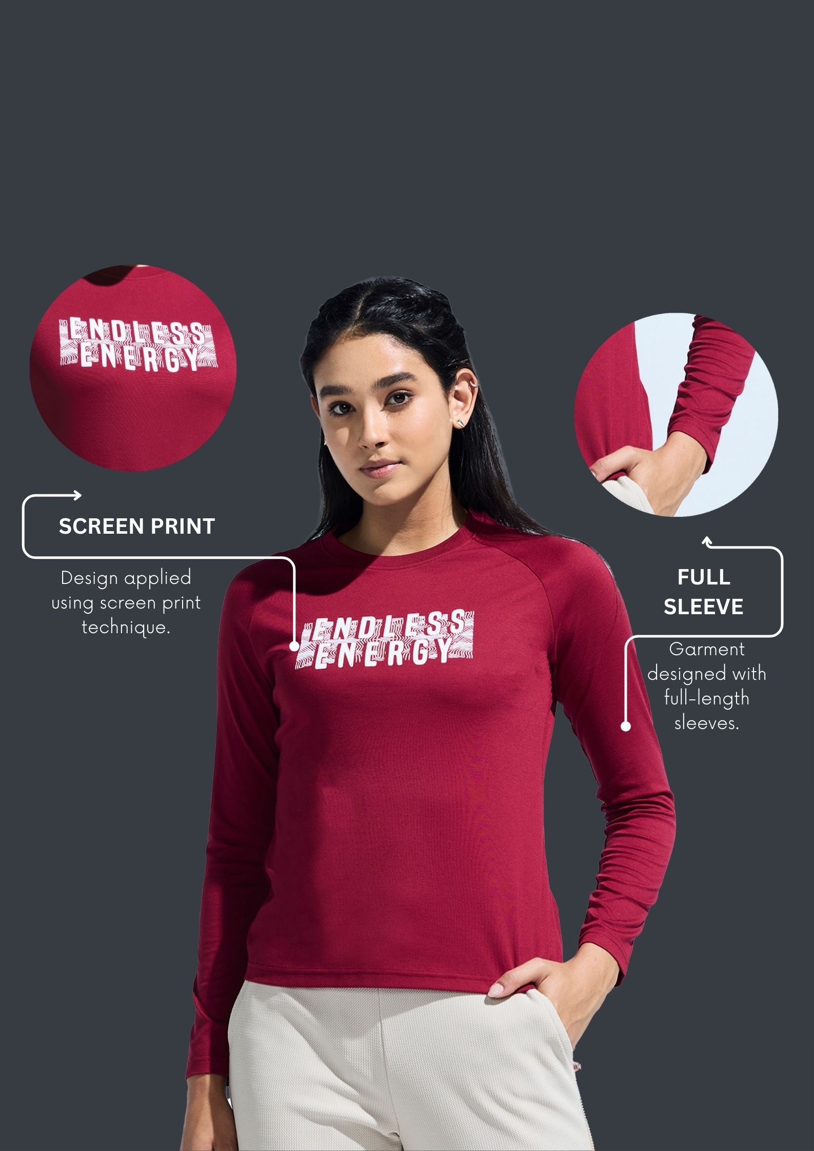 Enhance your everyday attire with our Women's Full Sleeve Graphic T-shirt, a harmonious fusion of style and ease. This sophisticated top is composed of a premium fabric mix, featuring 67% rayon, 27% nylon, and 6% spandex, offering a gentle and lavish feel on your skin. The distinctive raglan sleeves add a handcrafted element, allowing for free movement while incorporating a casual-athletic appeal.