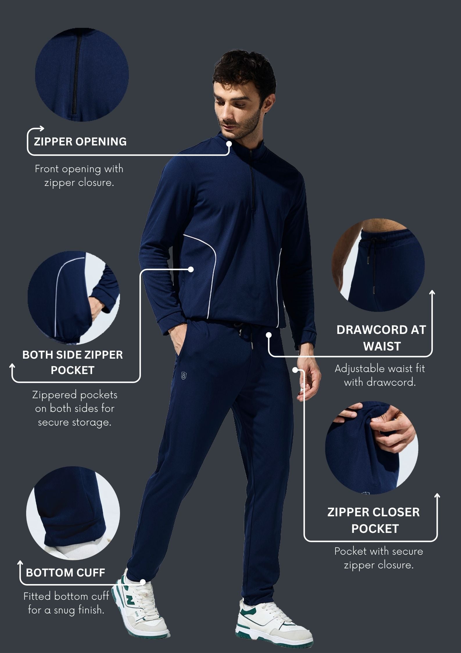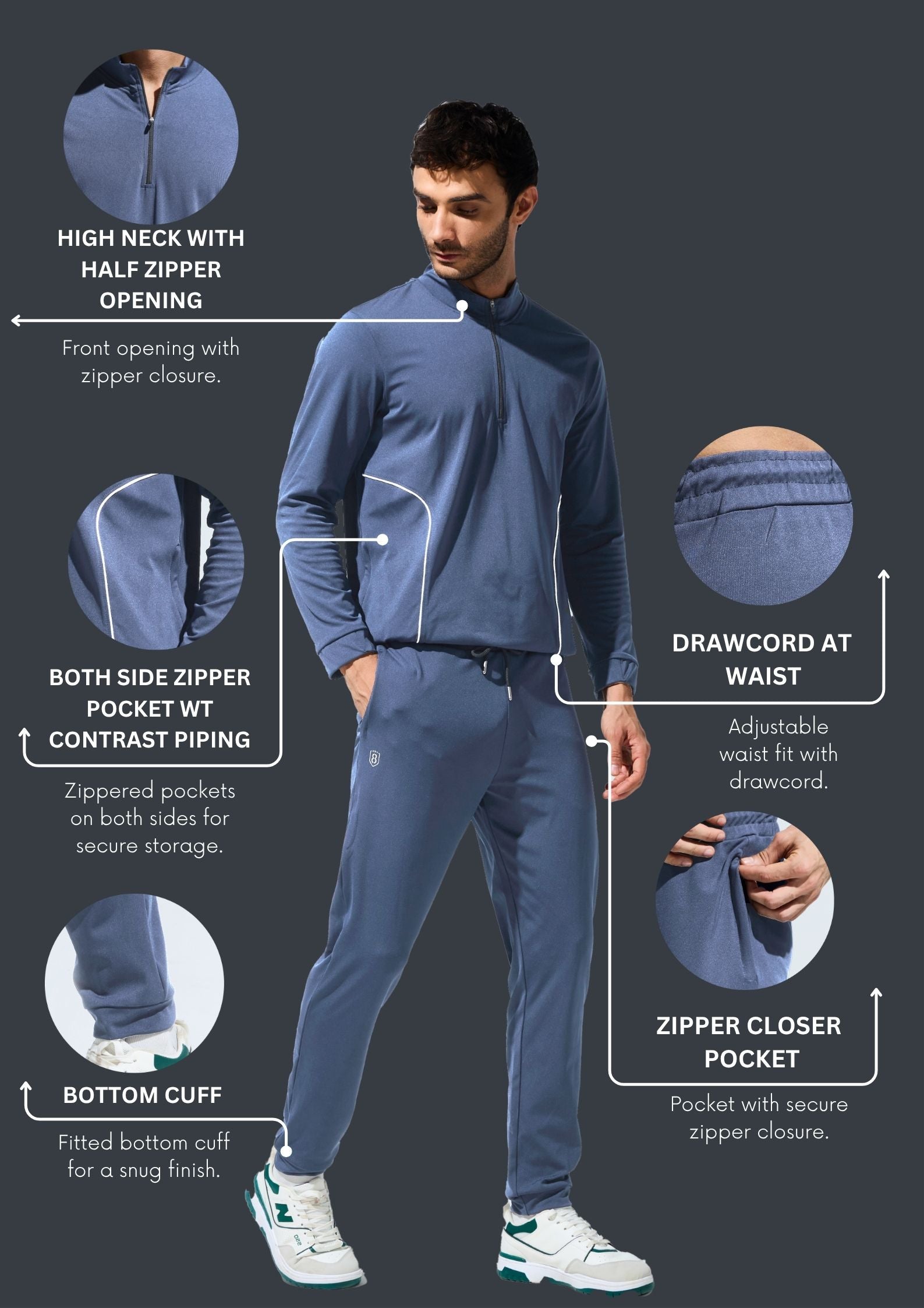 Men's High Neck Breathable Sports Tracksuit with Contrast Piping & Pockets
