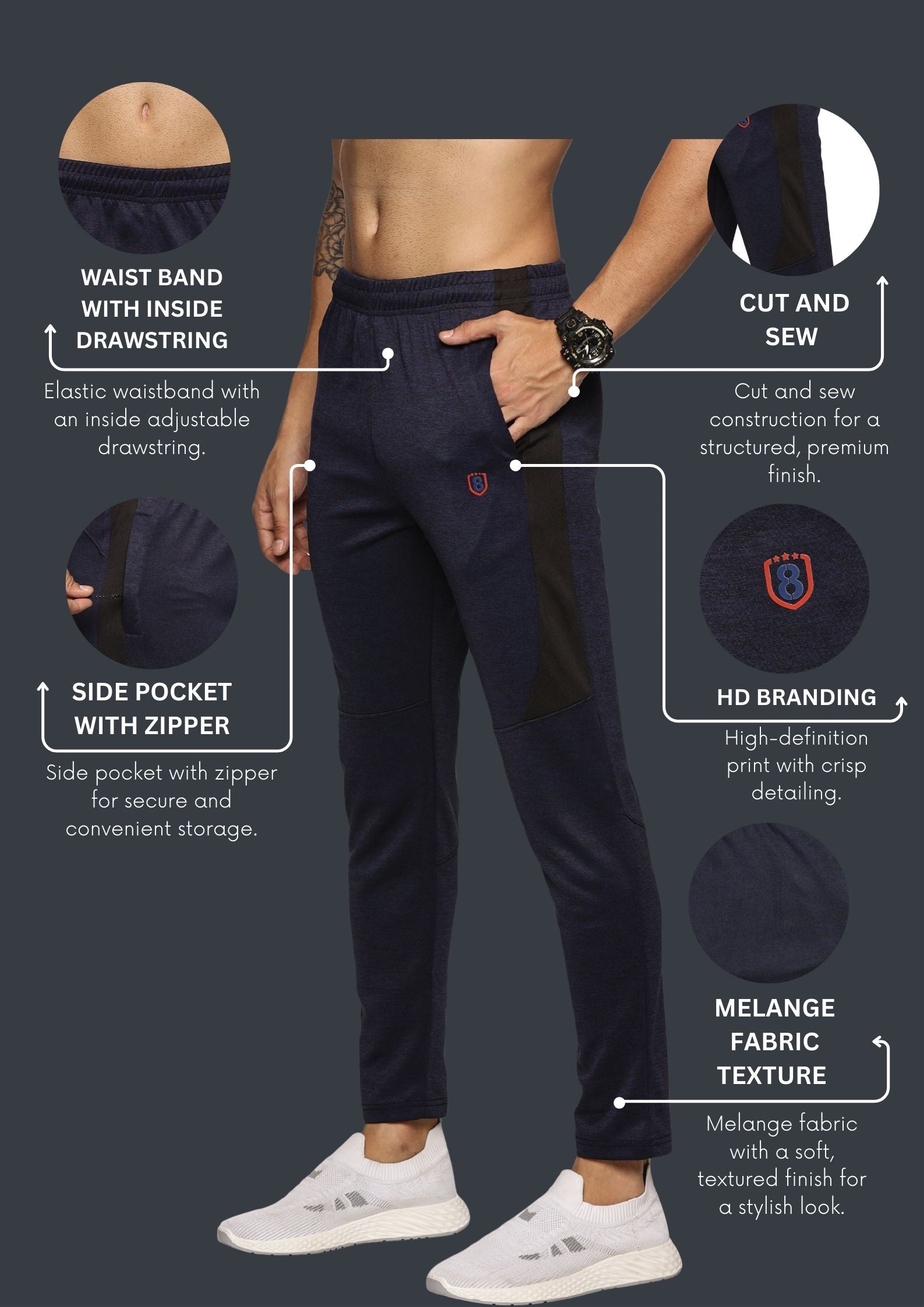 Mens Cut & Sew Track Pant with One Side Zipper Pocket and Inside Drawstring