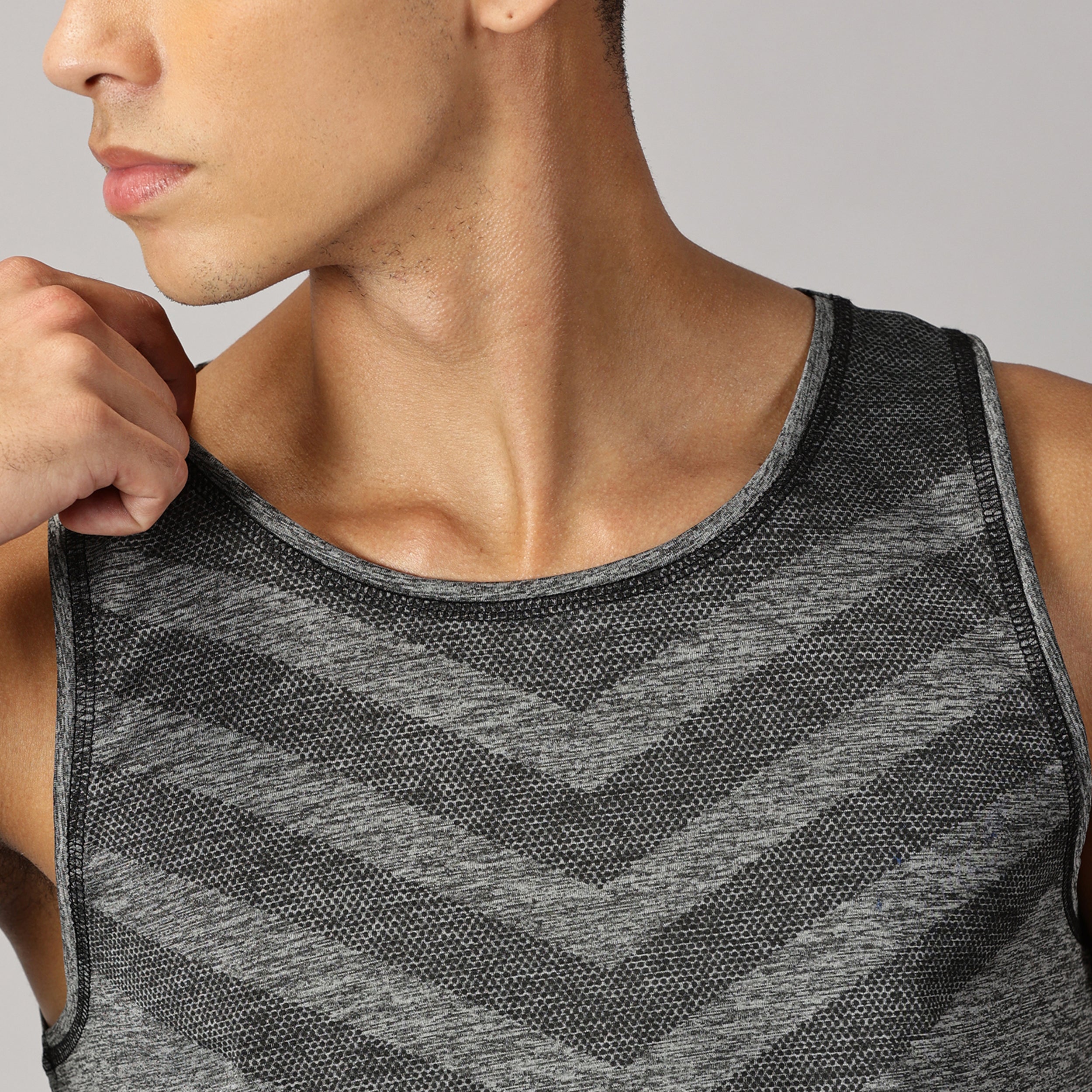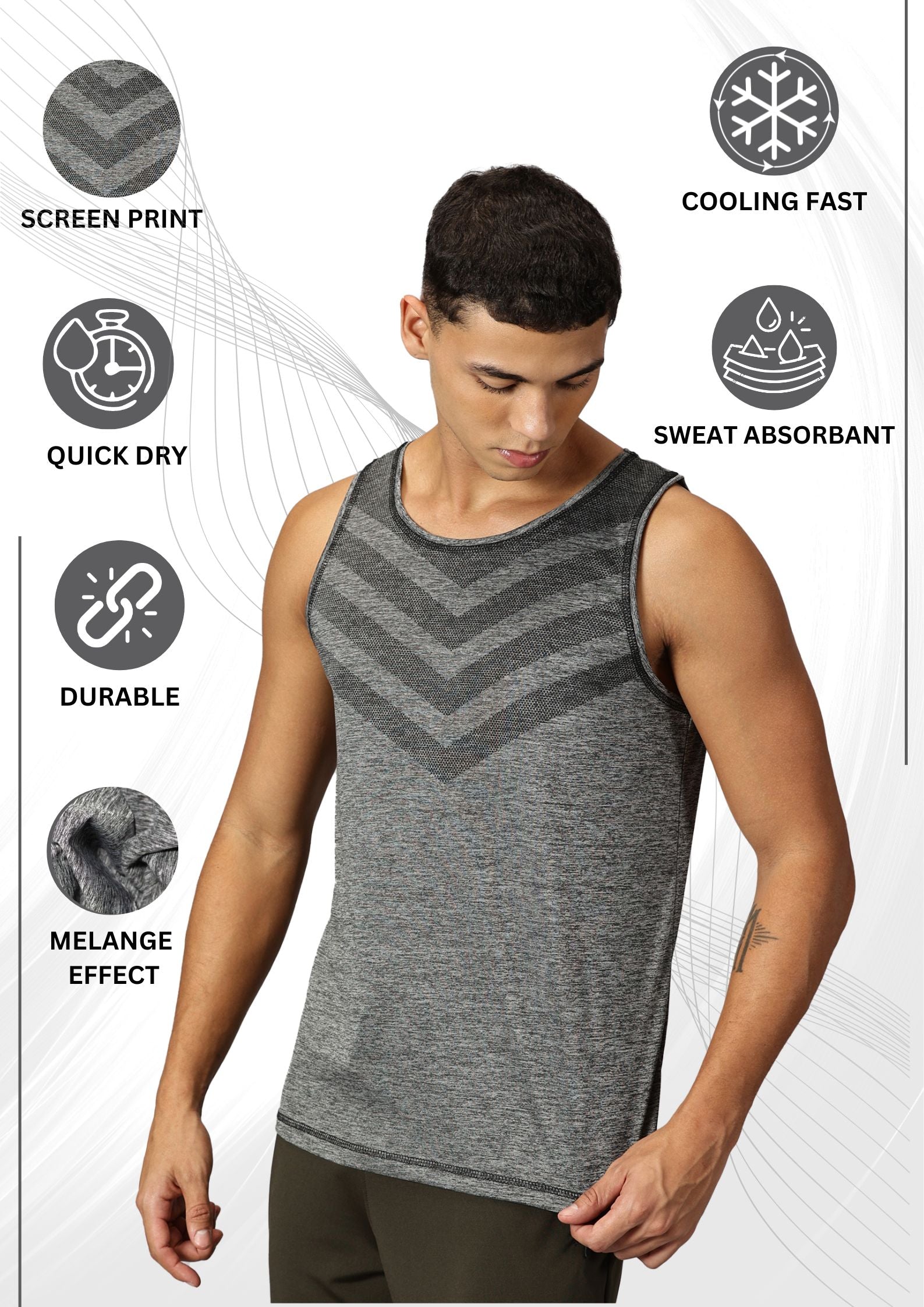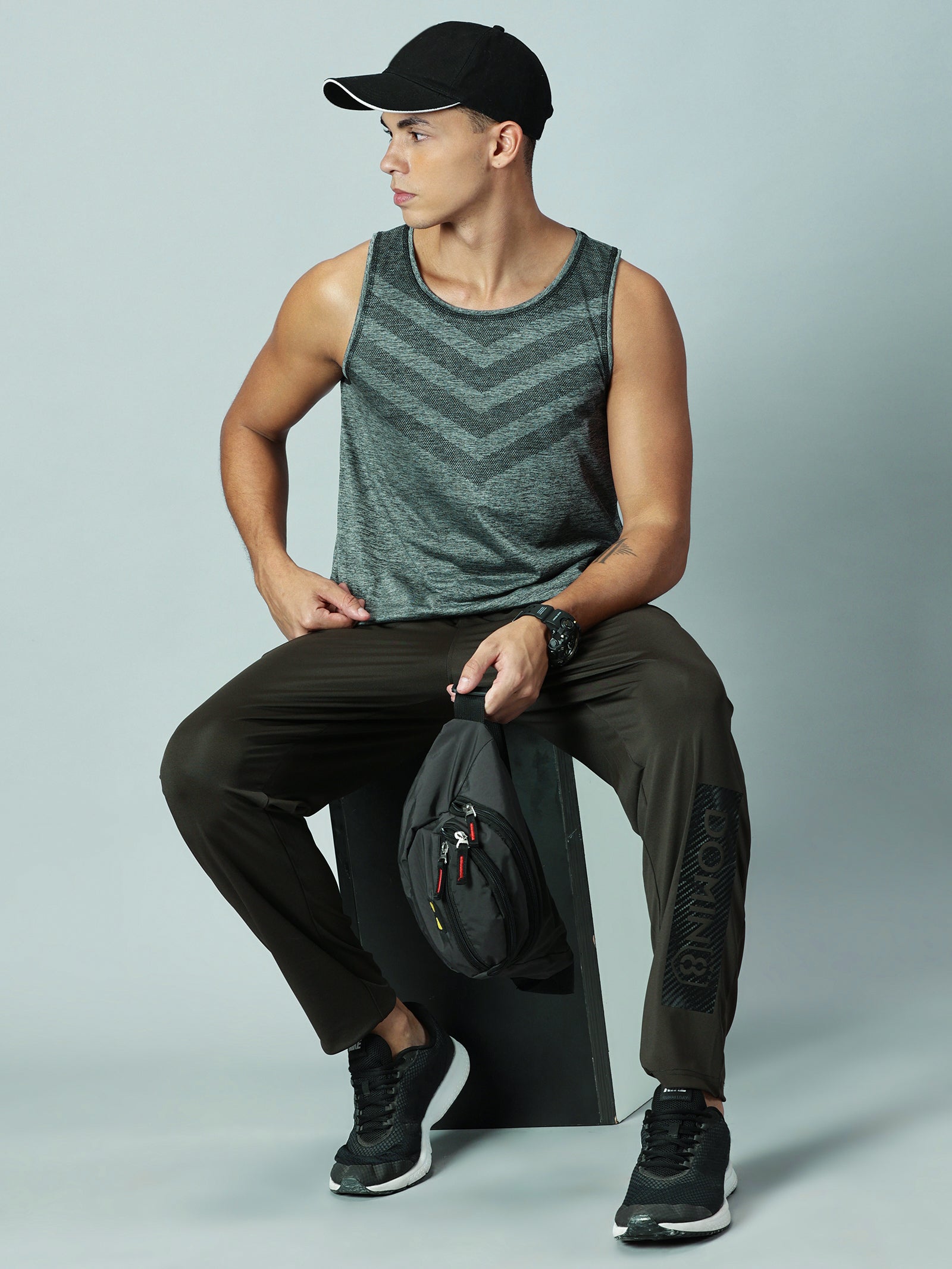 Men Slim Fit Round Neck Sleeveless Tank Top With arrow print at chest