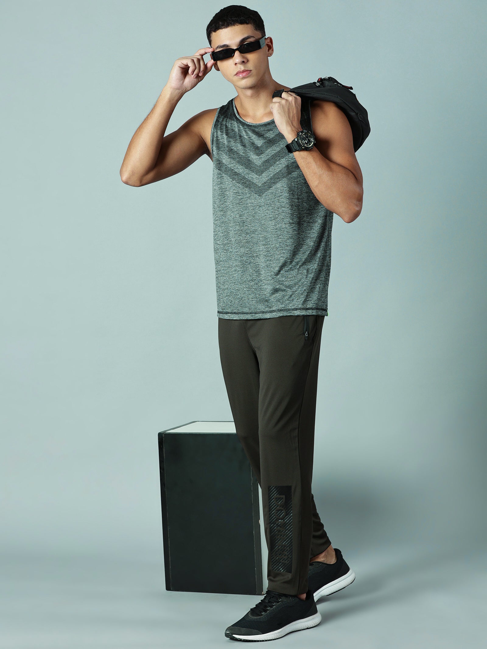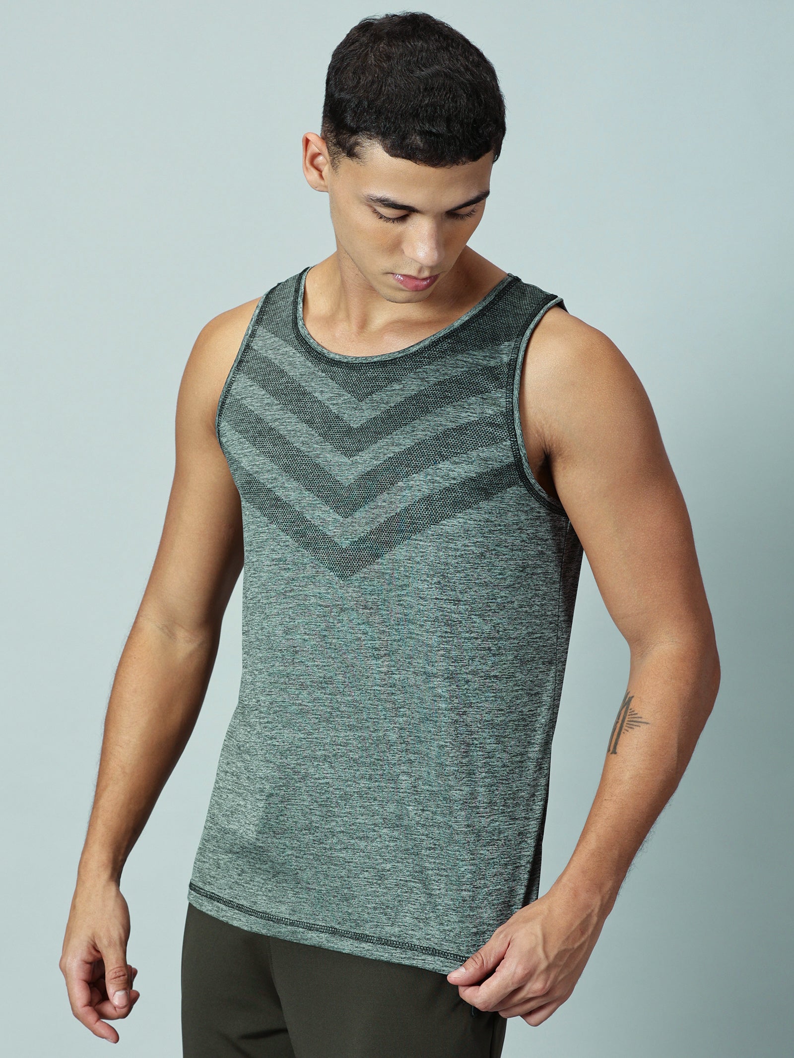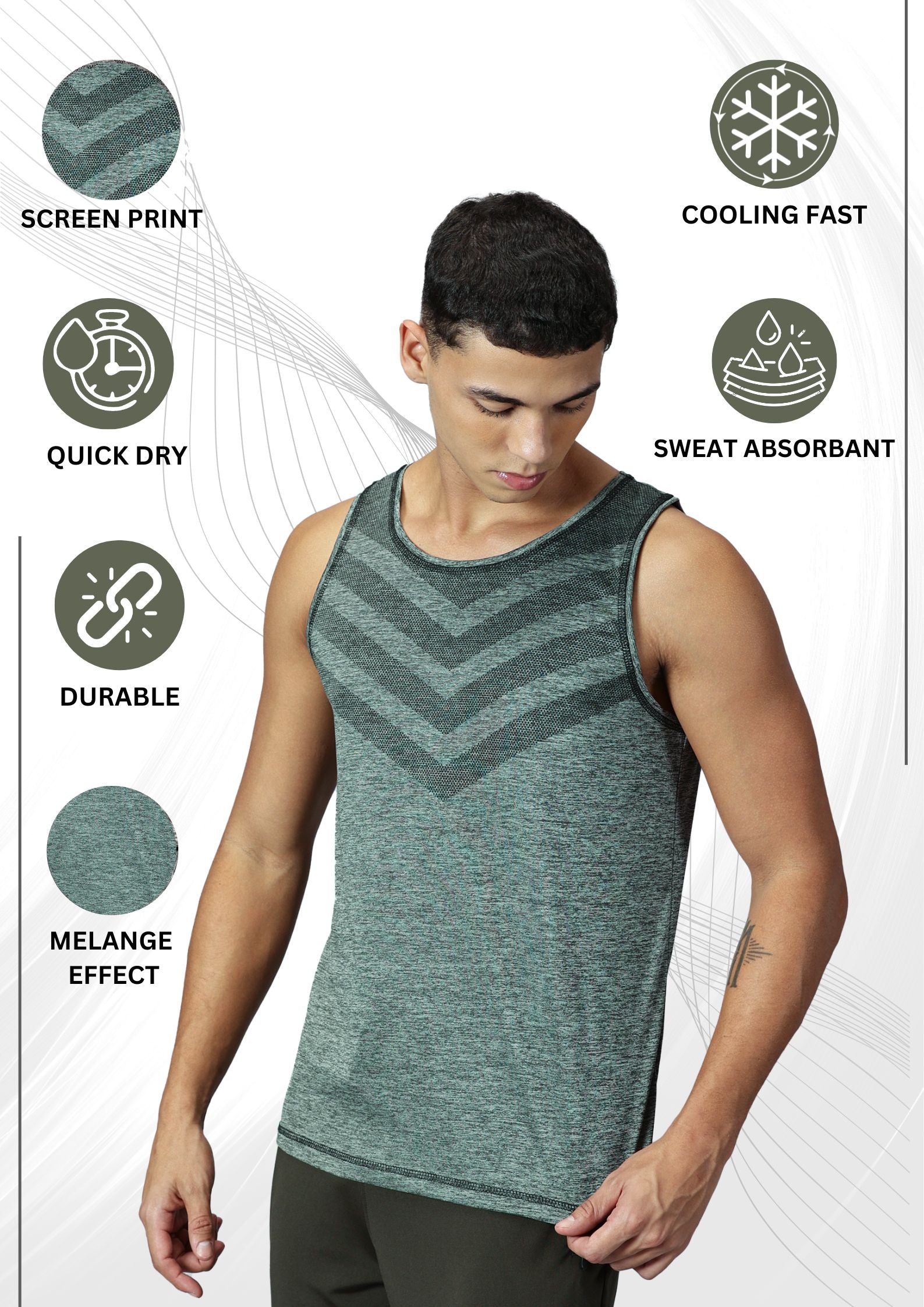 Men Slim Fit Round Neck Sleeveless Tank Top With arrow print at chest