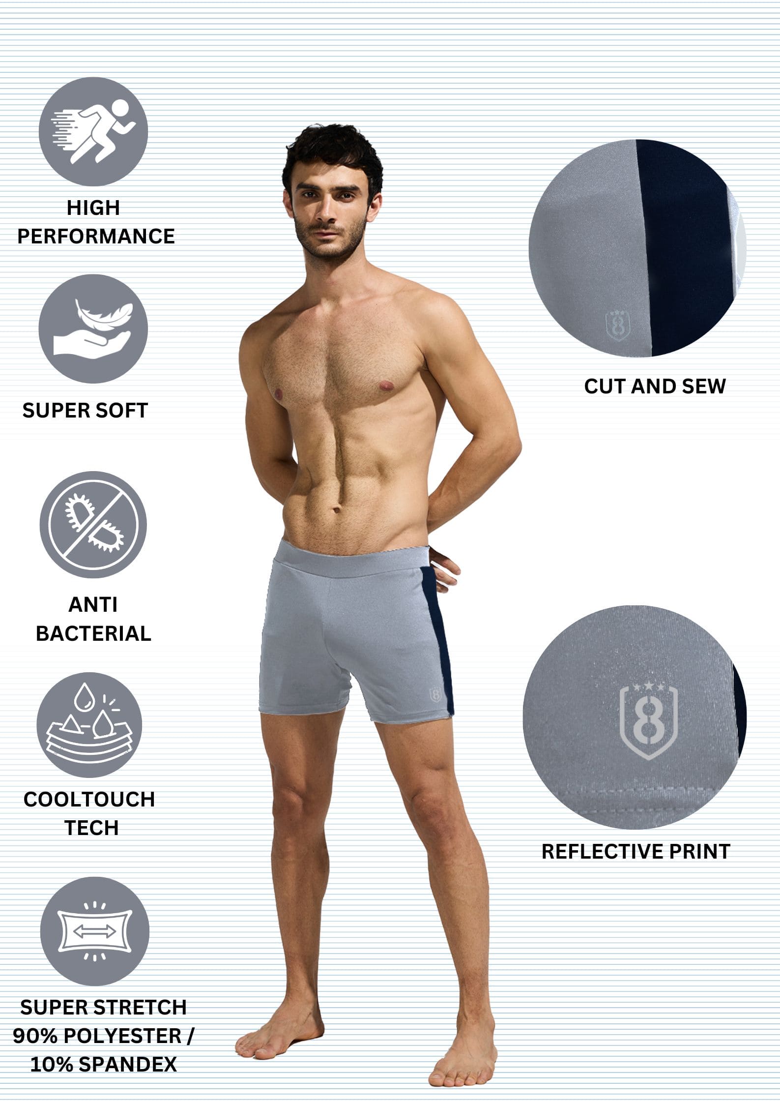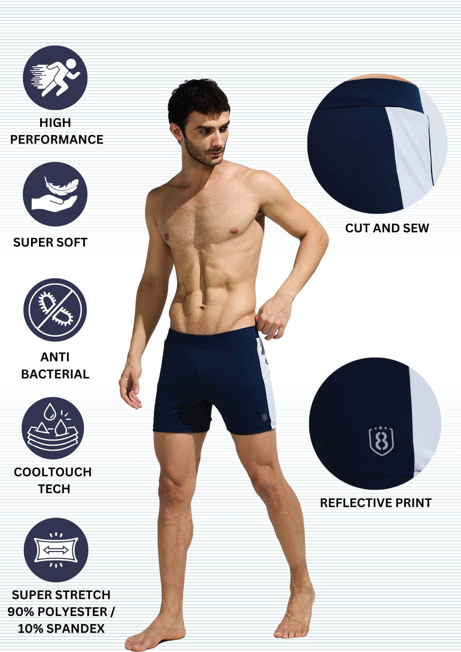 Mens Stretchable Swim Tight Shorts with Elasticated Waist Band