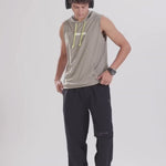 Men's Sleeveless Hoodie with Kangaroo Pocket & Neon Drawstring