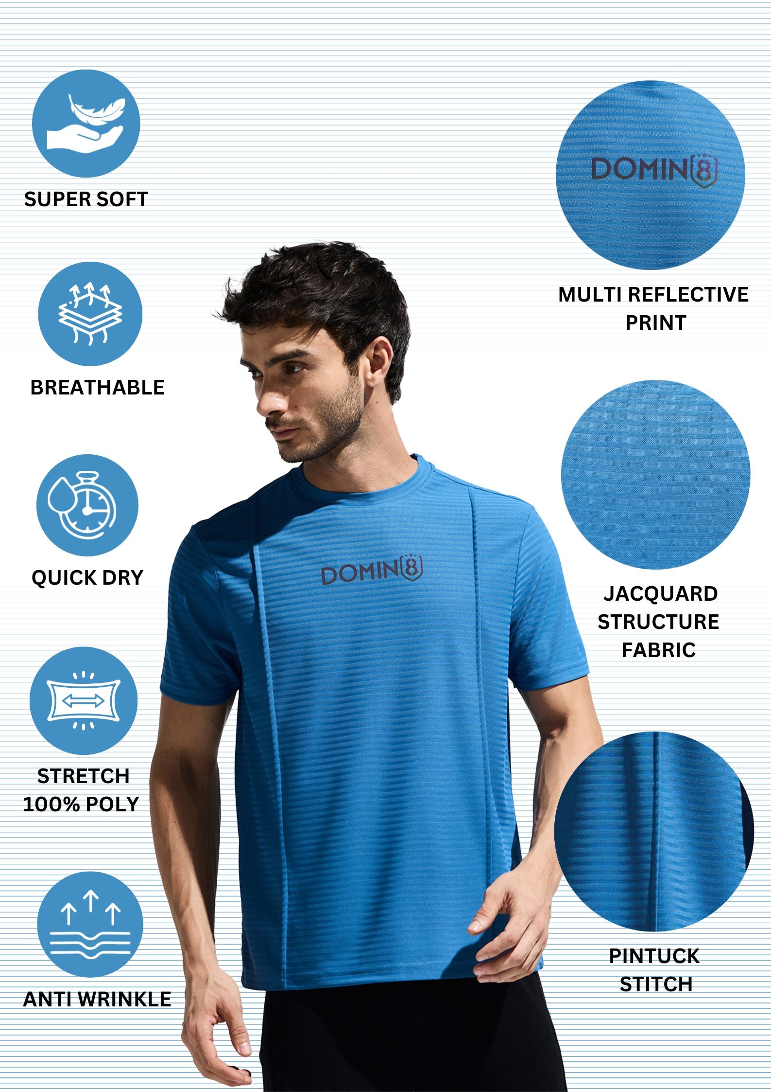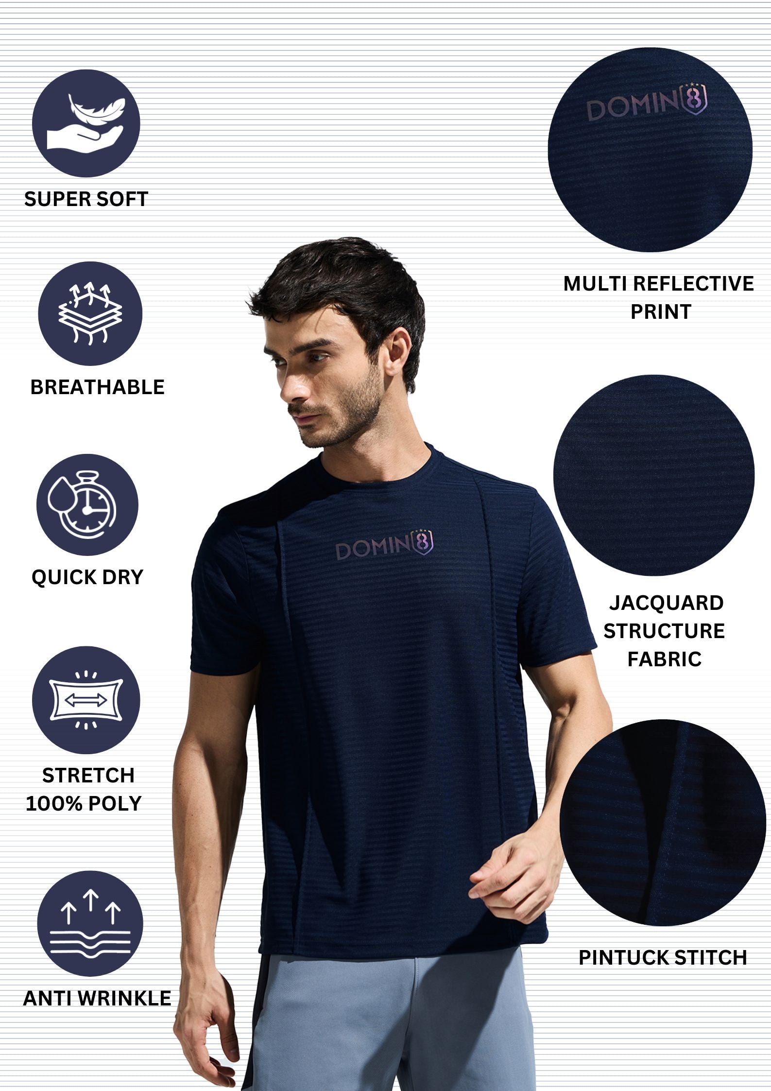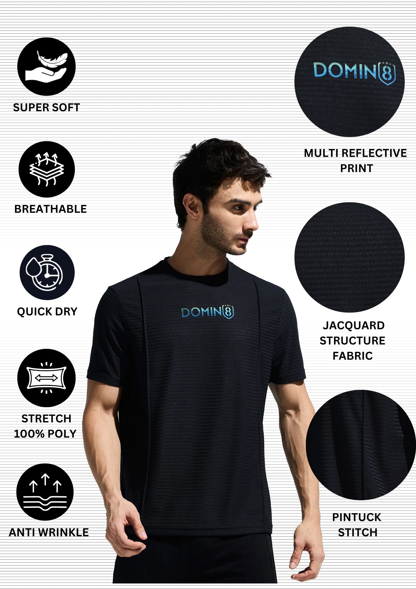 Key Features: Men's Polyester T Shirt, Stylish Pintuck Design With Multi Color Reflective Sticker, Poly Fabric Tee Good In Moisture Wicking, Fabric Resists Wrinkling And Maintains Its Shape, Jacquard Structure Fabric For Stylish Look