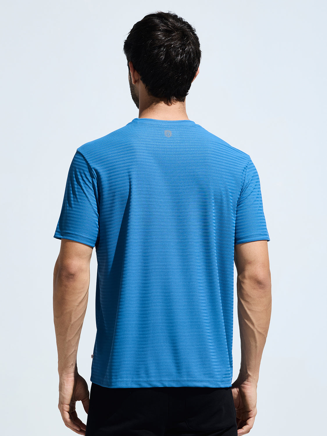 Upgrade your wardrobe with this Men’s Pintuck T-Shirt with Chest Multi Reflector Print, a perfect blend of fashion and comfort. Crafted from 100% polyester, the attire is available in  Blue , Black and Navy colors in variant sizes.