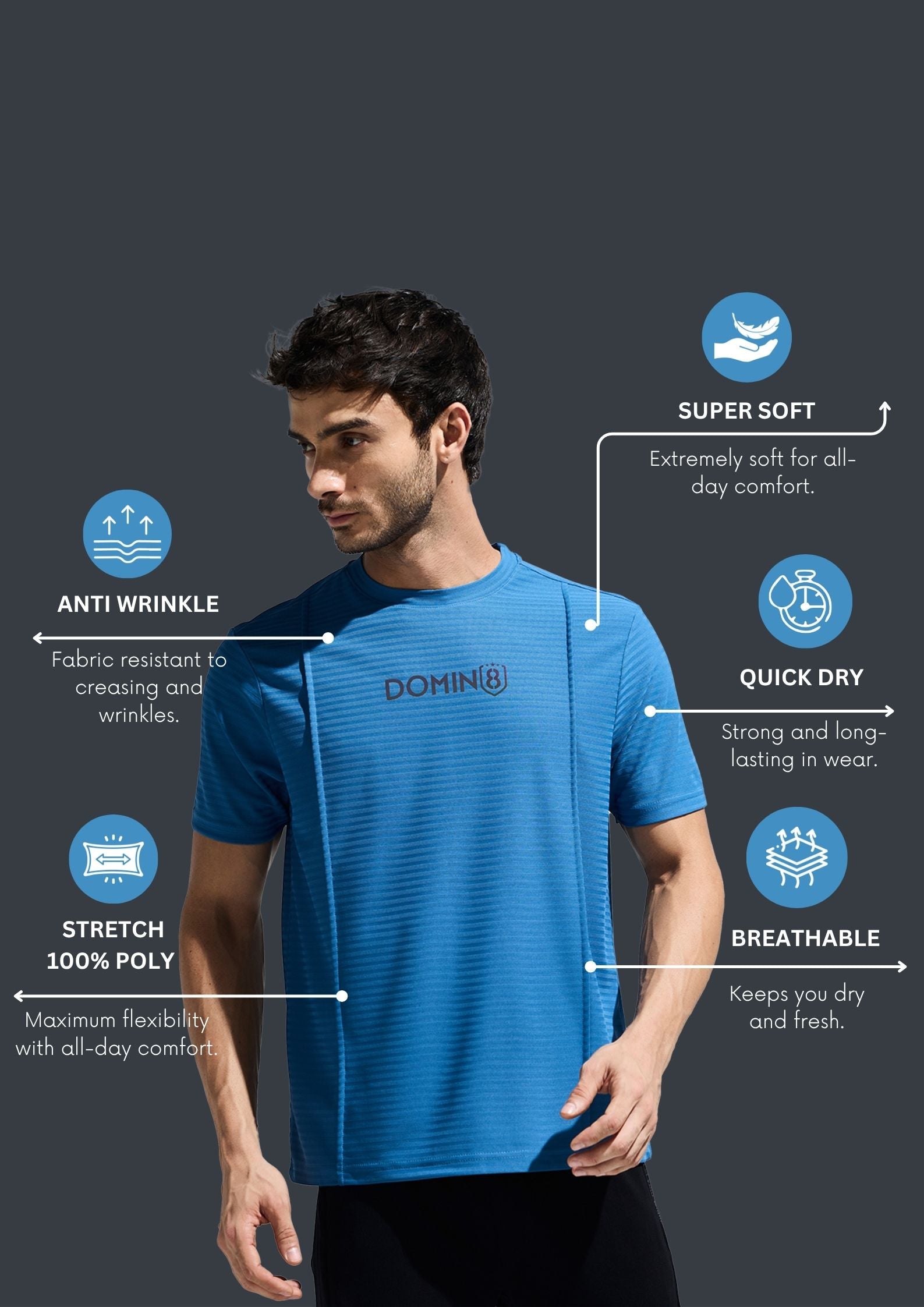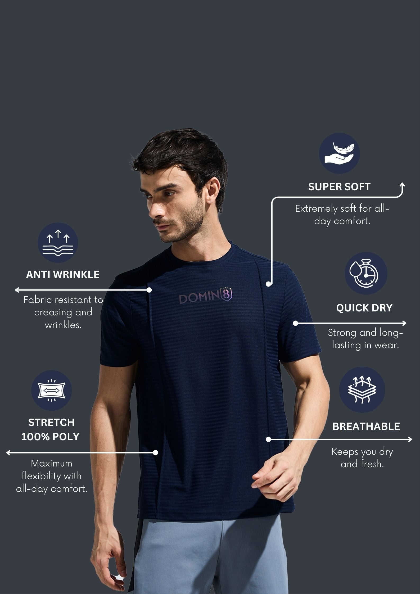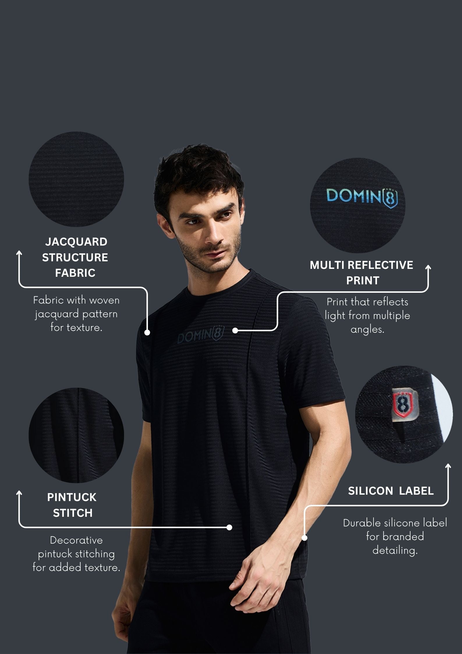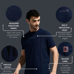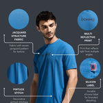 Key Features: Men's Polyester T Shirt, Stylish Pintuck Design With Multi Color Reflective Sticker, Poly Fabric Tee Good In Moisture Wicking, Fabric Resists Wrinkling And Maintains Its Shape, Jacquard Structure Fabric For Stylish Look