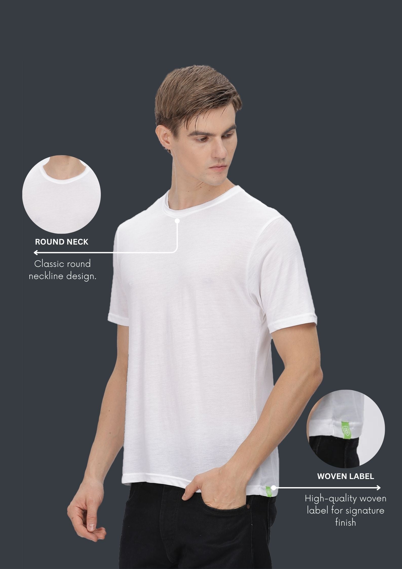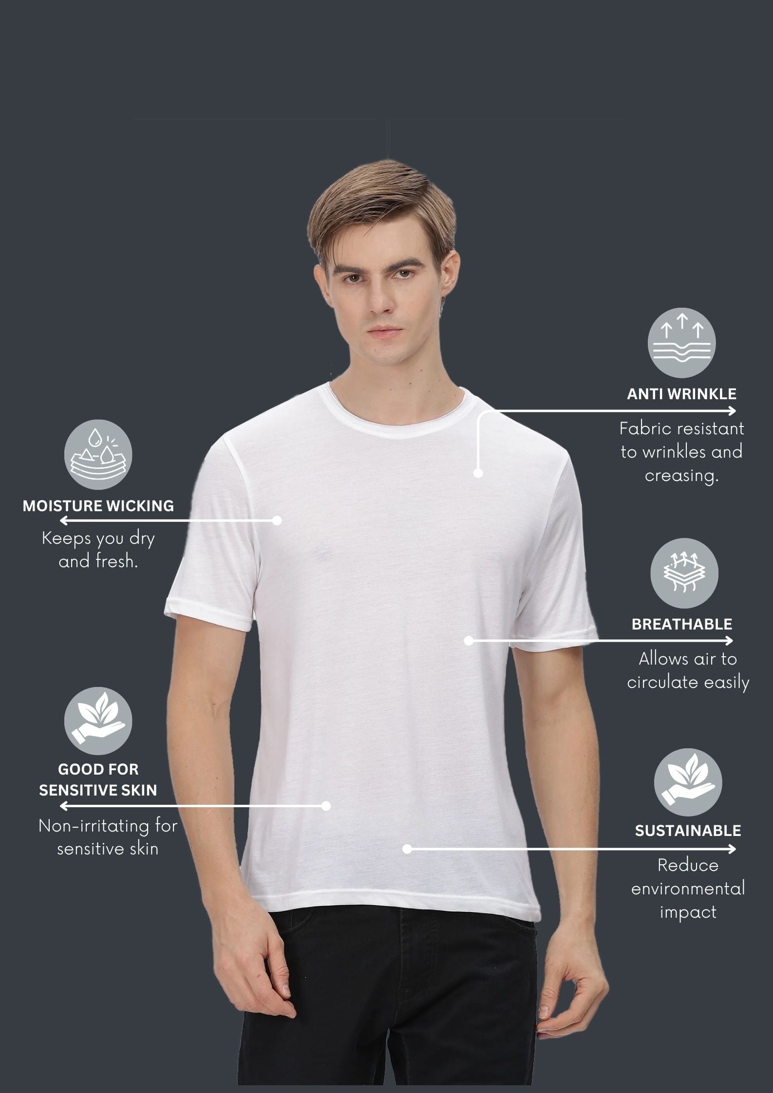Left Side view Men's tencil polyester White t-shirt – ultra-soft and smooth finish