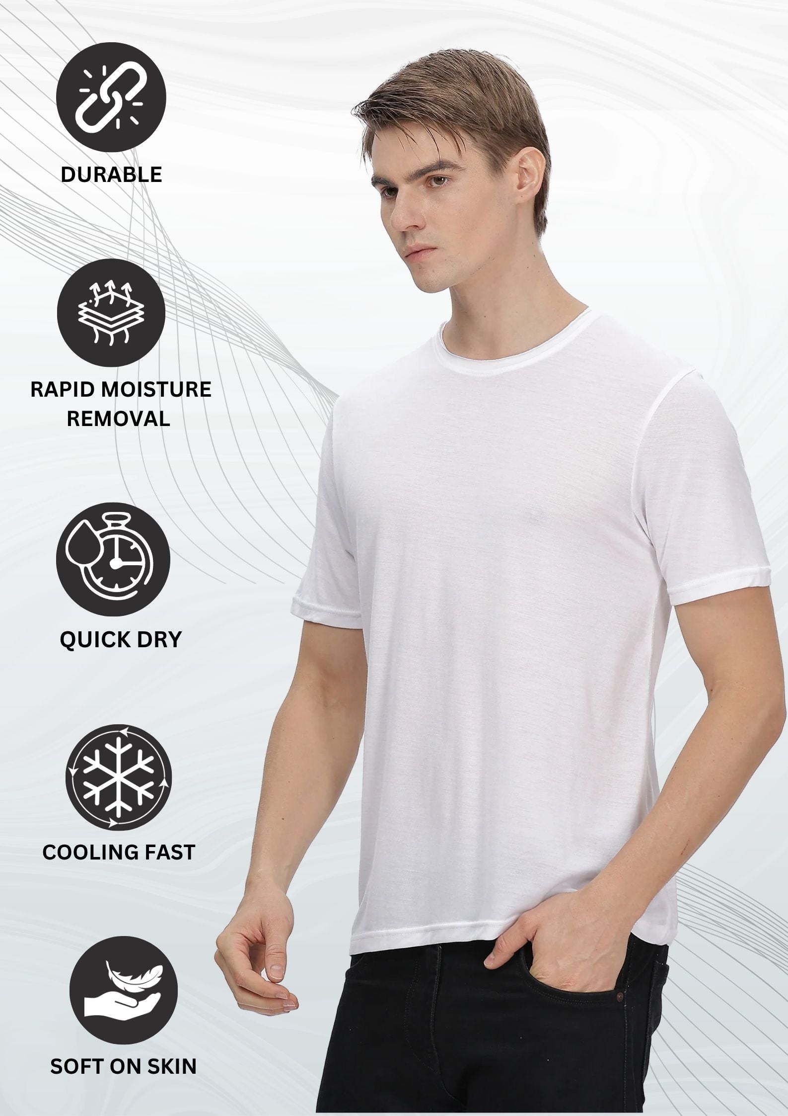 Left Side view Men's tencil polyester White t-shirt – ultra-soft and smooth finish