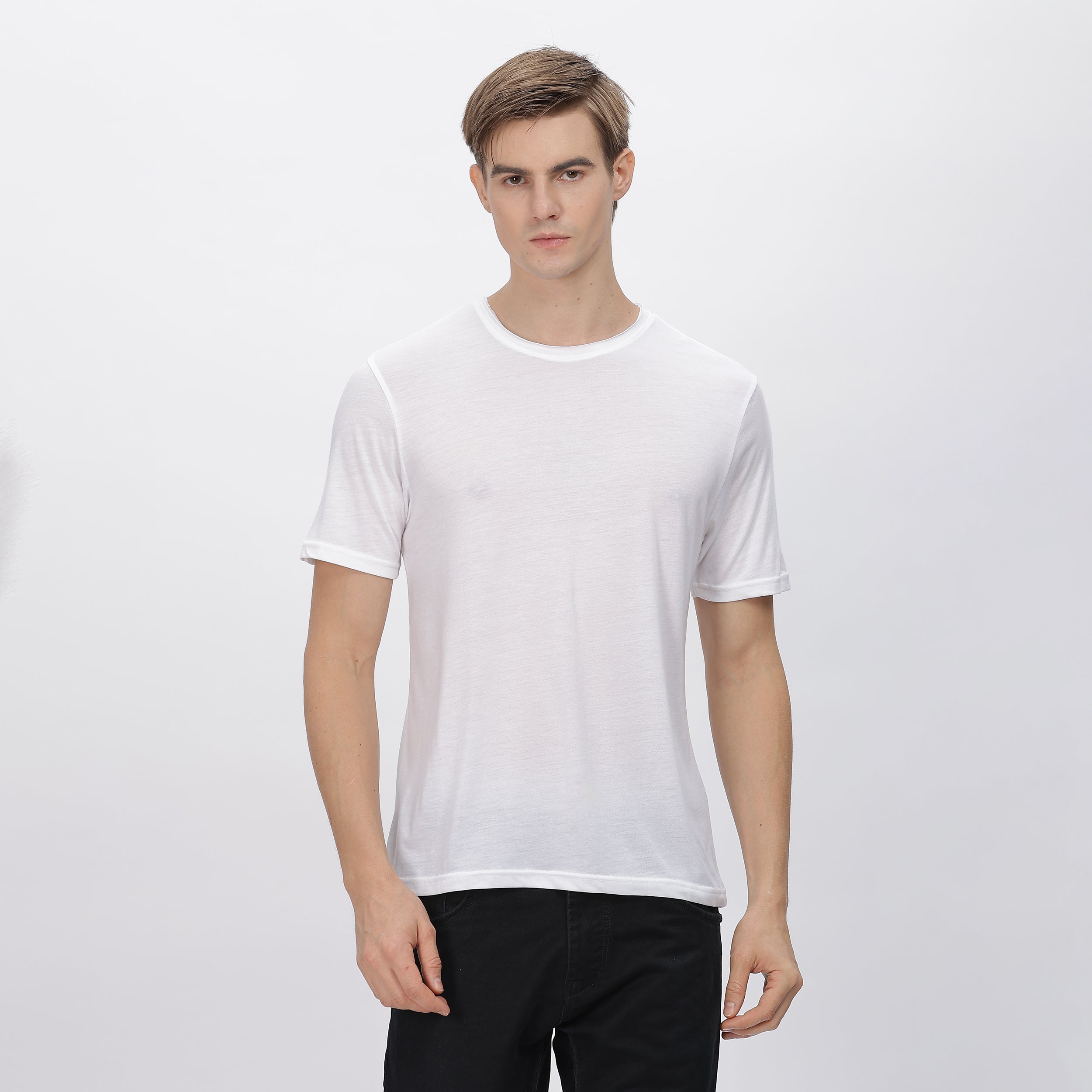 Left Side view Men's tencil polyester White t-shirt – ultra-soft and smooth finish