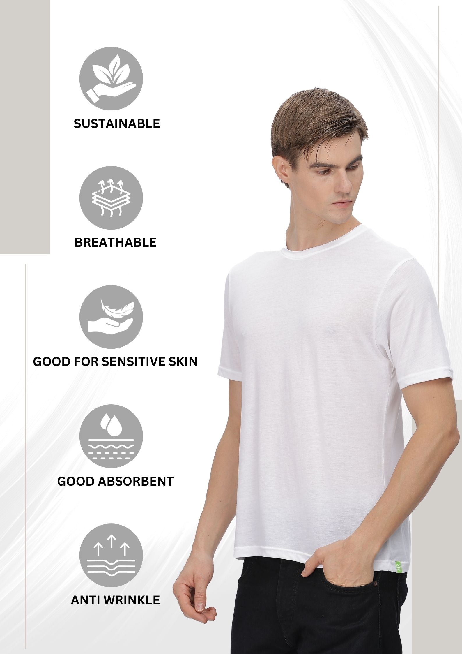 Left Side view Men's tencil polyester White t-shirt – ultra-soft and smooth finish