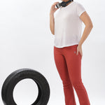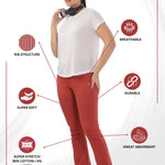 The right slim-fit red pants do exist… and you’re looking right at them! These stylish, comfort-fit pants for women are a fine blend of cotton and spandex rib.