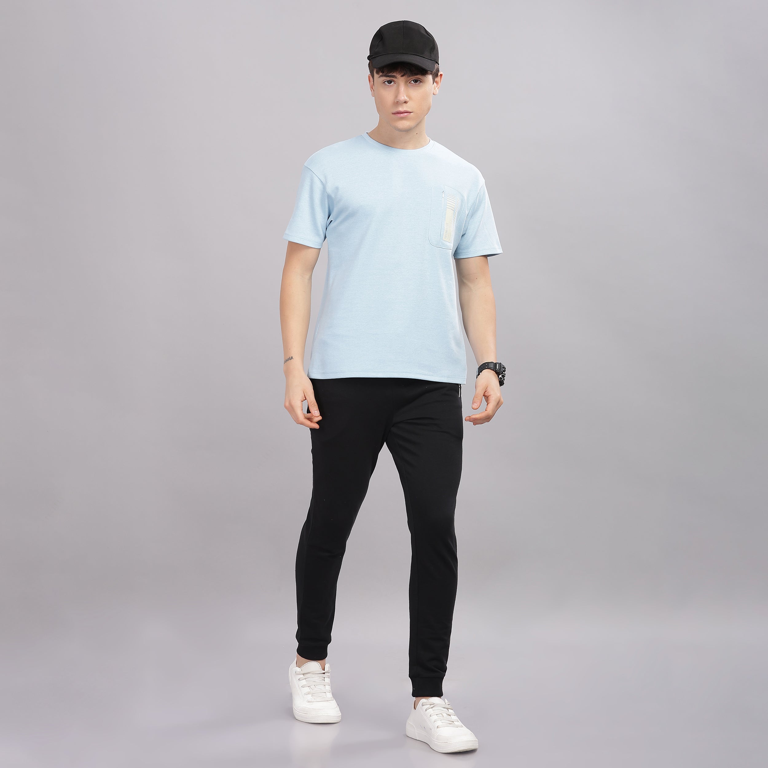 Men’s Soft Cotton Shrinkage Resistant Stretchable T Shirt with Chest Zipper Pocket