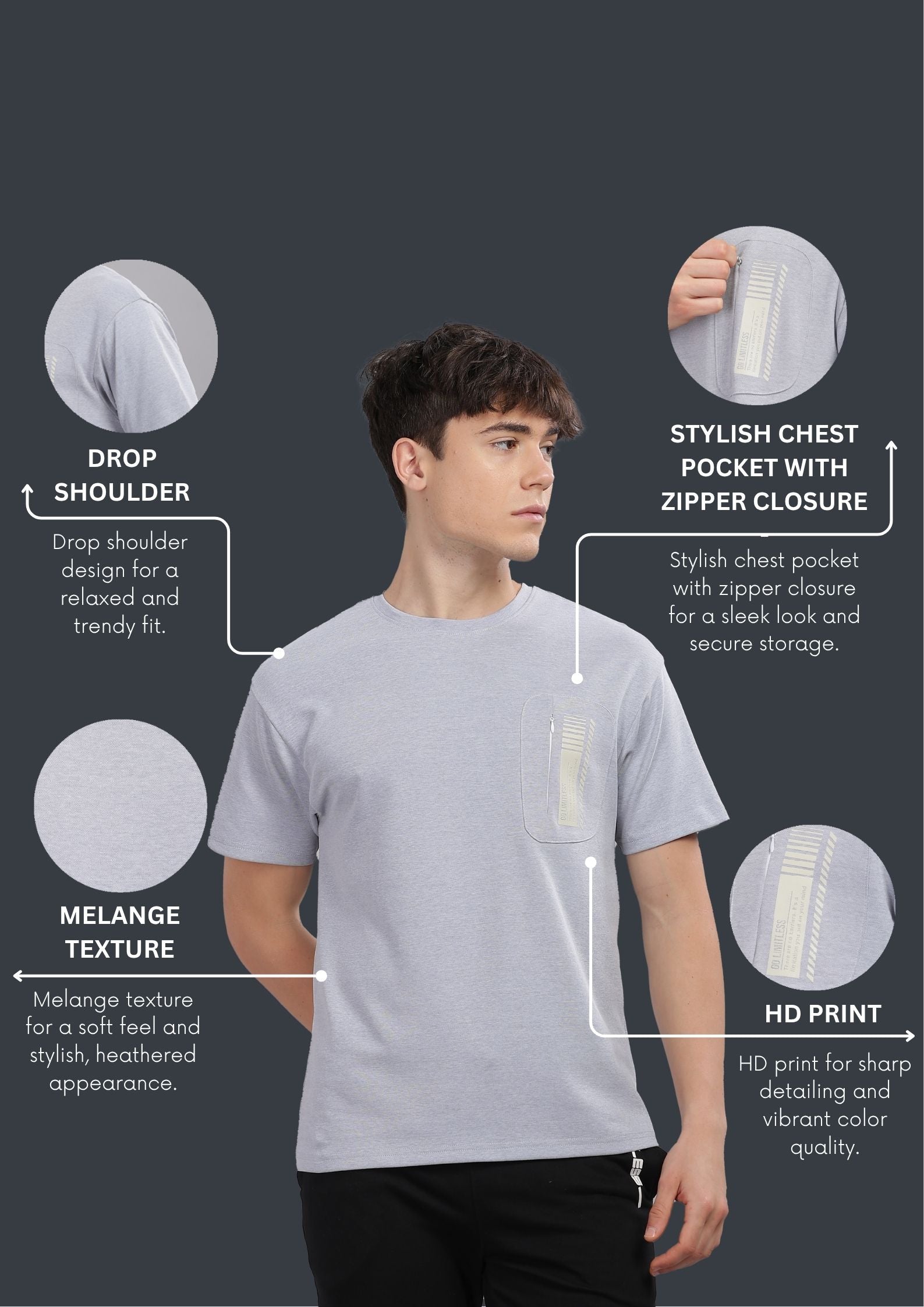 Men’s Soft Cotton Shrinkage Resistant Stretchable T Shirt with Chest Zipper Pocket