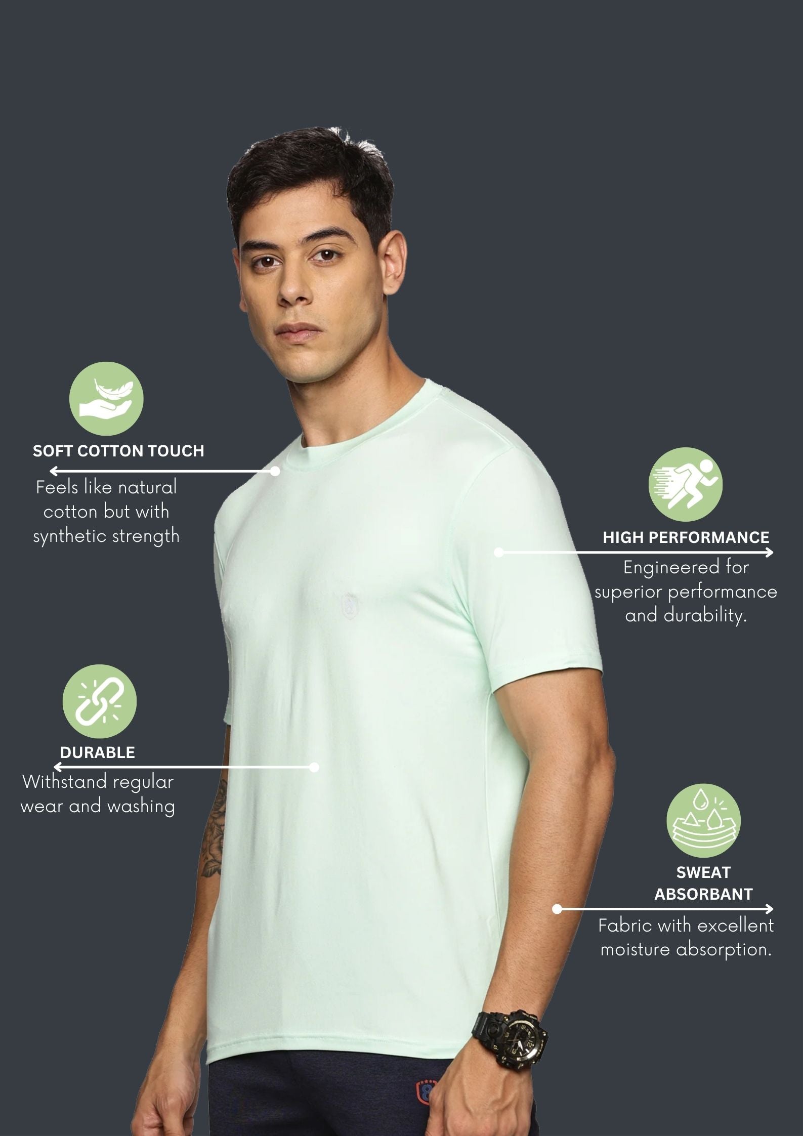 Men Cotton feel Super Stretchy Slim fit Polyester T Shirt