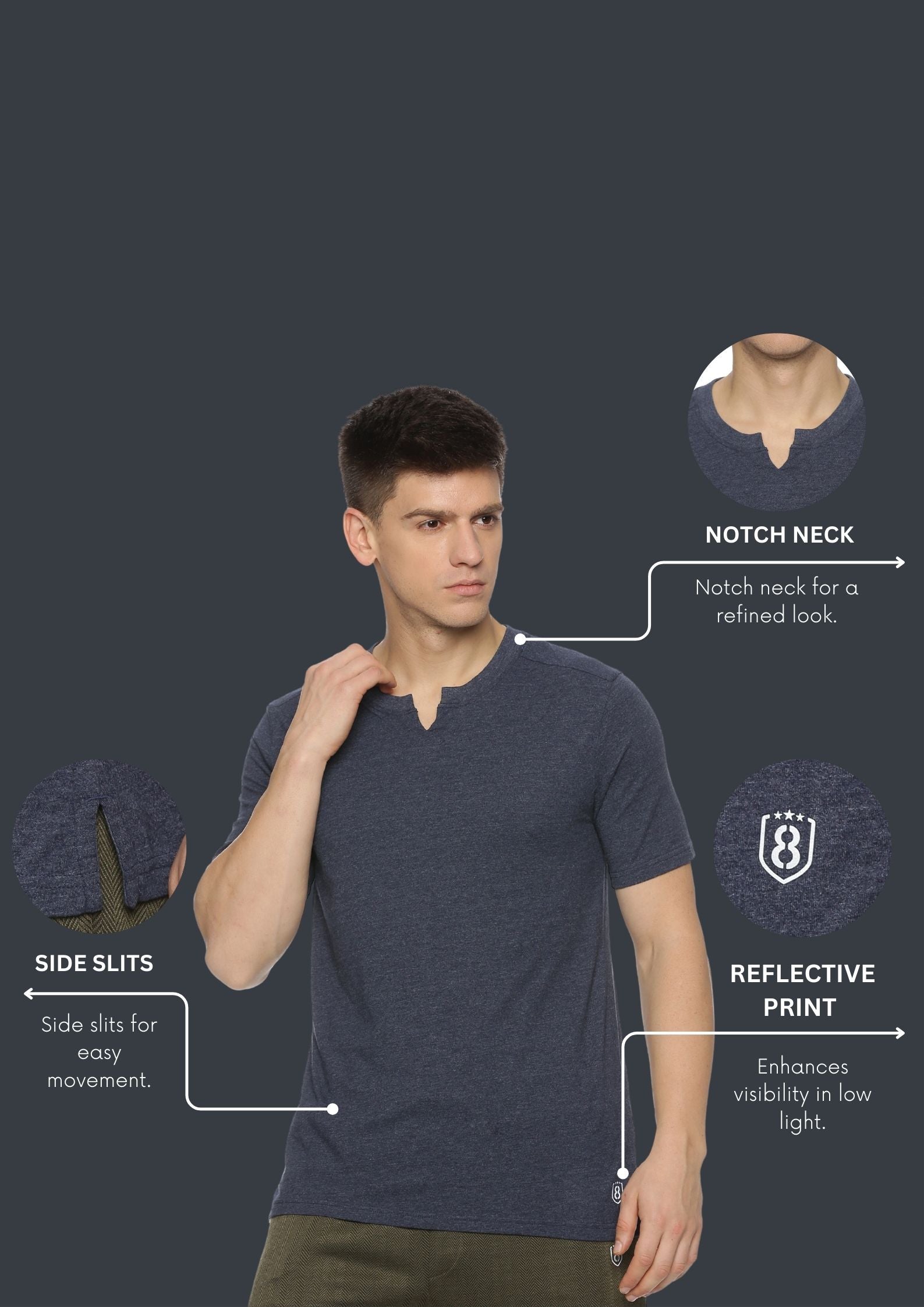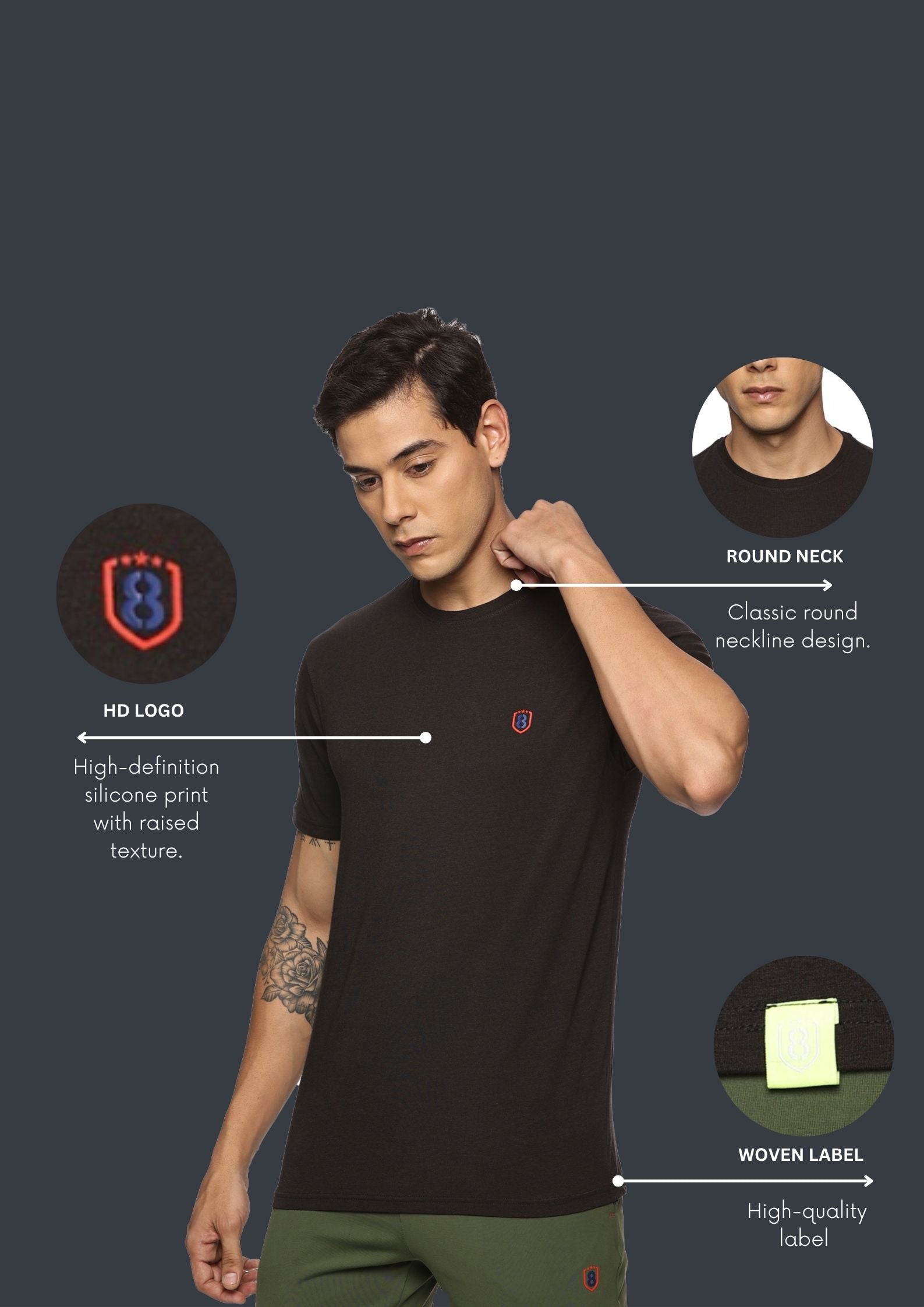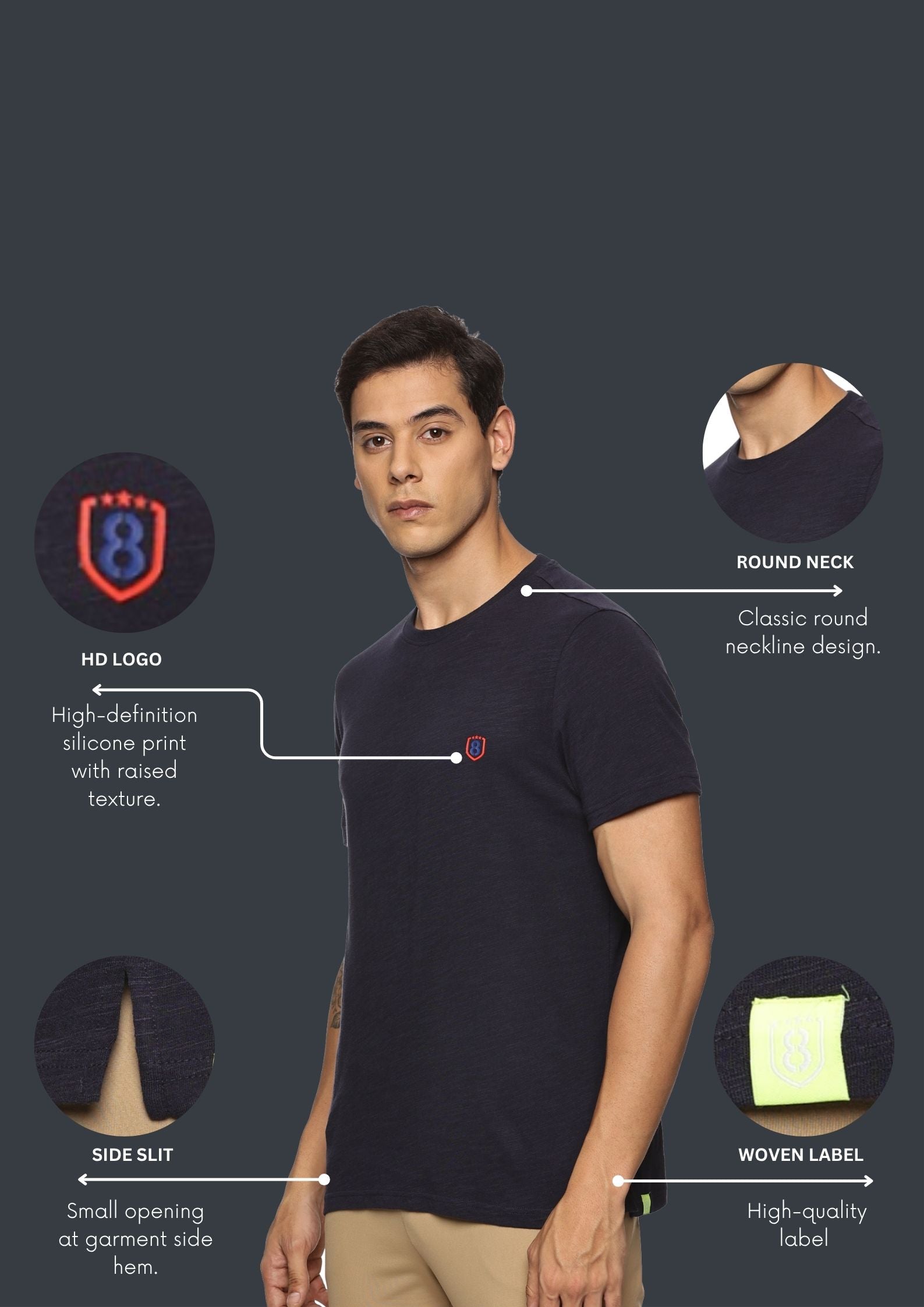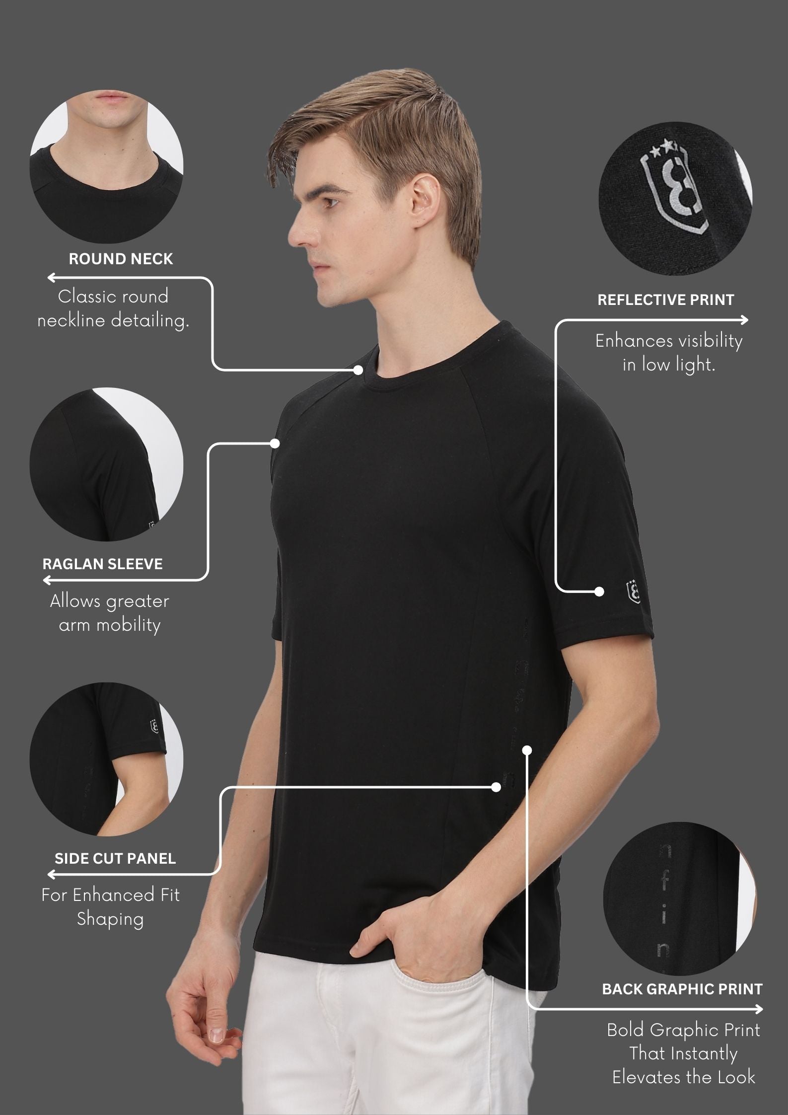 Men's Ultra Soft and Stretchy T-Shirt side panel print (Black)