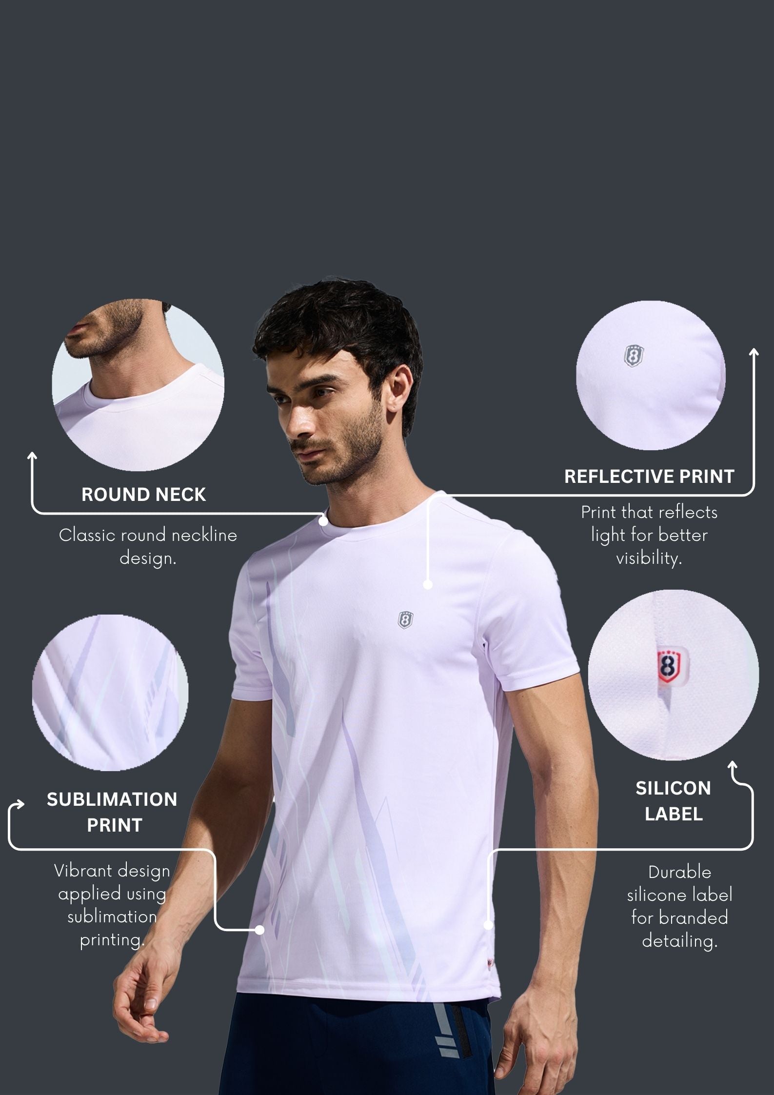 Men's Round Neck Multi reflector Logo T-Shirt