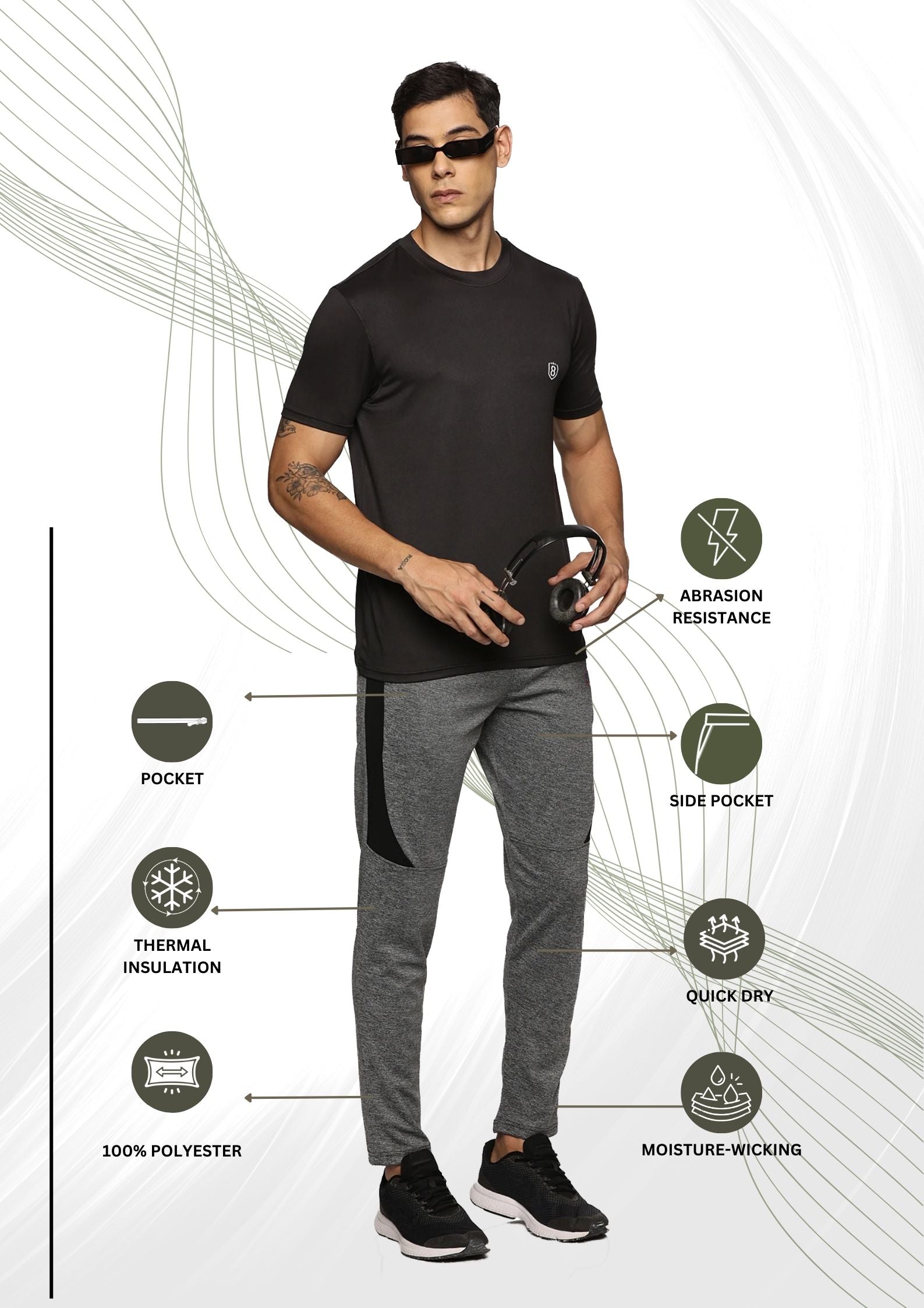 Grey and black zipper pocket track pants – ideal for gym and casual wear