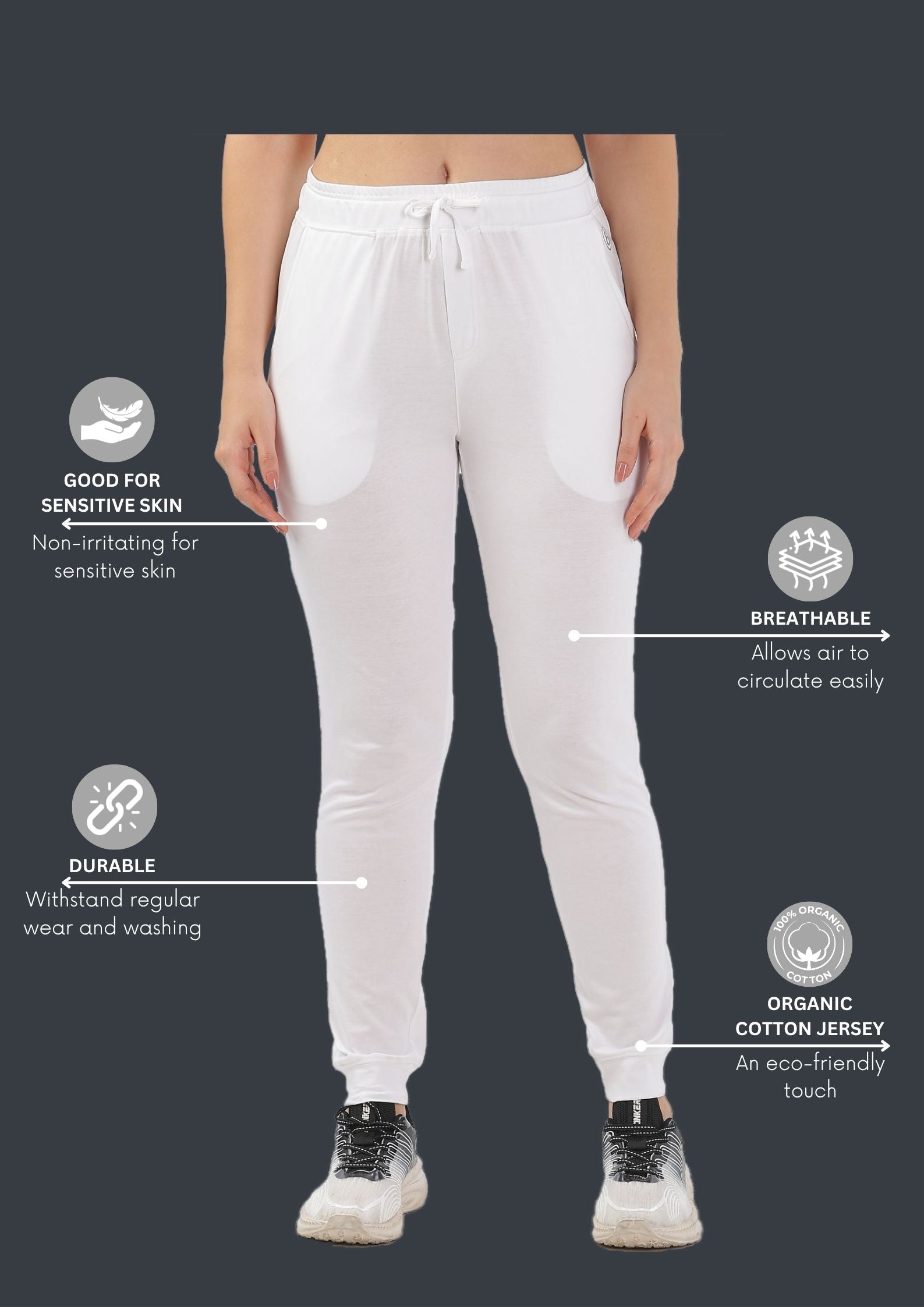 Women Organic Cotton Joggers Pant With Side Pockets and Adjustable Waist
