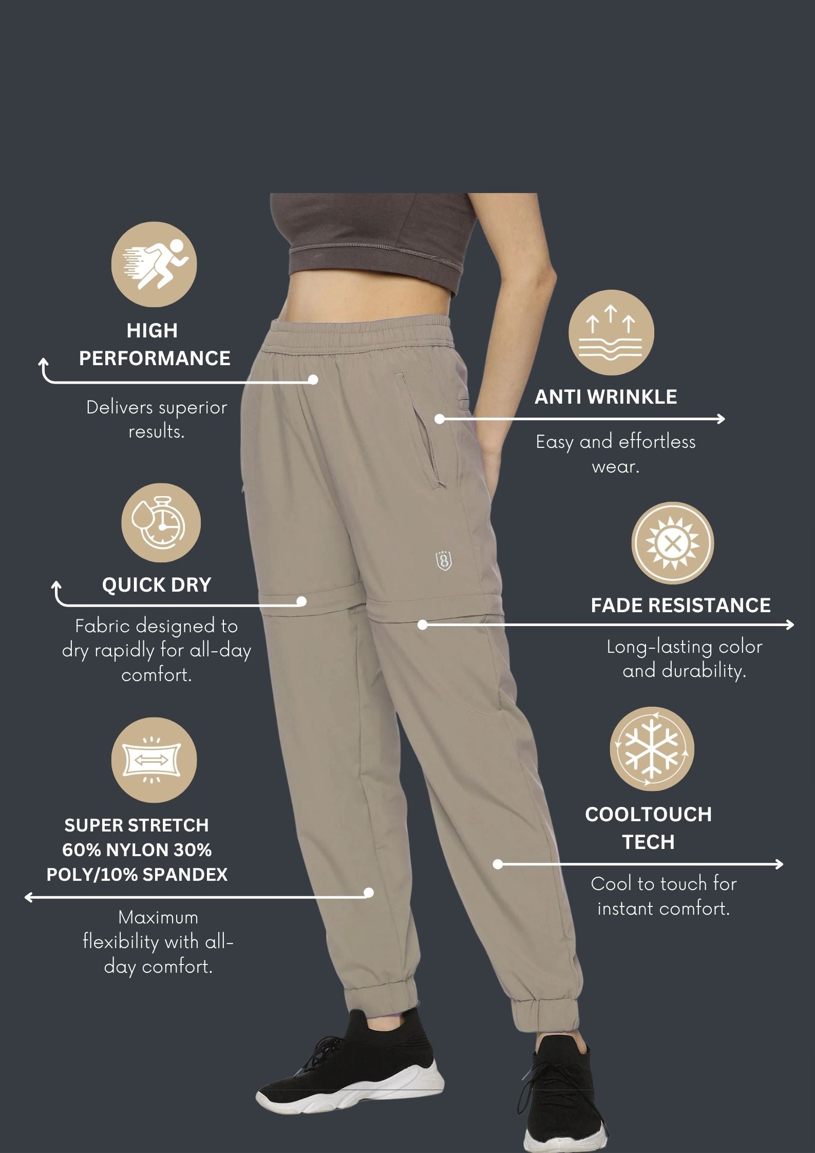 Women's Solid Detachable Track pants with Zipper Pockets