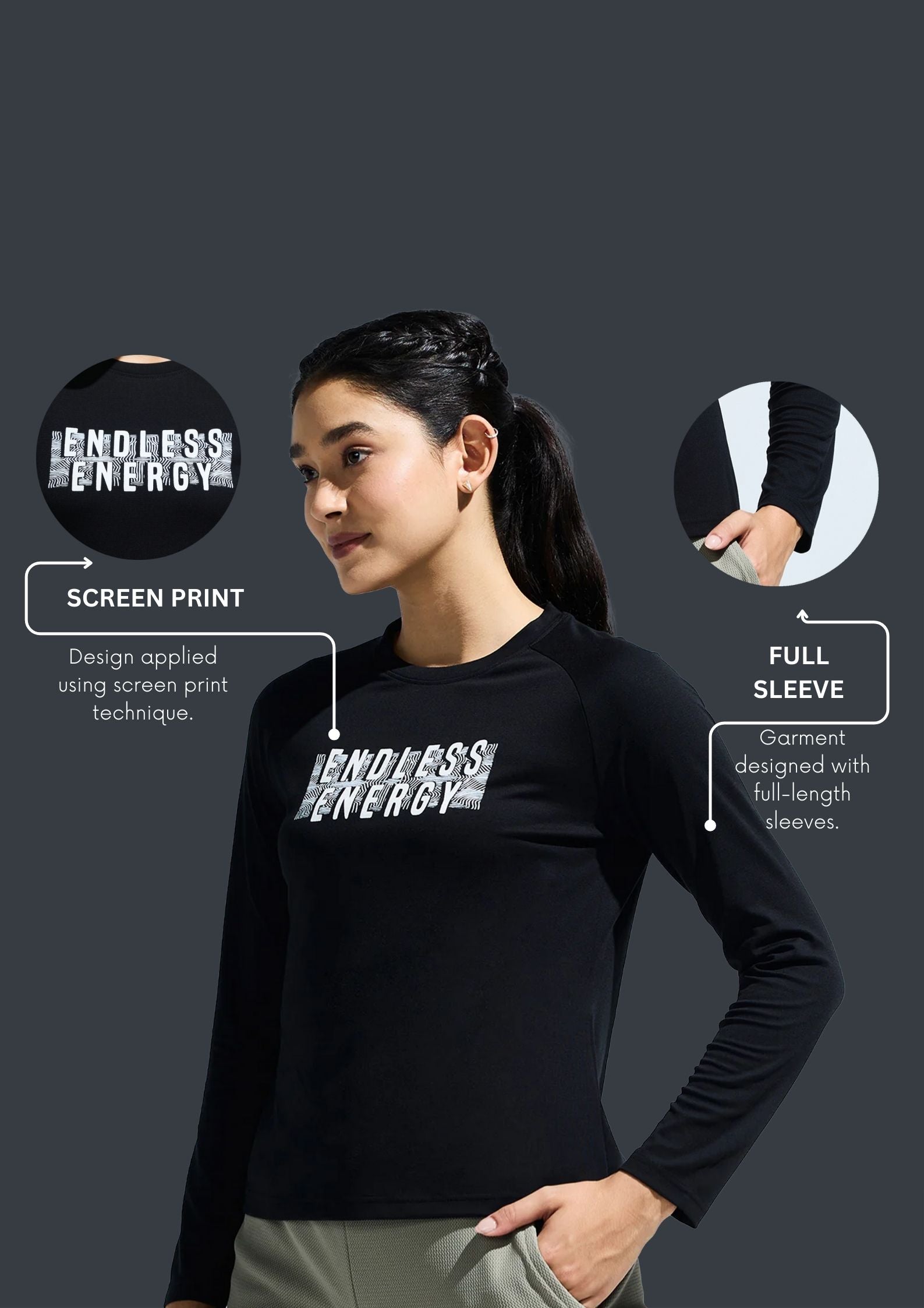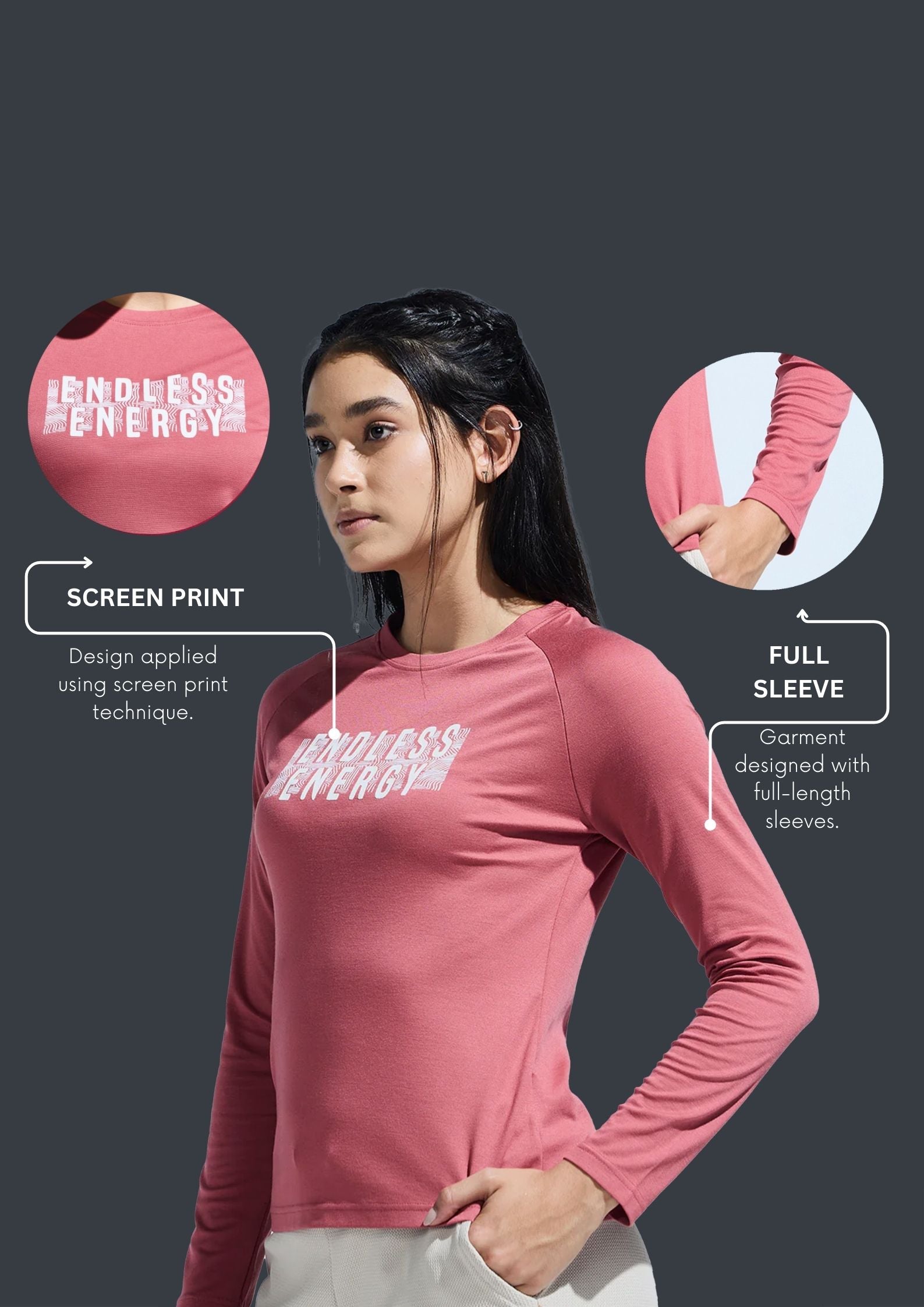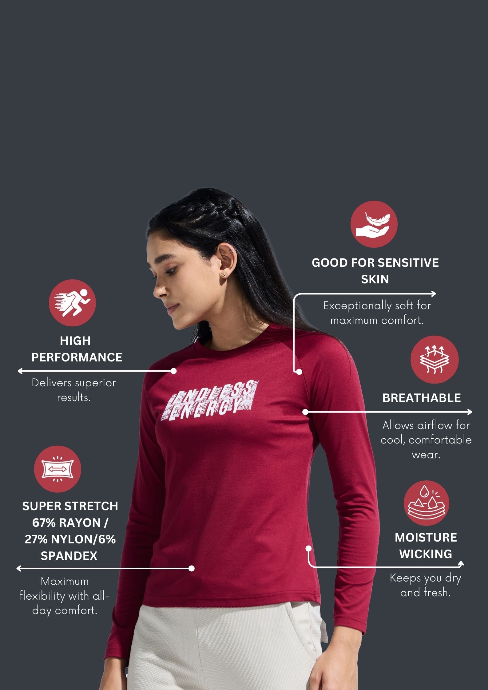 Enhance your everyday attire with our Women's Full Sleeve Graphic T-shirt, a harmonious fusion of style and ease. This sophisticated top is composed of a premium fabric mix, featuring 67% rayon, 27% nylon, and 6% spandex, offering a gentle and lavish feel on your skin. The distinctive raglan sleeves add a handcrafted element, allowing for free movement while incorporating a casual-athletic appeal.
