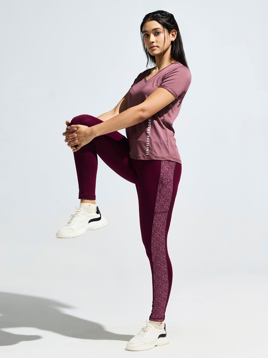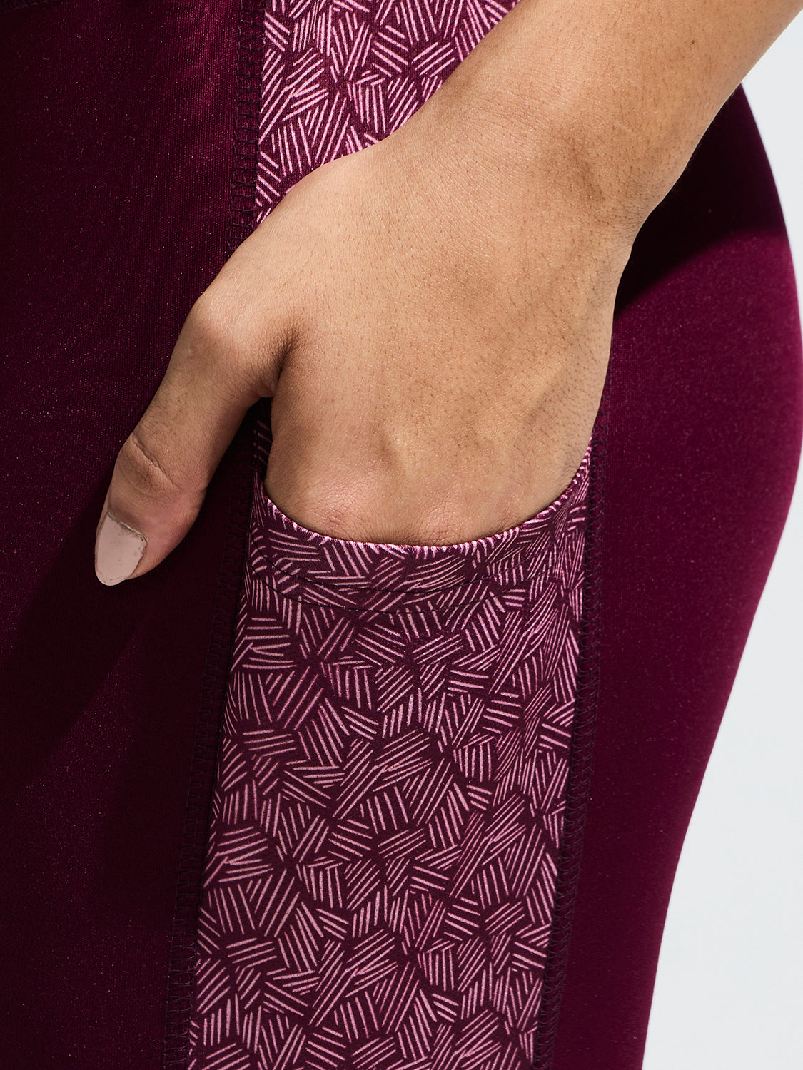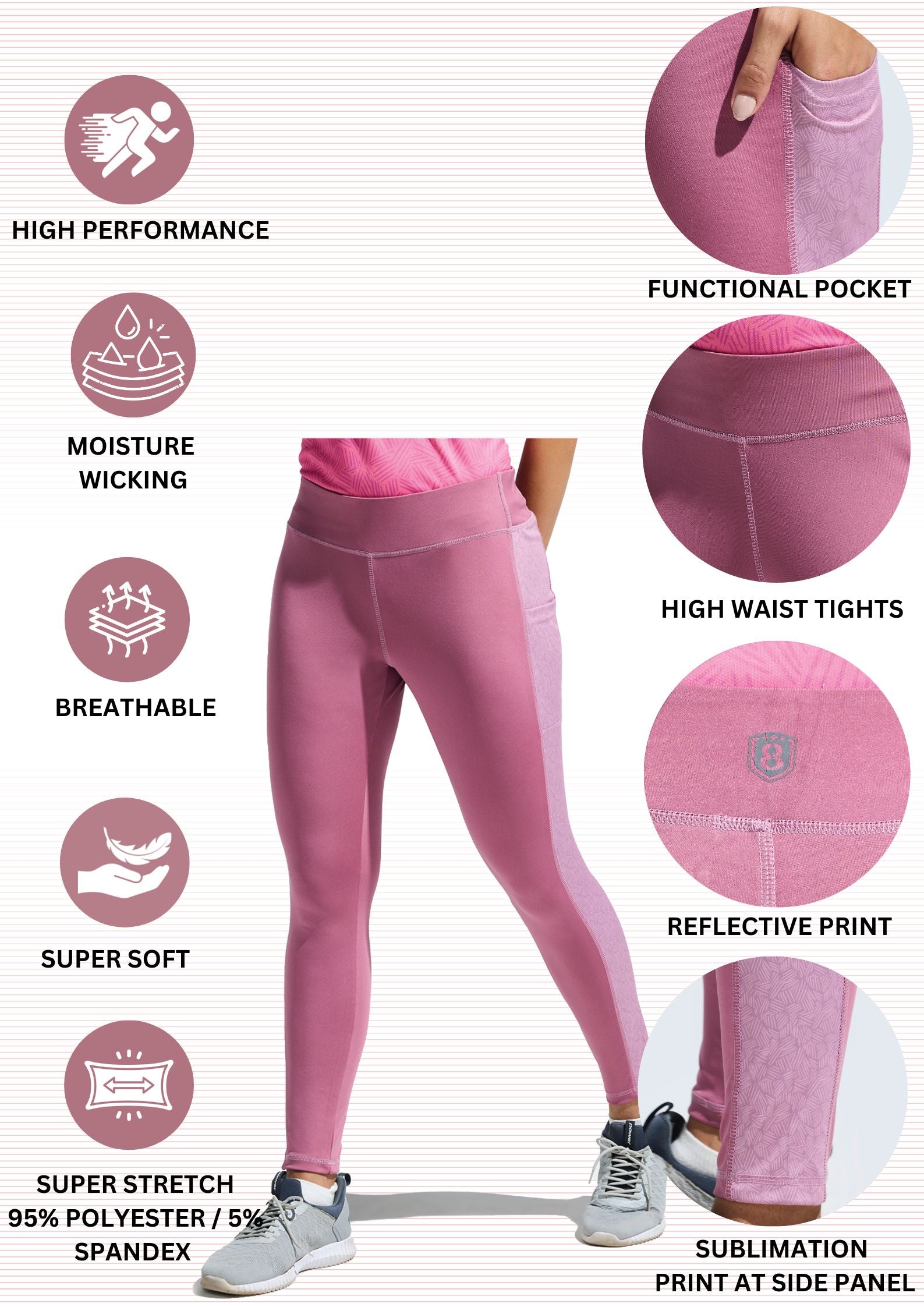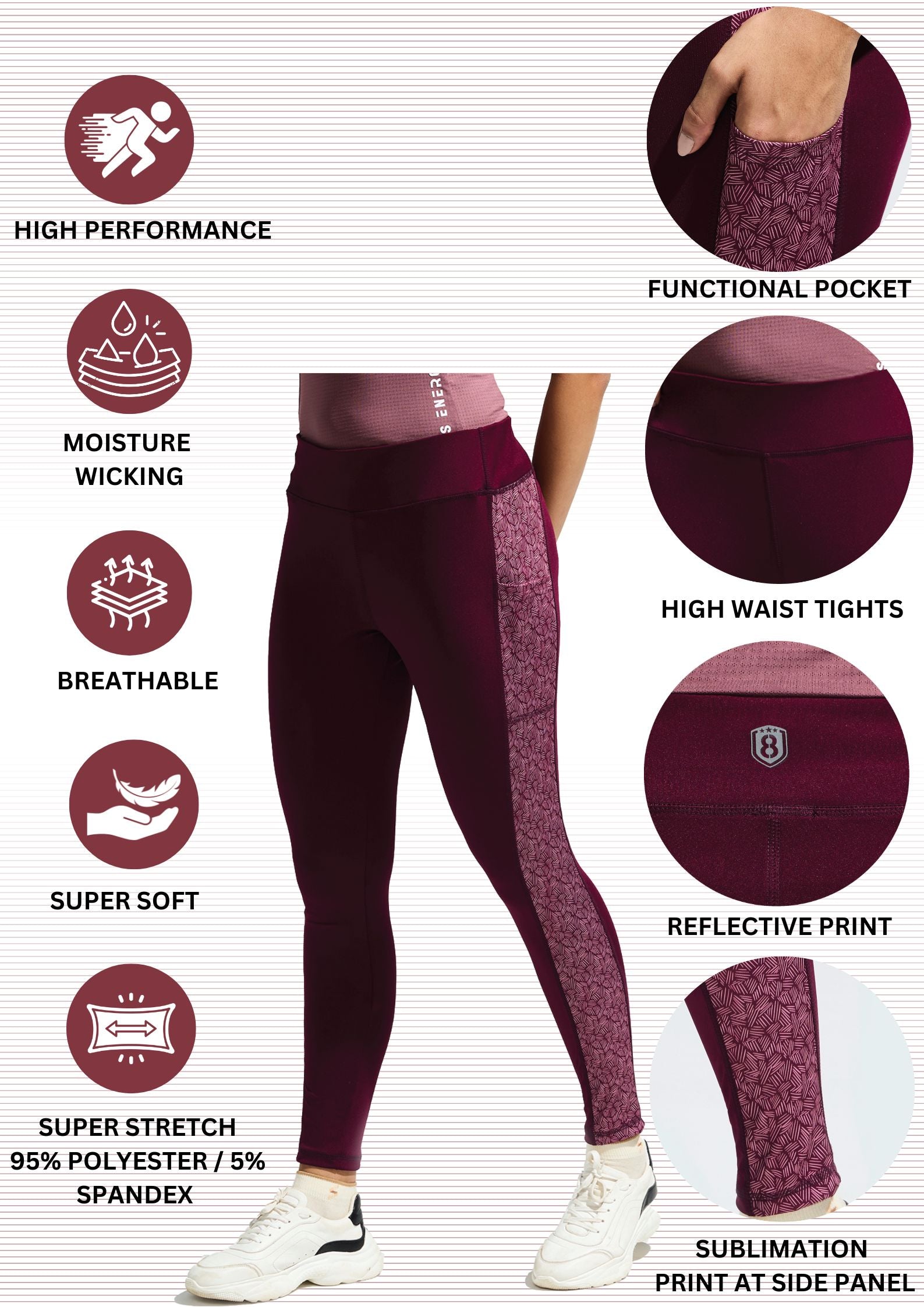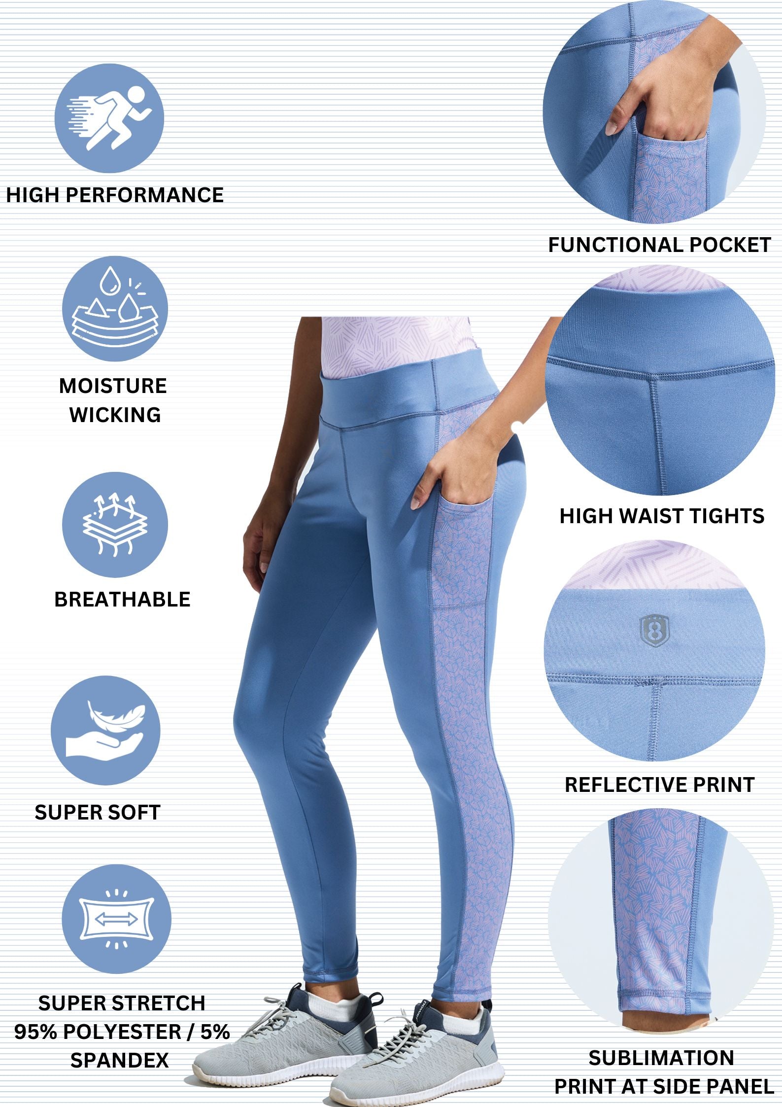 Key Features: Women Tights, Printed Designed Side Panel With Functional Pocket.  Soft & Breathable, Making It Great For Active Use
