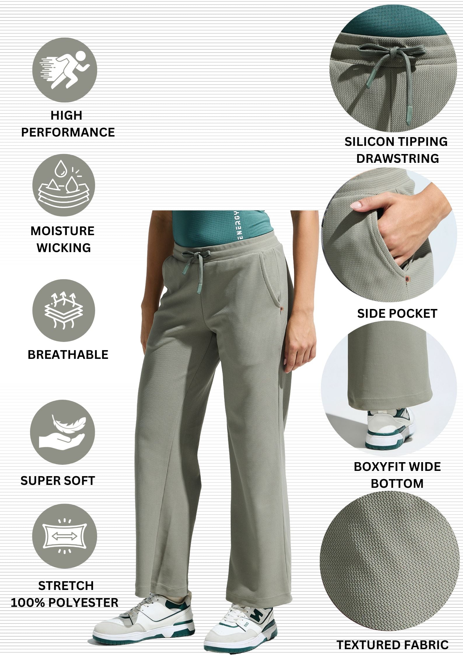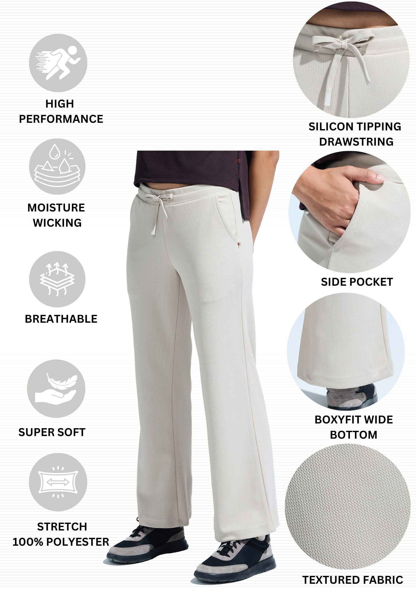 Key Features: Women Wide Leg Track Pant, Cotton Feel Polyester Special Fabric, Side Pockets With Elasticated Waistband With Drawstring