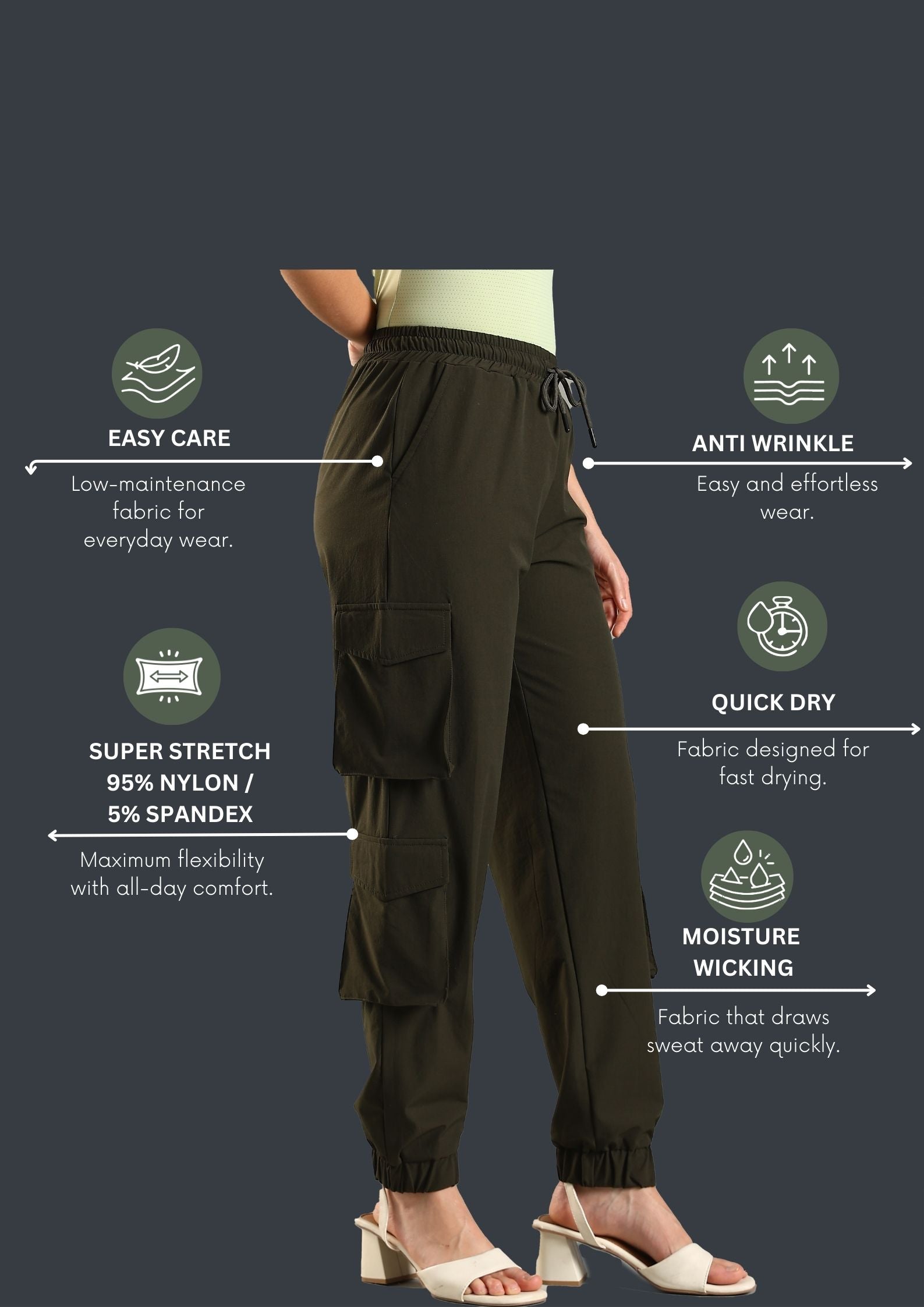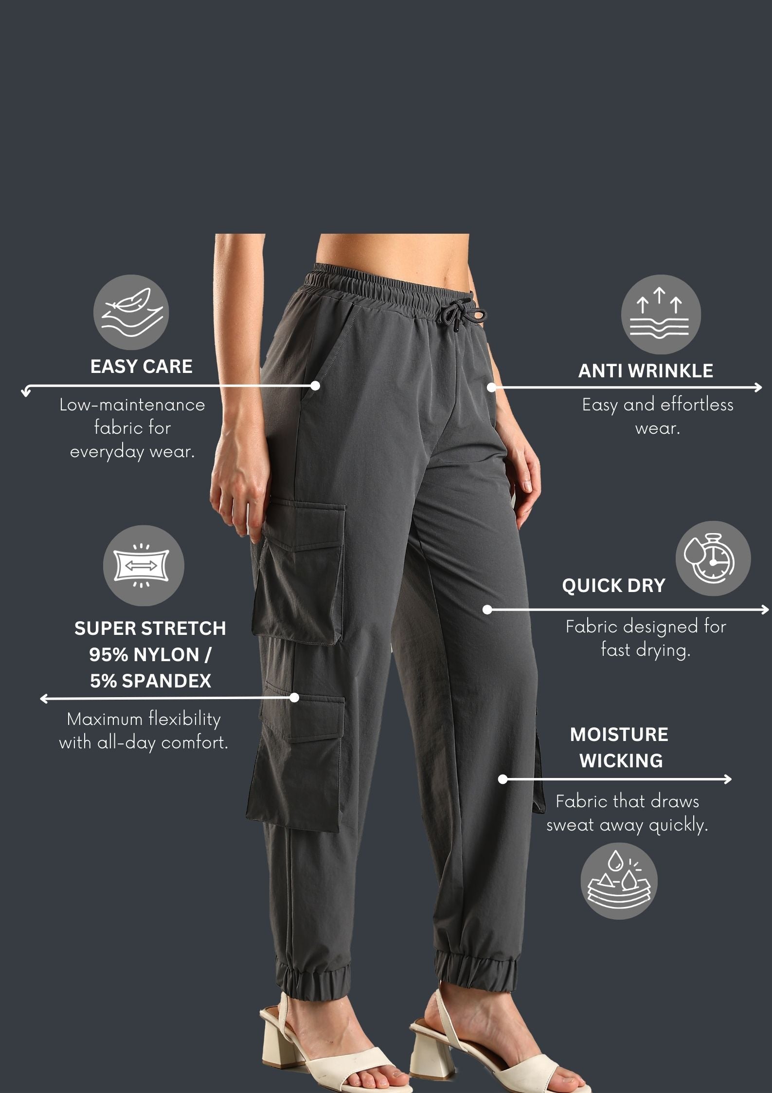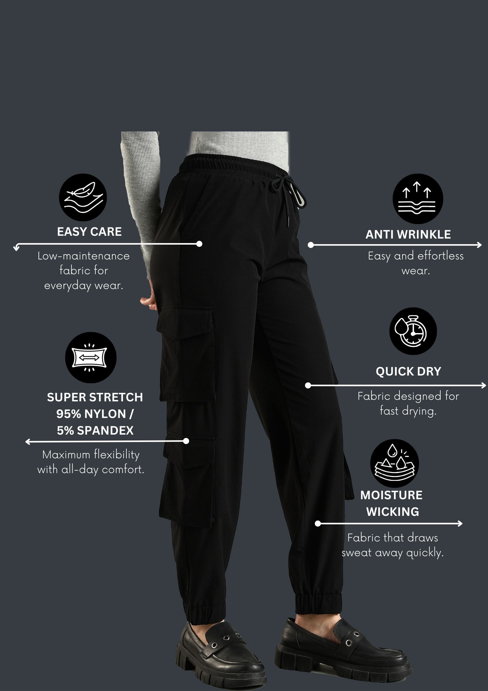 The multiple cargo pockets give you space for all the little things you never know where to keep, and the outside drawstring lets you adjust the fit on the go. The bottom elastic cuff keeps the look neat and modern, whether you’re at your desk or running around getting things done.