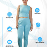 Light green crop top and joggers set, designed for workouts, lounging, or everyday wear.