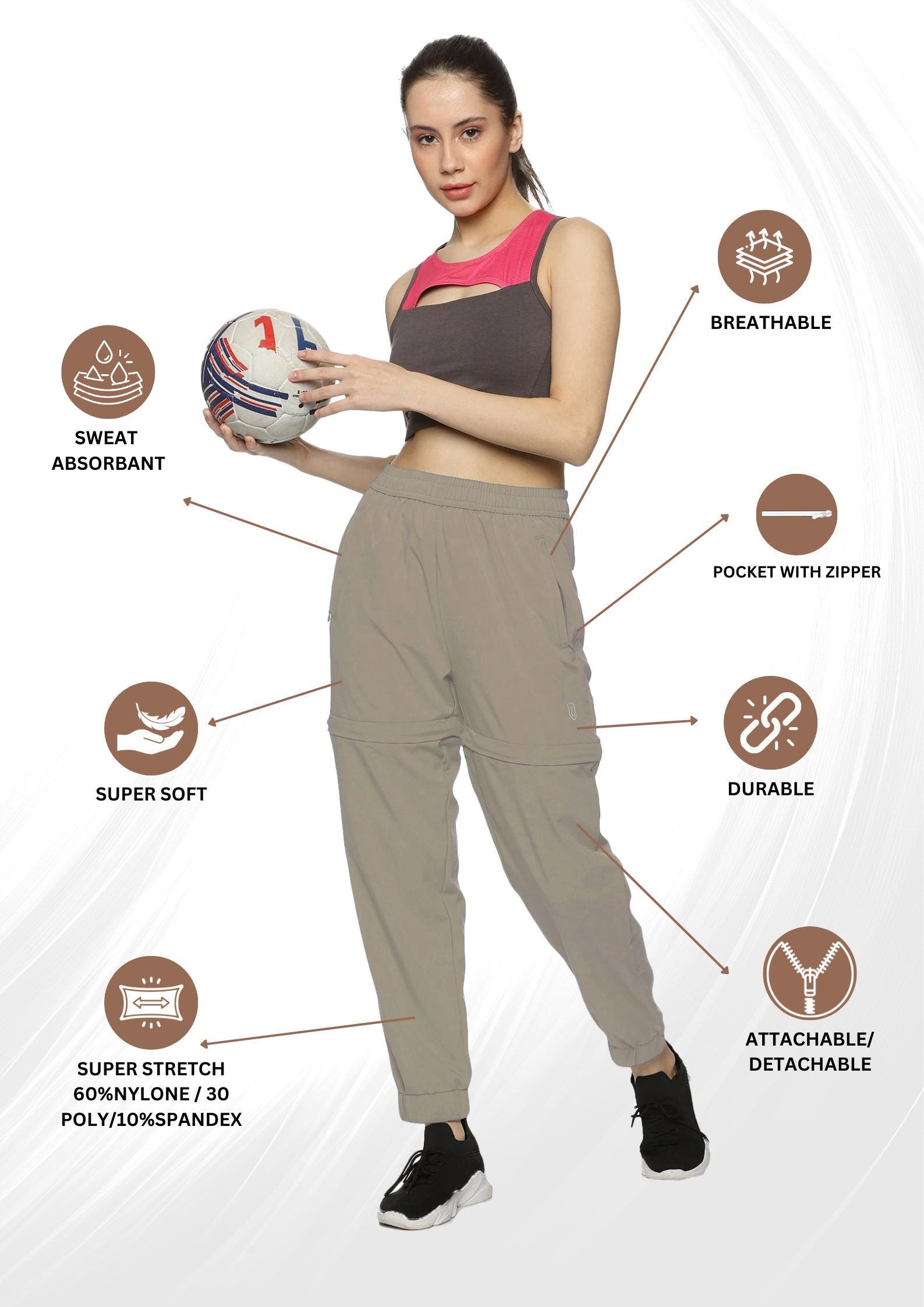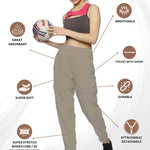 Women's Solid Detachable Track pants with Elasticated Drawstring waist & Zipper Pockets