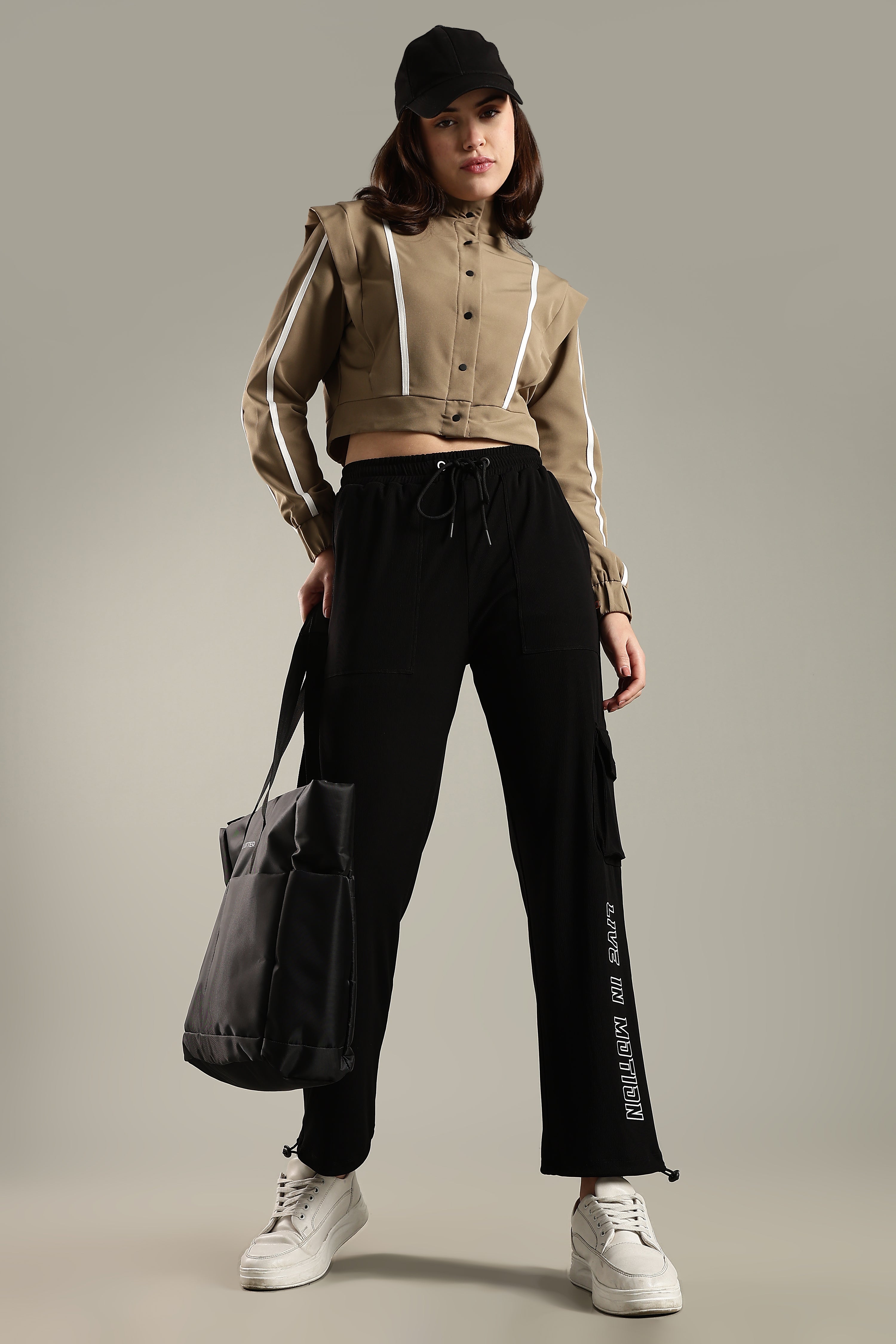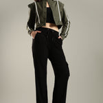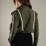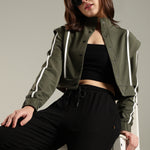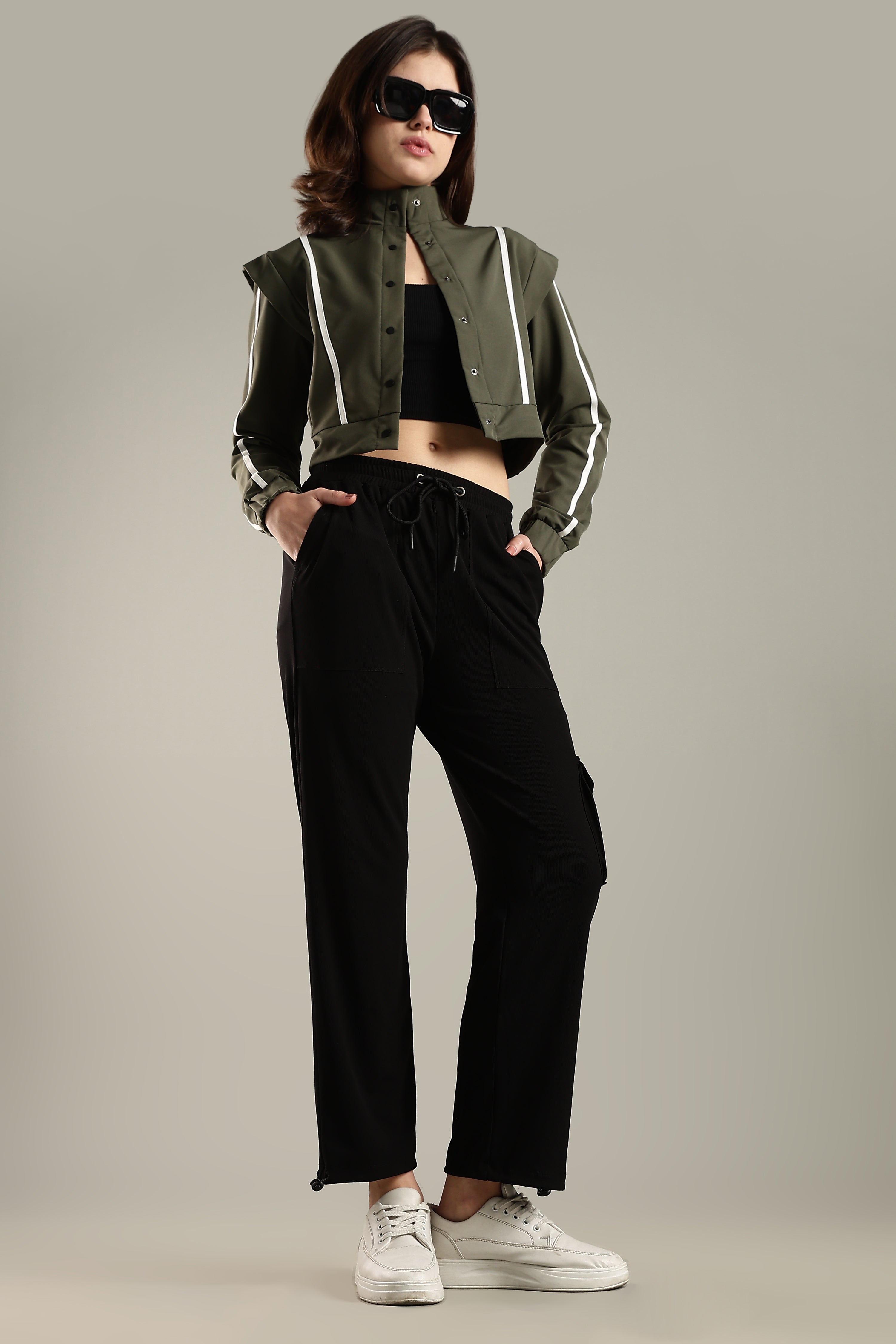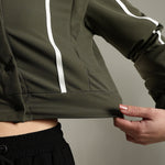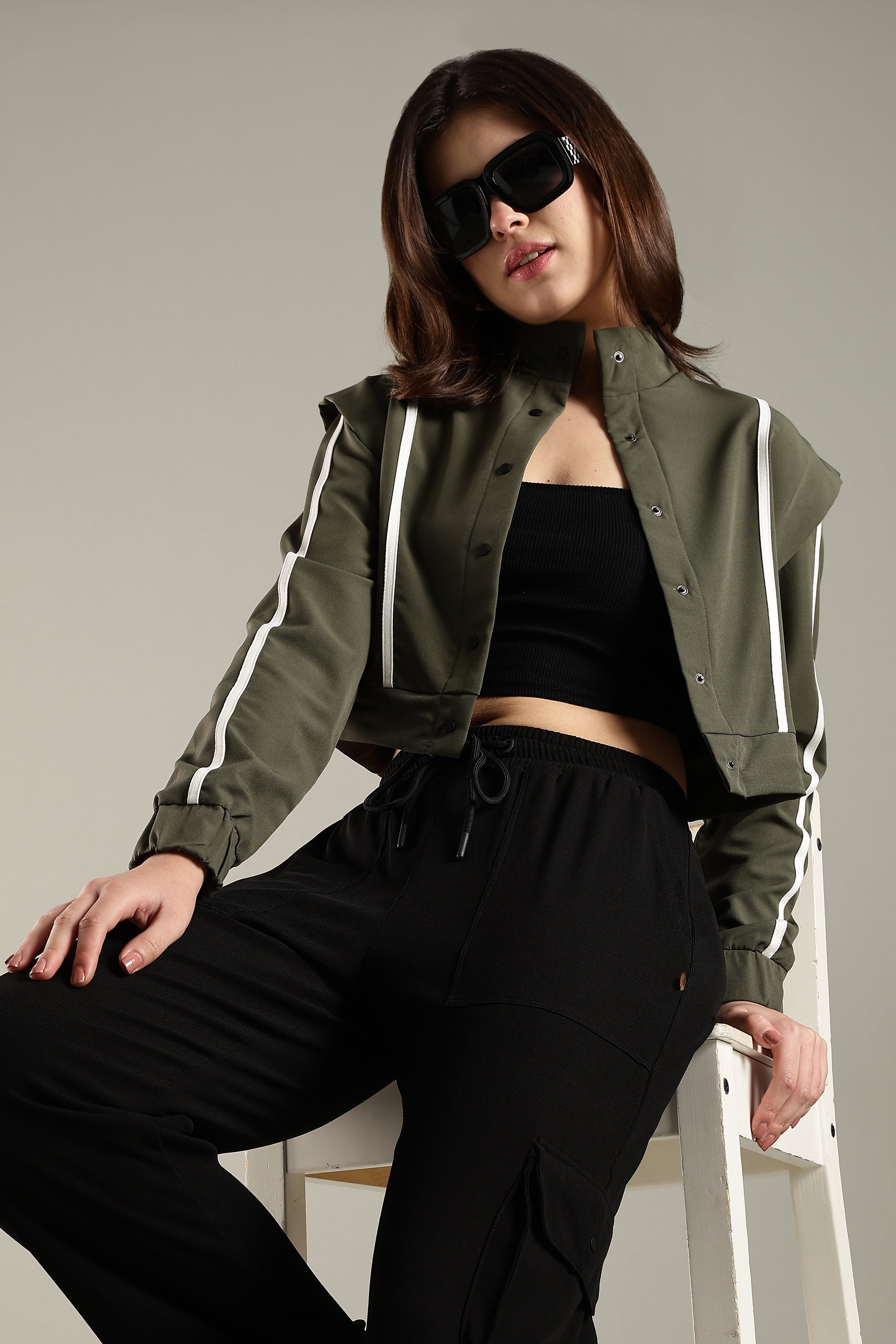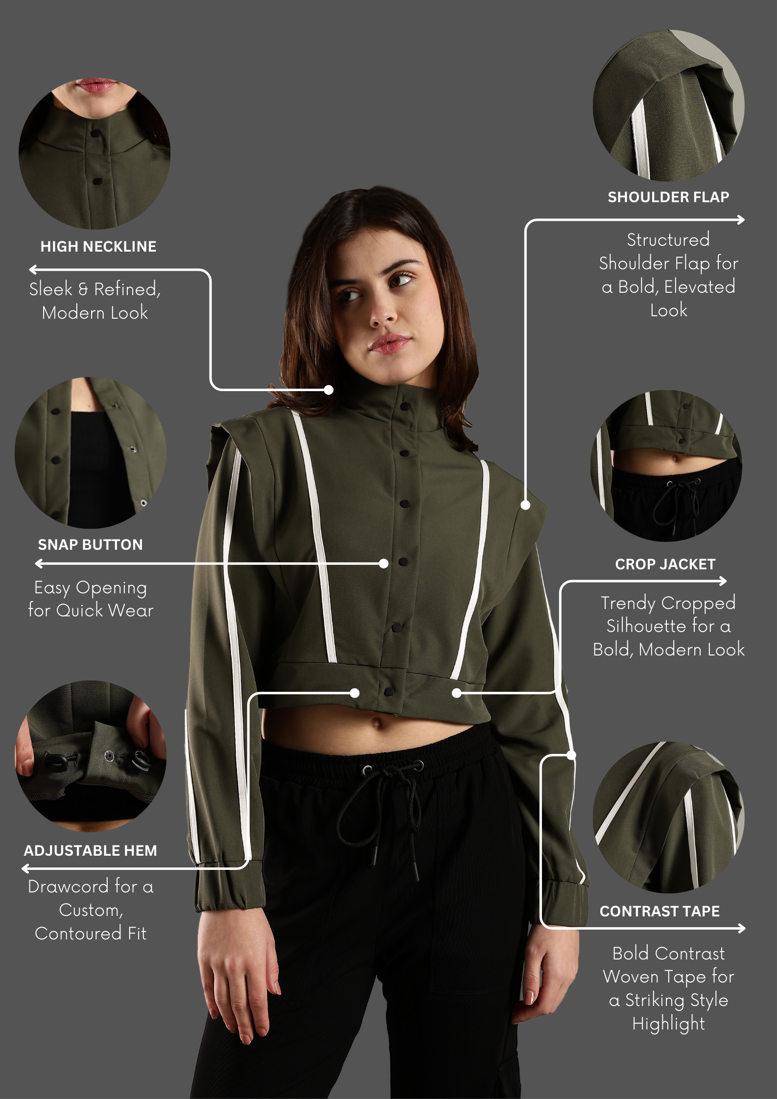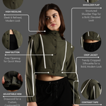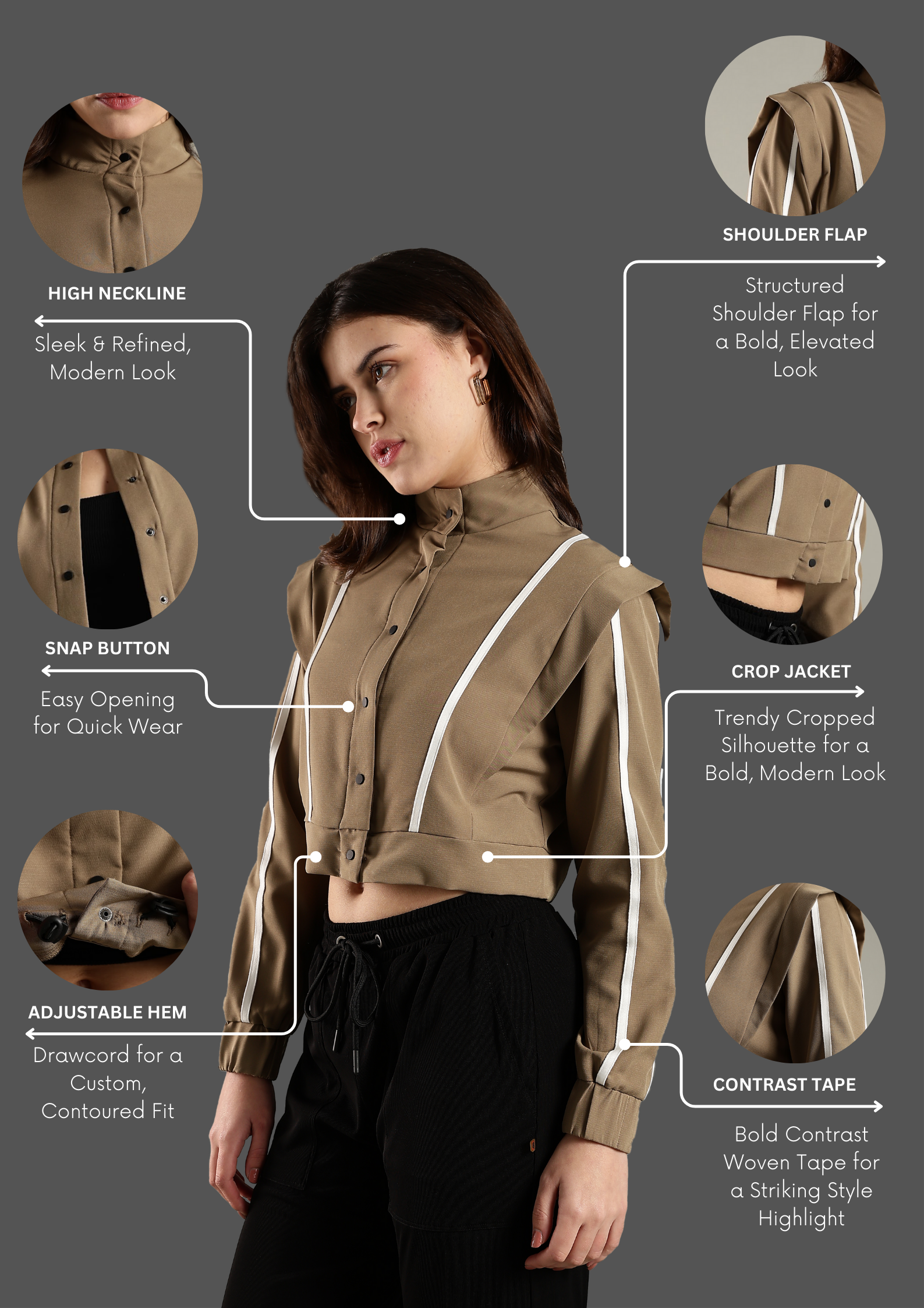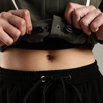 Women's Snap Button Crop Jacket with Elastic Drawstring