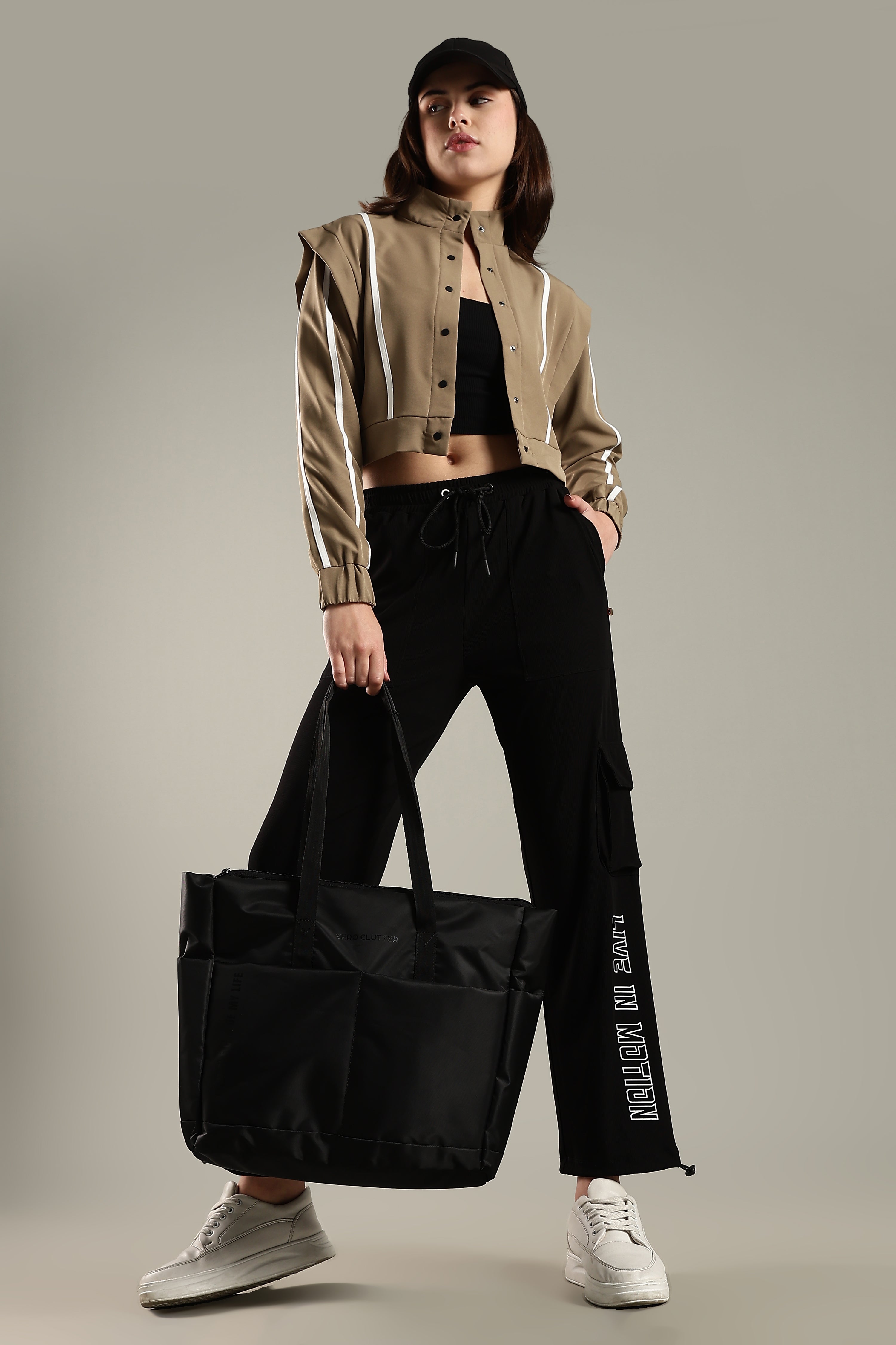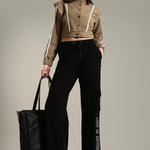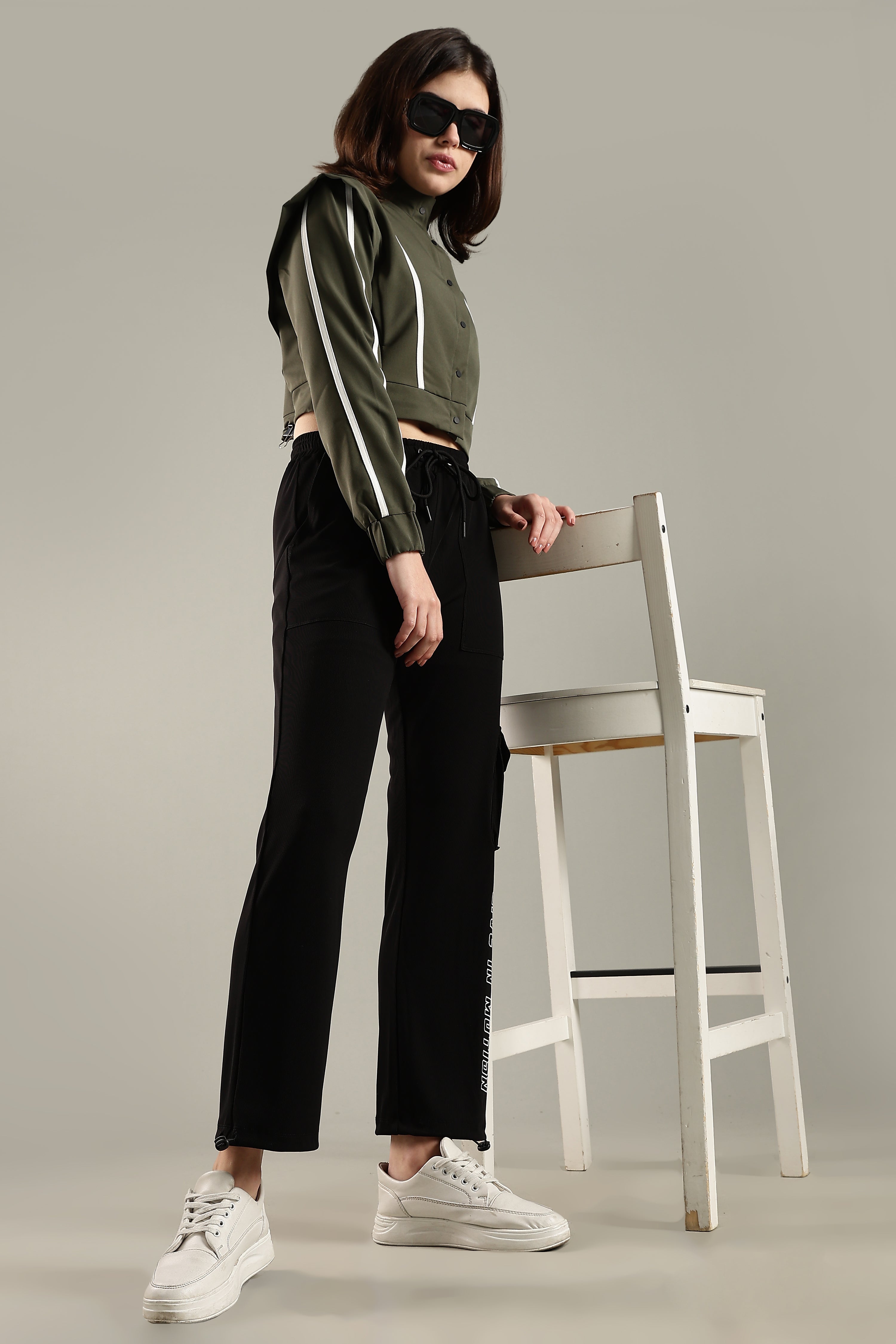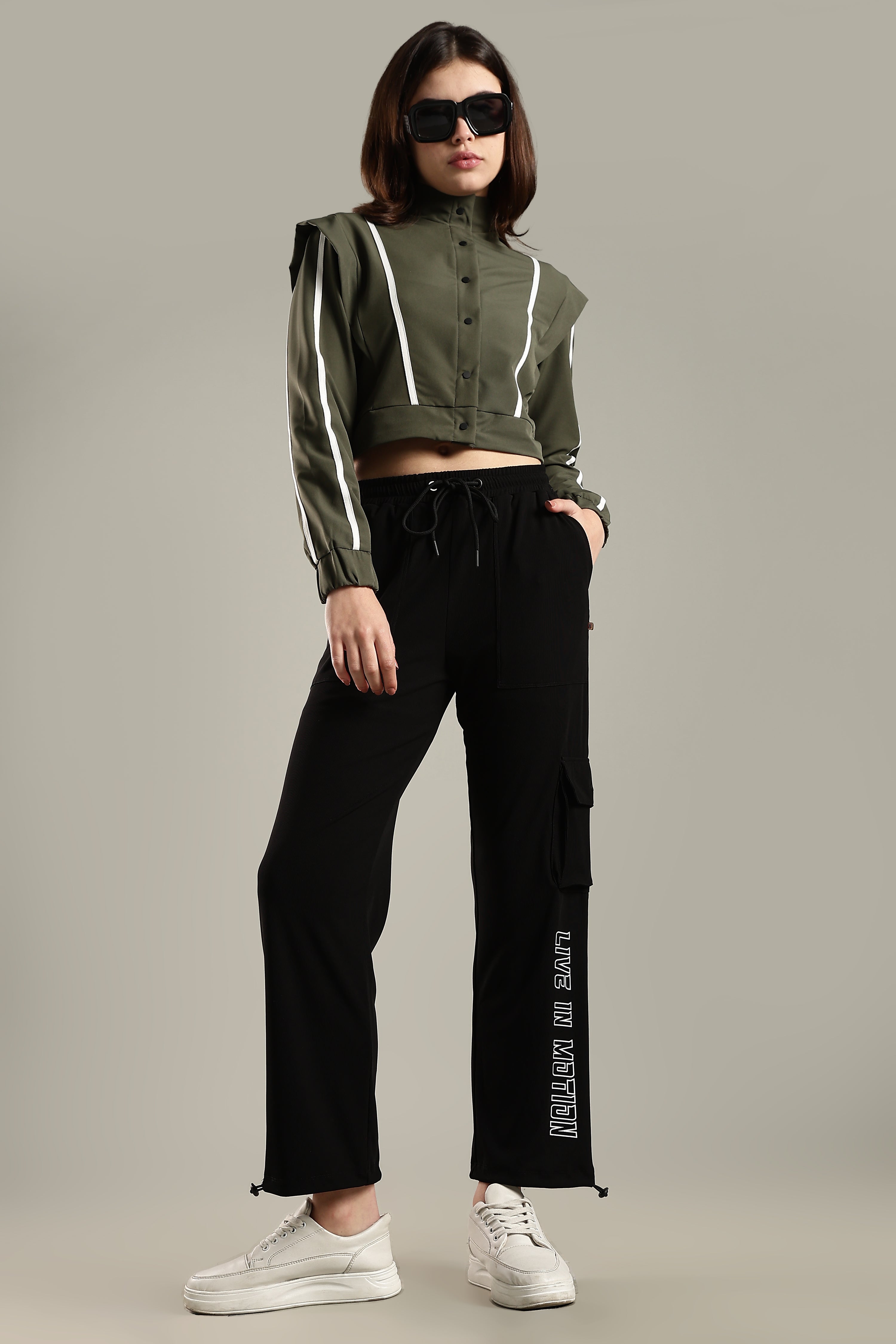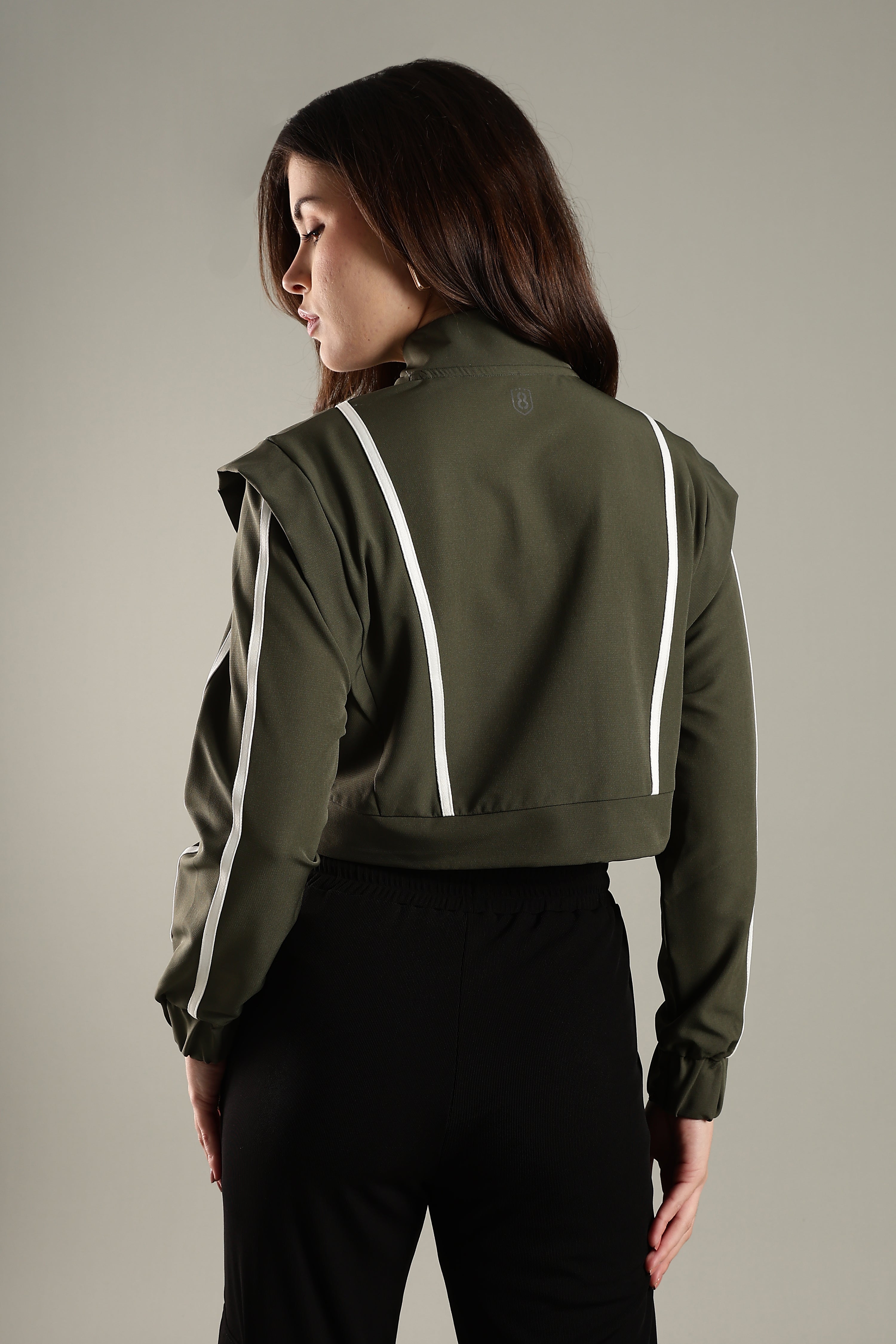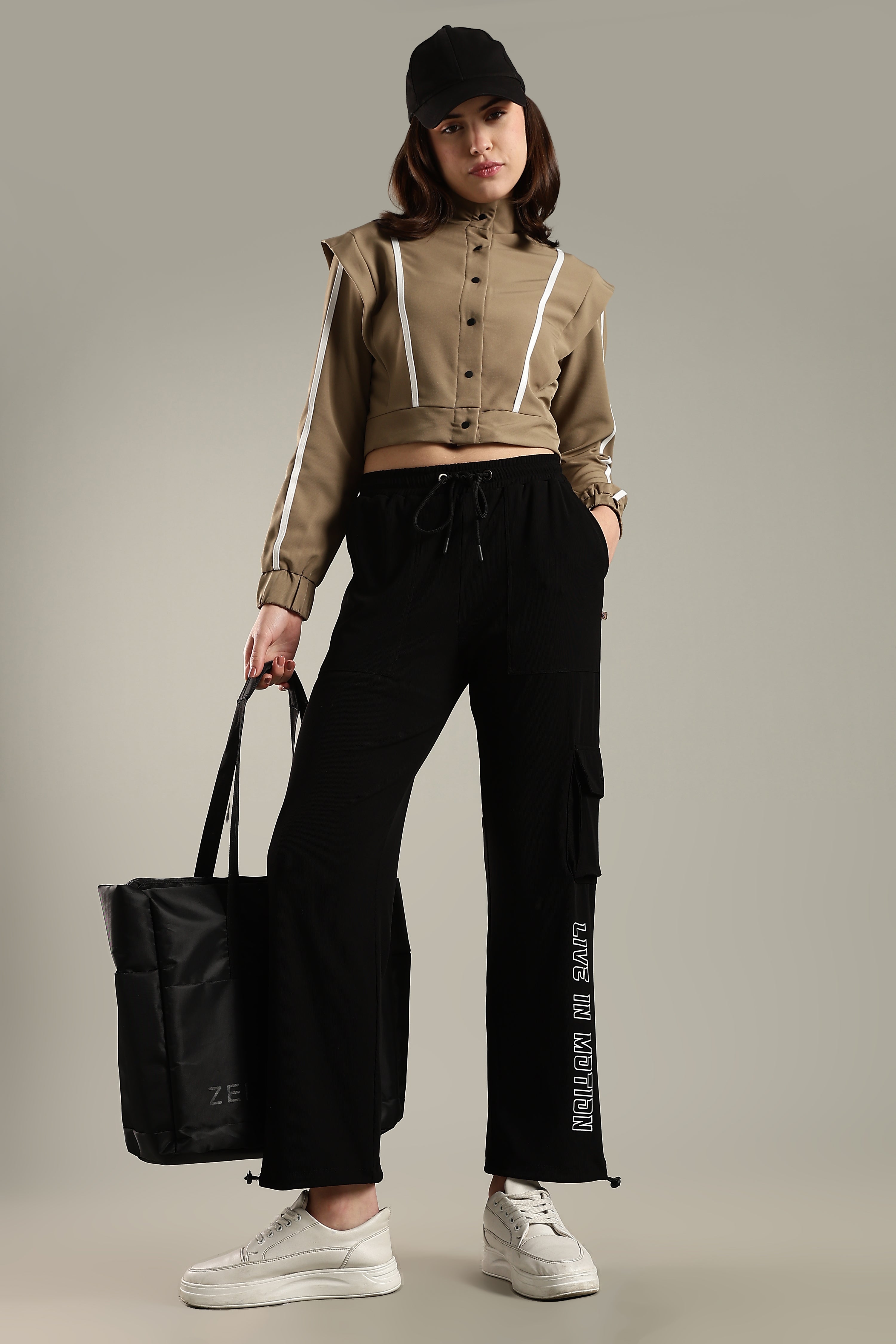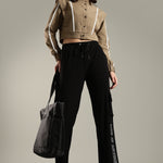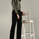Women's Snap Button Crop Jacket with Elastic Drawstring
