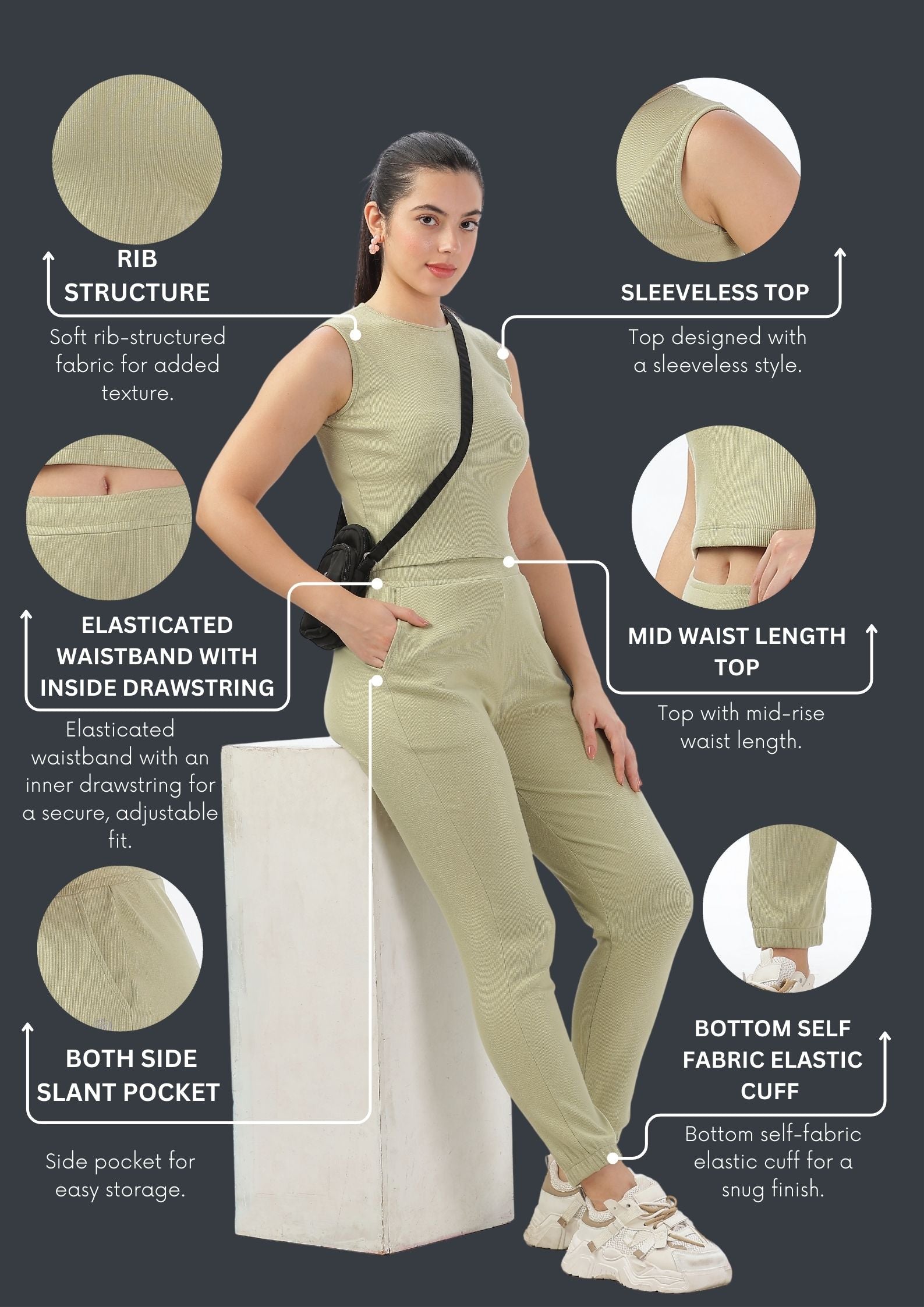 Women's Cotton Coord set with Crop Top and Draw String Side Pocket Jogger