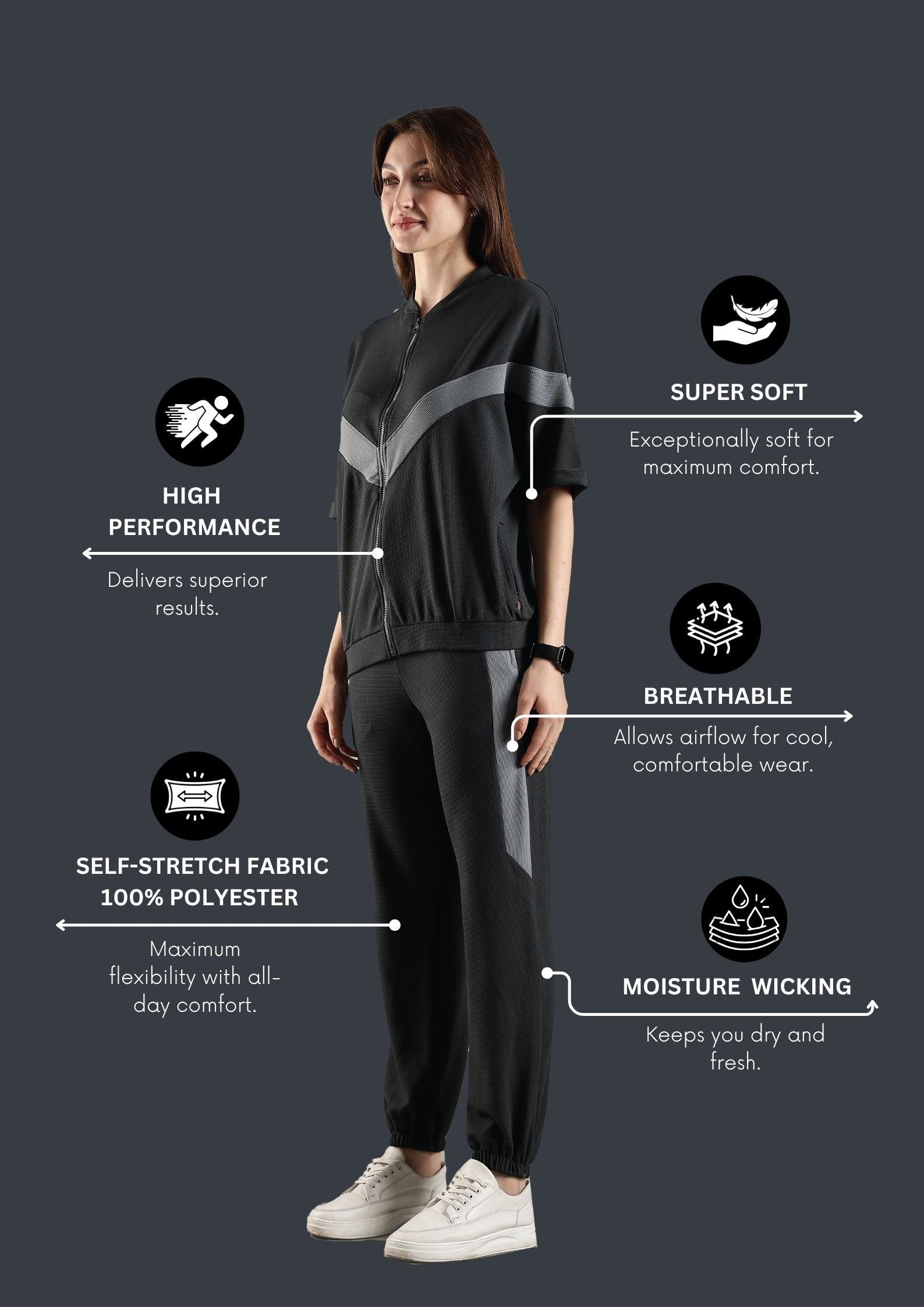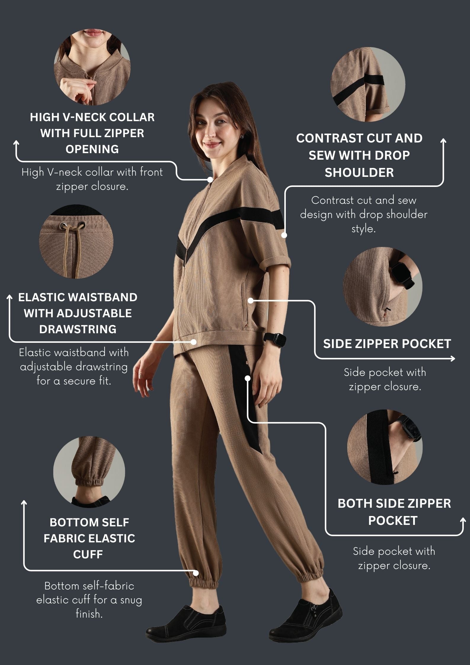 Womenβs Cut & Sew Tracksuit with Adjustable Drawstring Waistband